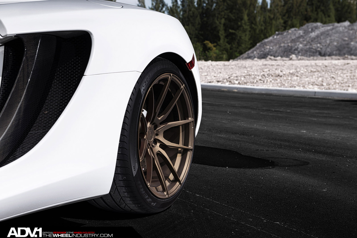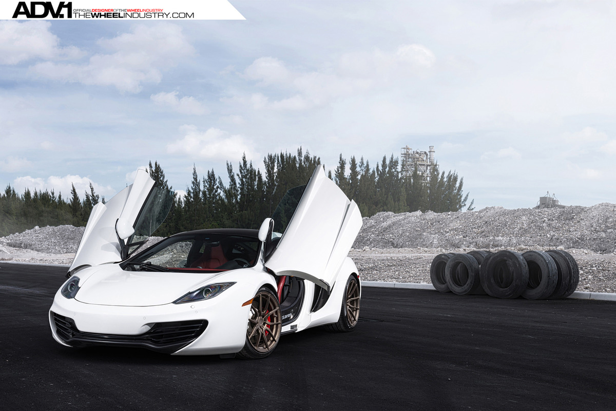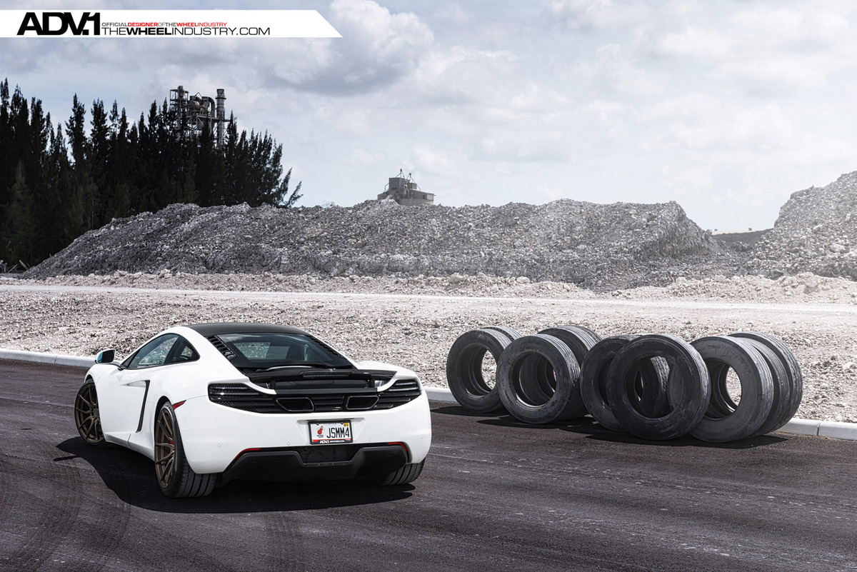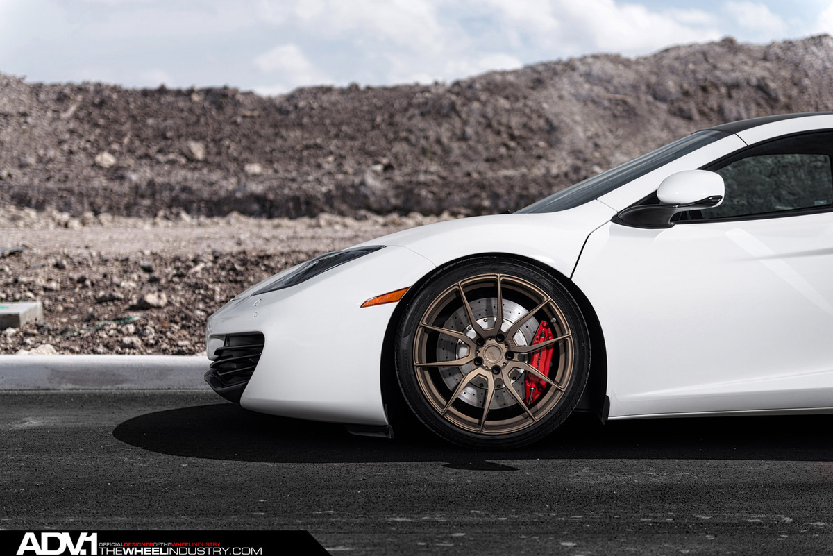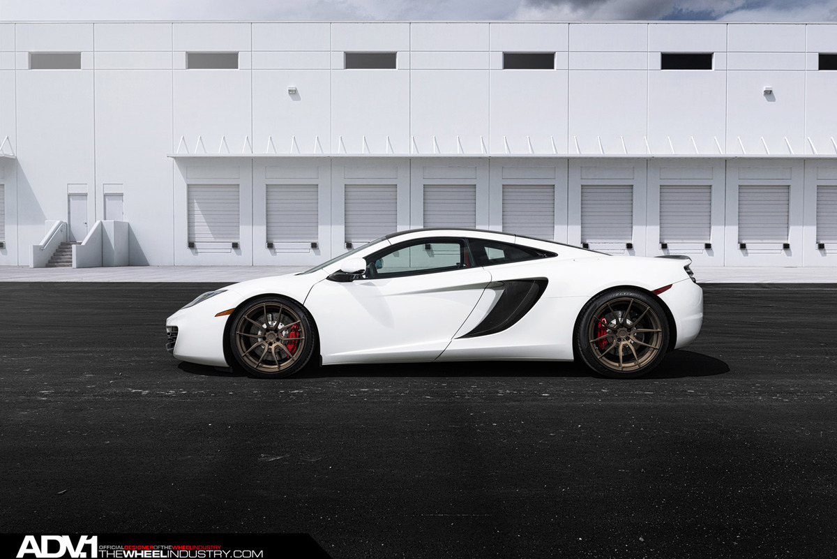 從性能的角度來看,新登場的McLaren 650S與12C其實沒有差別很多,要增加25HP馬力可能透過電腦程式調校便可達到,因此,簡單來說,650S可以說是改了車頭、多出數樣選配部品的12C。所以,現在持有McLaren 12C的朋友們無須太過沮喪,反而你們有了改裝愛車的動機,而且McLaren應當要感謝這類首批捧場的貴客們。今天帶給各位一部由輪圈品牌ADV.1 Wheels所提供的白色塗裝McLaren 12C,內裝採用局部紅色真皮配置,呼應紅色塗裝的煞車卡鉗,另外選用ADV.1 Wheels、型號ADV5.01 MV1 CS的輕量化古銅色輪圈,尺寸為前19x9.5J、後20x12J的前後配設定,讓整部車散發出濃烈的賽車氣息。