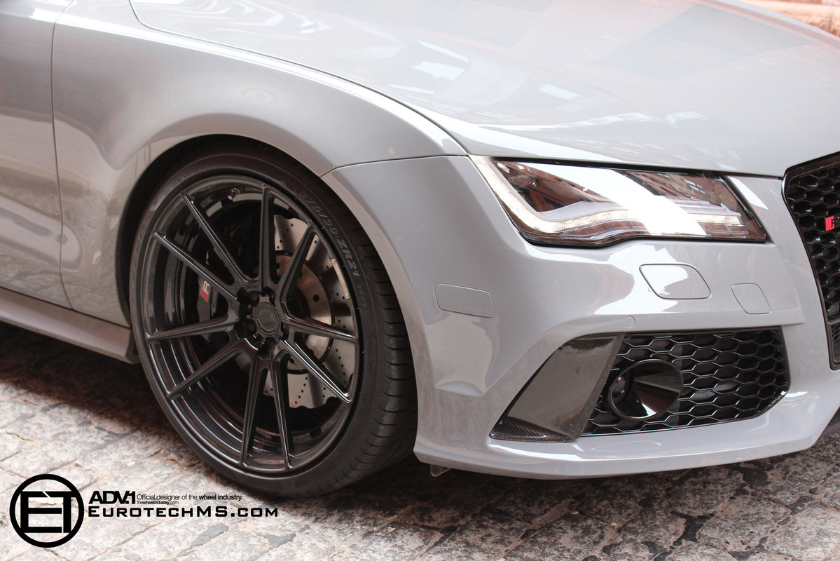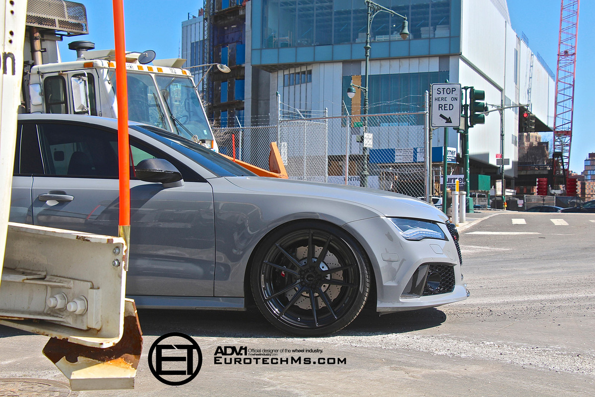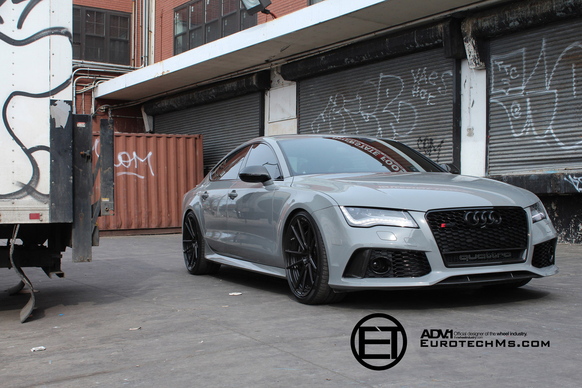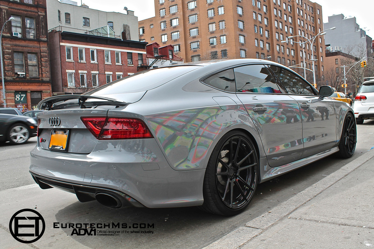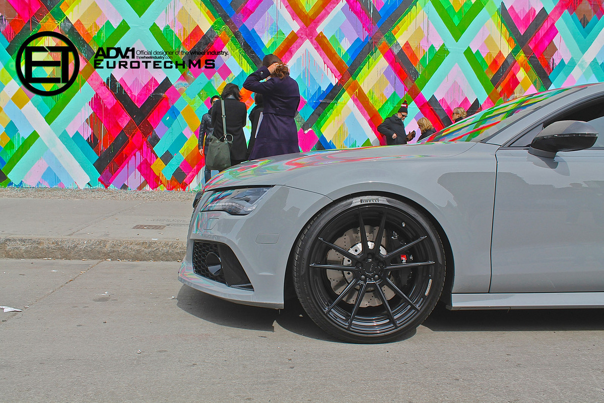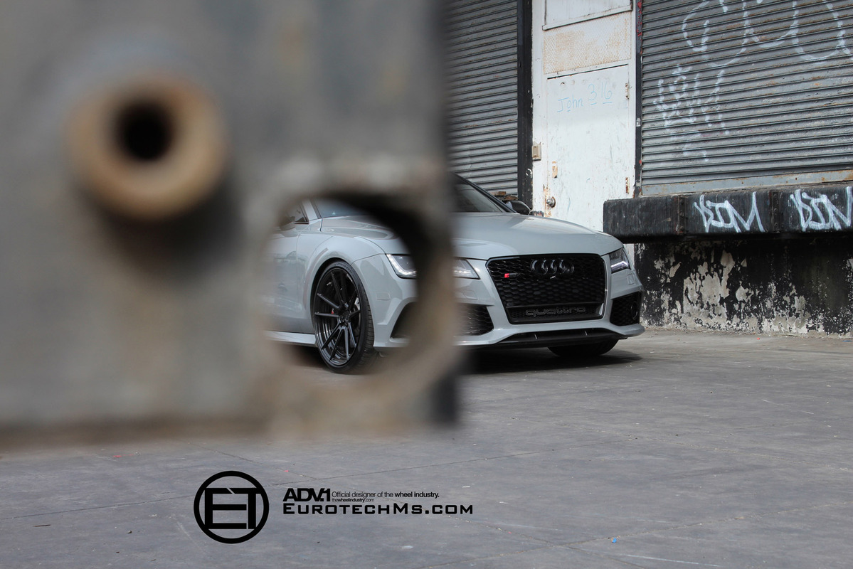 今天帶給各位一部由美國紐澤西(New Jersey, USA)改裝廠EuroTech Motorsports所操刀的Audi RS7,車身採用少見的淺灰色塗裝,搭配出廠時選配的黑色套件與換裝的碳纖維後視鏡蓋,再選用知名品牌ADV.1 Wheels出品、型號ADV5.2 MV2 SL的輕量化輪圈,圈面採用亮面黑色塗裝處理,而為了維護Quattro四輪驅動系統的流暢性與妥善率,四顆皆選擇21x10J的規格,搭配Pirelli P Zero高性能跑胎,再透過換裝高低軟硬可調式避震器組將車身降低,營造出沉穩有型的動感跑格。