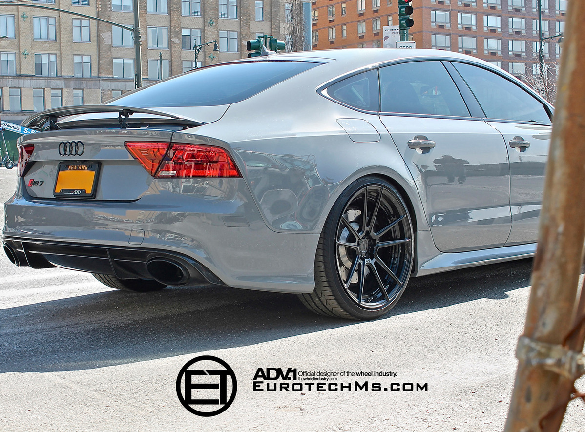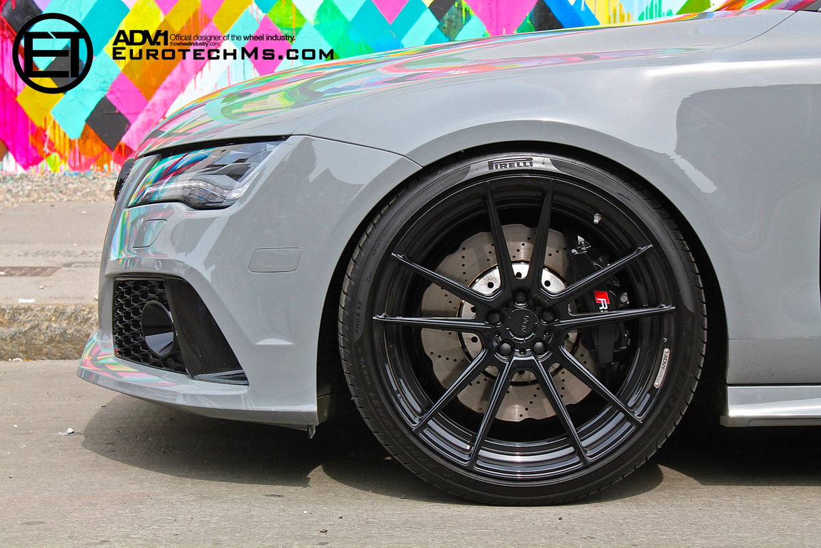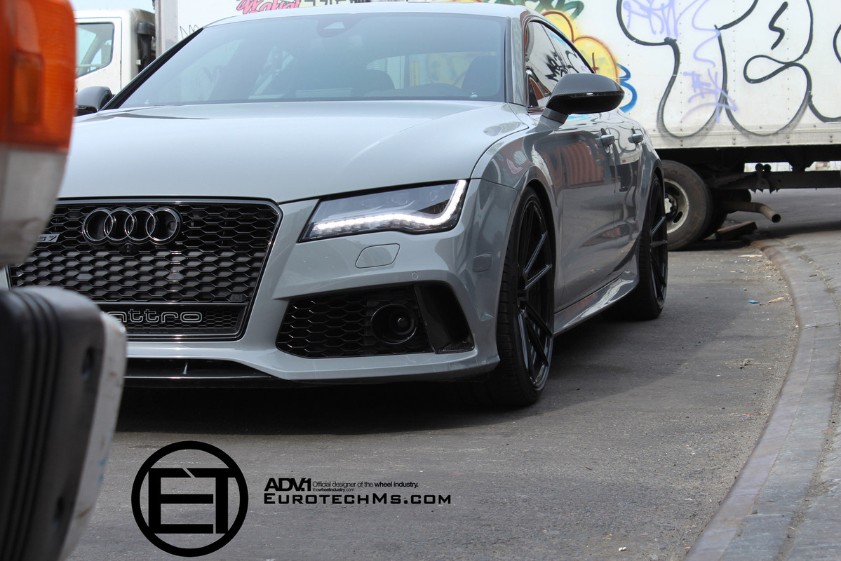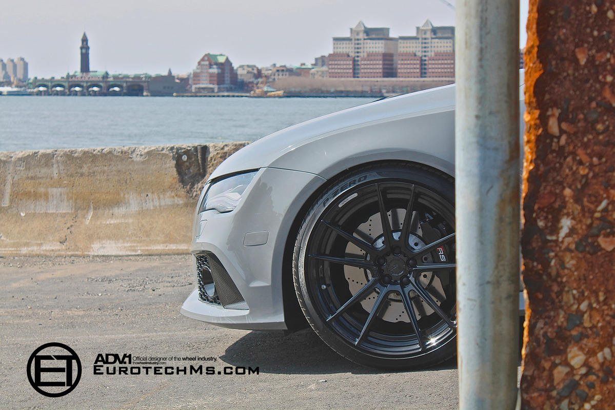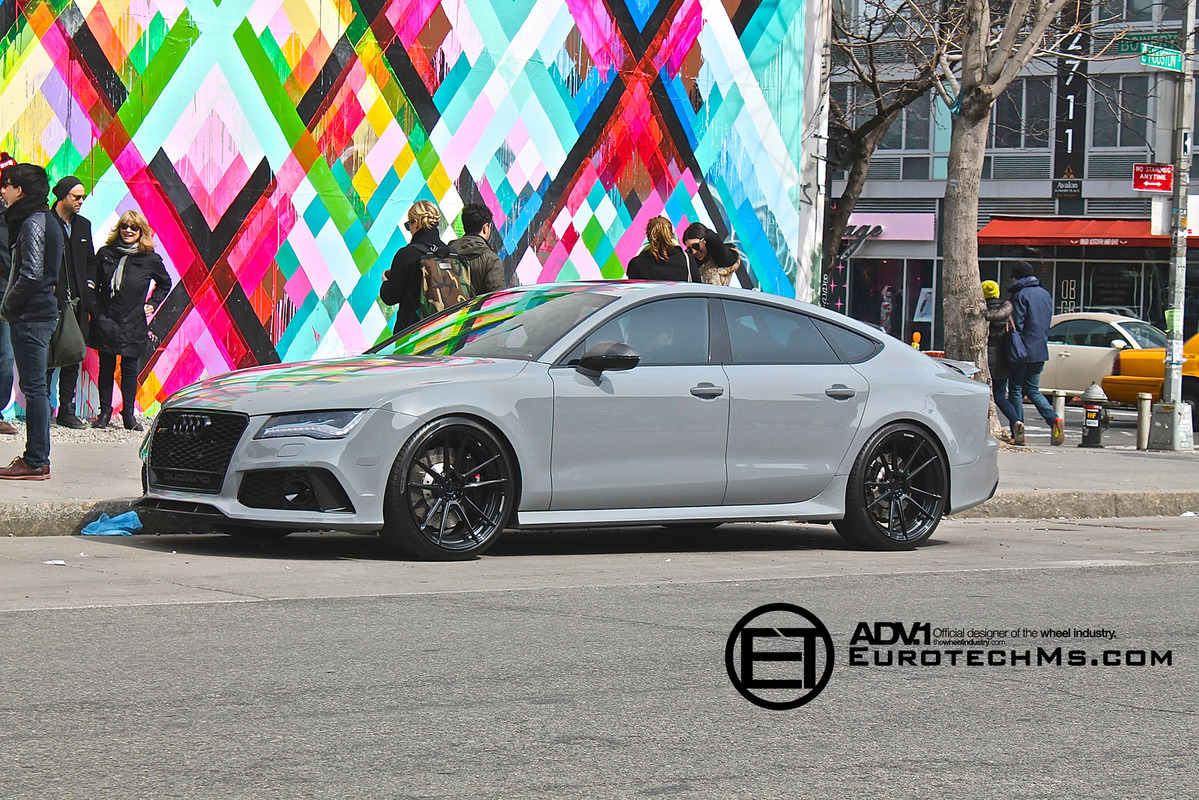 今天帶給各位一部由美國紐澤西(New Jersey, USA)改裝廠EuroTech Motorsports所操刀的Audi RS7,車身採用少見的淺灰色塗裝,搭配出廠時選配的黑色套件與換裝的碳纖維後視鏡蓋,再選用知名品牌ADV.1 Wheels出品、型號ADV5.2 MV2 SL的輕量化輪圈,圈面採用亮面黑色塗裝處理,而為了維護Quattro四輪驅動系統的流暢性與妥善率,四顆皆選擇21x10J的規格,搭配Pirelli P Zero高性能跑胎,再透過換裝高低軟硬可調式避震器組將車身降低,營造出沉穩有型的動感跑格。