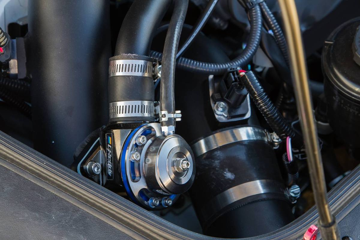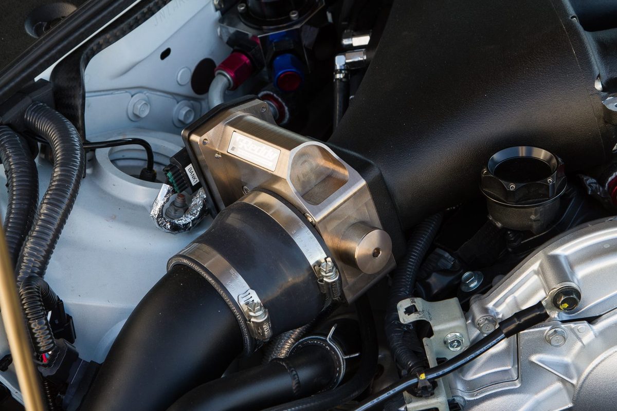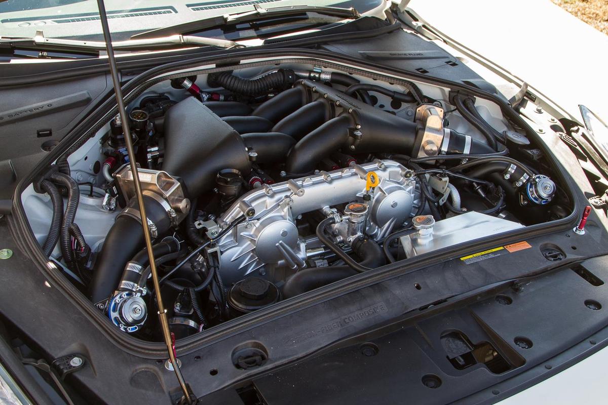 首先,動力部分,Jotech Motorsports捨棄原廠的3.8升V6引擎、植入排氣量4.3升的雙渦輪增壓六缸引擎,由技師們一手組裝,用上來自日本知名品牌HKS、型號GT1000的兩顆巨大渦輪機、GReddy鈦合金排氣系統、Bosch噴油嘴、AAM汽油幫浦、Jotech自製油軌與GReddy進氣岐管等部品,再透過電腦程式的重新改寫,將最大馬力提升到1,069HP,而他們將該組動力提升套件取名為Stage 6S。