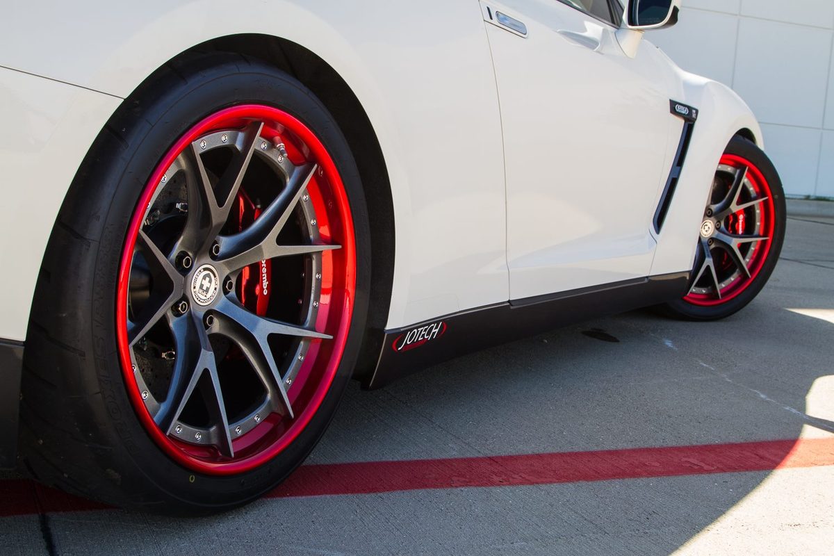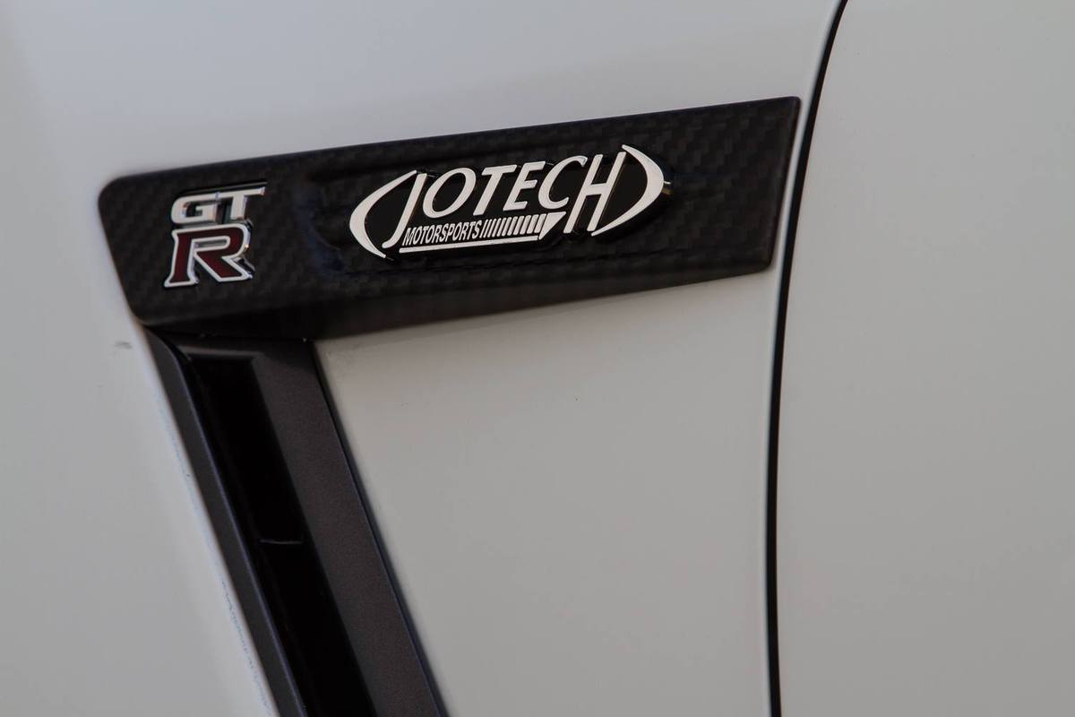 除此之外,Jotech Motorsports換上Dodson ProMax競技用離合器組、陶瓷碳纖煞車系統、Titan四點式防滾籠與知名品牌HRE Performance Wheels出品、型號S101的輪圈搭配Toyo R888全熱熔胎,將操控性能與車身剛性提升到全新層次。外觀部分,Jotech Motorsports選擇換上2015年款式Nissan R35 GT-R的新型頭燈組、Seibon碳纖維引擎蓋與後廂蓋等部品,略為妝點這部破千匹的勁爆戰神。