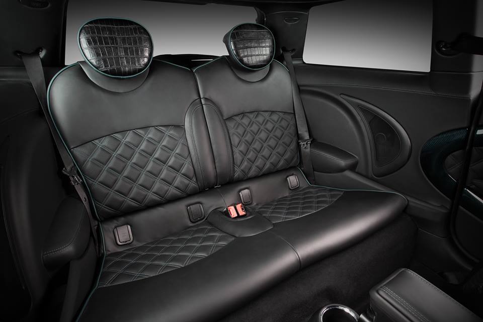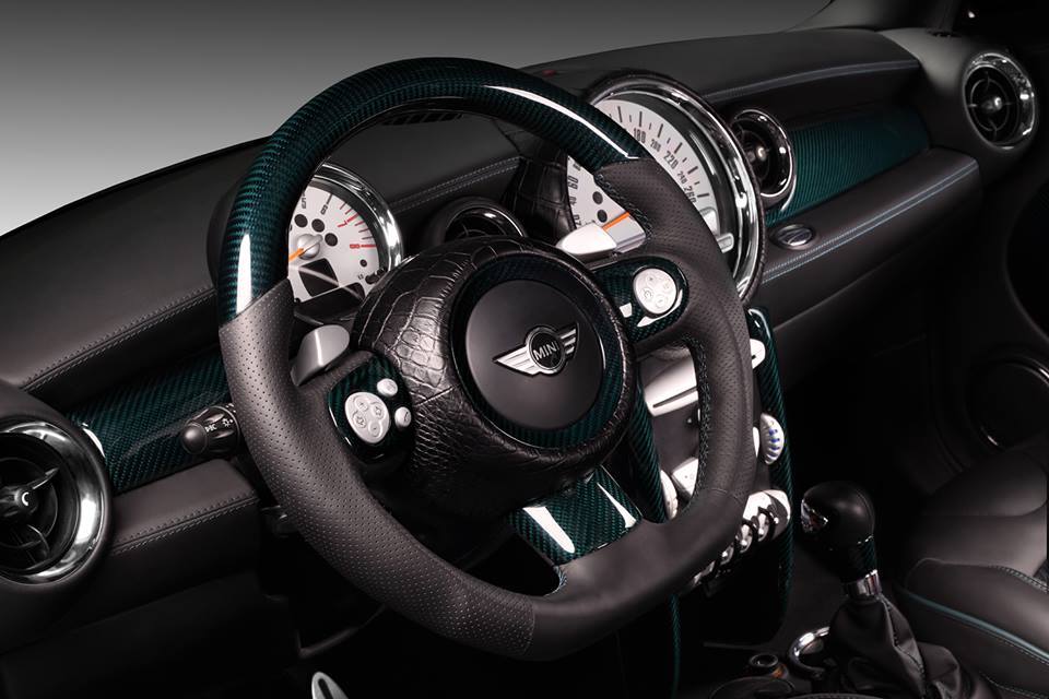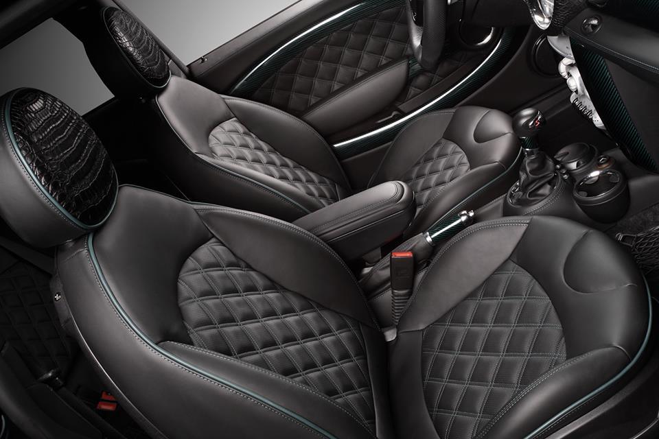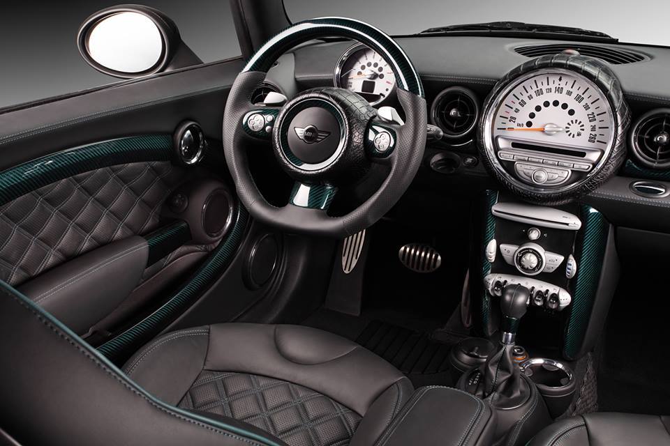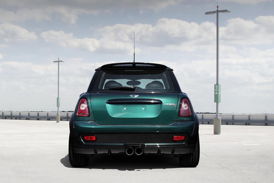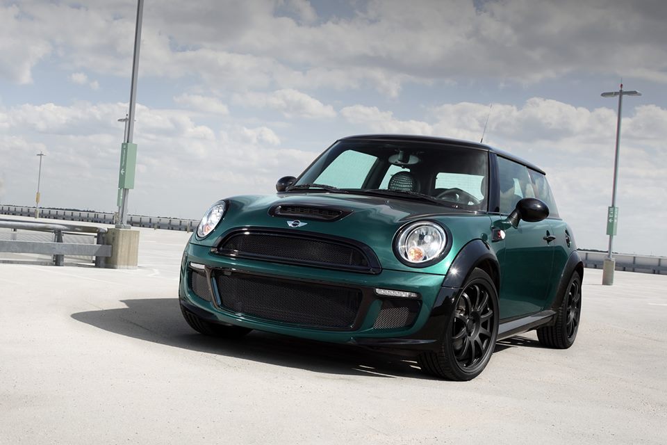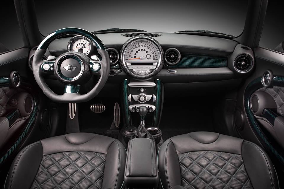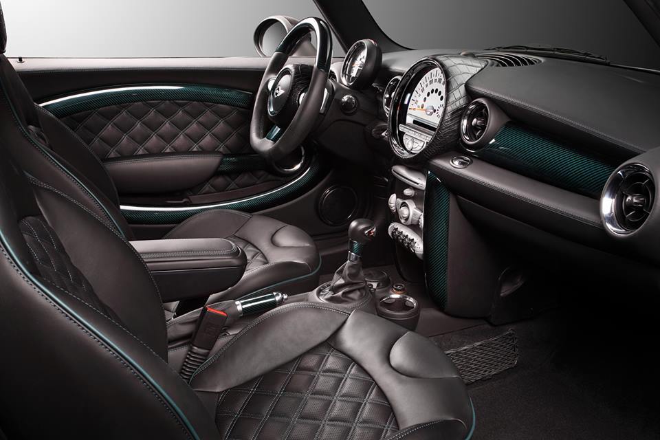 今天帶給各位的則是由俄羅斯改裝廠TopCar所操刀的R56 Mini Cooper S,名稱冠上Bully,車身採用墨綠色塗裝,換裝全新設計、附上LED日間行車燈的前保桿、後保桿、側裙組與輪弧擴張套件等部品,另外再選用型號R18的槍灰色輪圈、Remus排氣管與加大尺寸碟盤等,強化操控性與動力銜接順暢度。內裝部分,TopCar可謂好料用盡,換上綠色紋路碳纖維飾板、菱格紋真皮與鱷魚皮等,配上綠色車縫線,將這部英倫小車的內裝妝點得極具質感。各位喜歡這樣的Mini嗎?