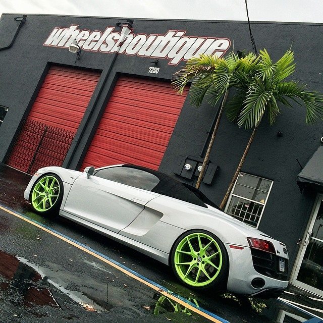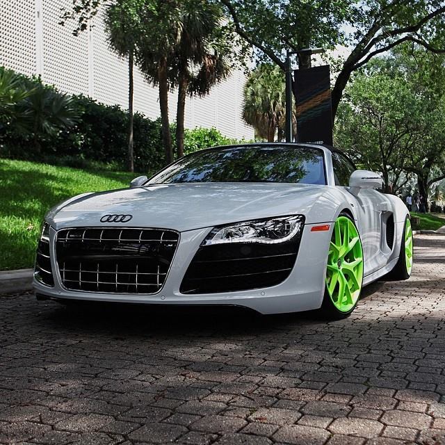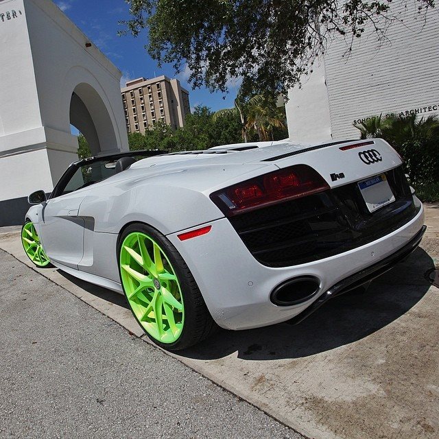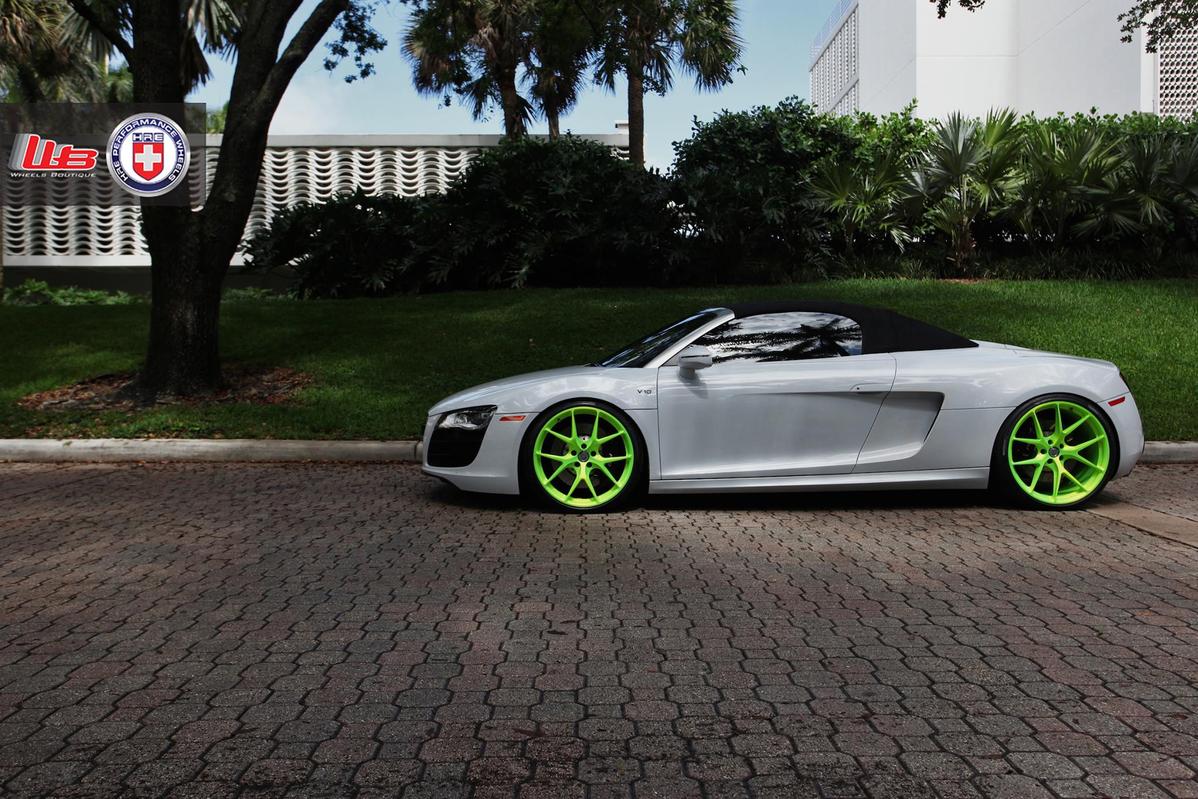 今天帶給各位的是由改裝廠Wheels Boutique所操刀的白色塗裝Audi R8 V10 Spyder敞篷車,輪圈選用來自HRE Performance Wheels、型號P101的款式,圈面採用亮眼跳tone的螢光綠色塗裝,簡單俐落的造型搭配在降過車身的Audi R8 V10 Spyder身上,頓時讓這部德國上空超跑在視覺效果上活躍不少。