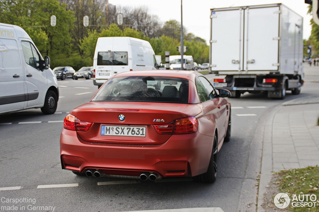 如果各位還有印象,在敞篷版本BMW M4 Convertible尚未正式亮相前,我們有分享過一部被網友擄獲、身披偽裝圖騰的測試車,而那部恰好就與眼前這部同樣是消光紅色塗裝,也配著原廠陶瓷煞車系統,但輪圈改為黑色塗裝,可能就是同一部車。在紐約車展公開亮相之後,生活在德國慕尼黑(Munich, Germany)的它已無需偽裝,自在地優游在街頭,被網友擄獲。感謝Autogespot提供精采珍貴畫面。