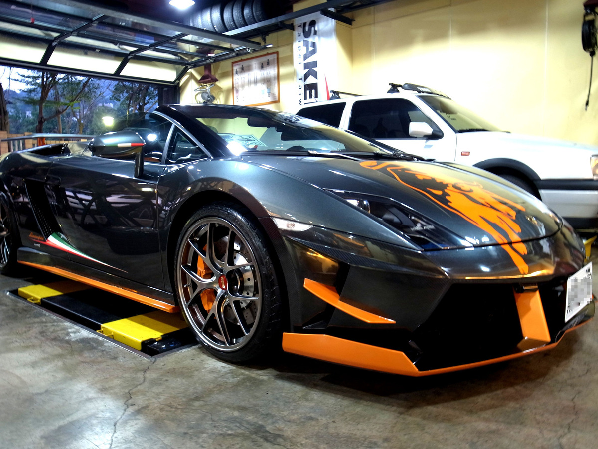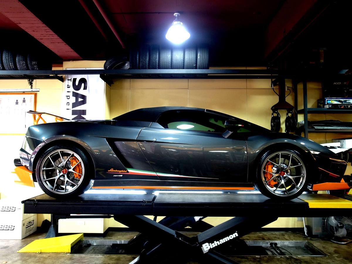 動力部分,透過電腦程式改寫與進氣系統強化,再加上Akrapovic鈦合金排氣管的加持,這部樣貌獨特的Lamborghini Gallardo LP560-4 Spyder之最大馬力已從原廠的560HP提升至610HP,進步幅度明顯。另外,這部車近期受到知名輪圈品牌BBS Wheels日本部門的邀請,在剛結束的2014年台北國際汽車零配件展(Taipei AMPA)當中為BBS站台展示,在國內知名店家、總部坐落於台北市內湖區的緹堡汽車TGAS(Top Gear Auto Service)廠內換裝BBS RI-D鍛造輪圈組,圈面選用DBK鑽黑色版本配上紅色BBS中心蓋,再搭配Pirelli P Zero高性能跑胎,展現出與原廠黑色Apollo輪圈迥異的跑格。值得一提的是,市面上有許多強調客製化服務的輪圈品牌,其中也有許多款式提供給Lamborghini Gallardo車系,但是BBS特別為Gallardo量身訂做RI-D這款新型輪圈可說是創舉,不只是台灣(Taiwan)唯一,可能也是全球前幾組,而車庫柒號率先提供獨家報導,相信在不久之後,這部品味獨特的Lamborghini Gallardo LP560-4 Spyder將會現身BBS Japan官方網頁。