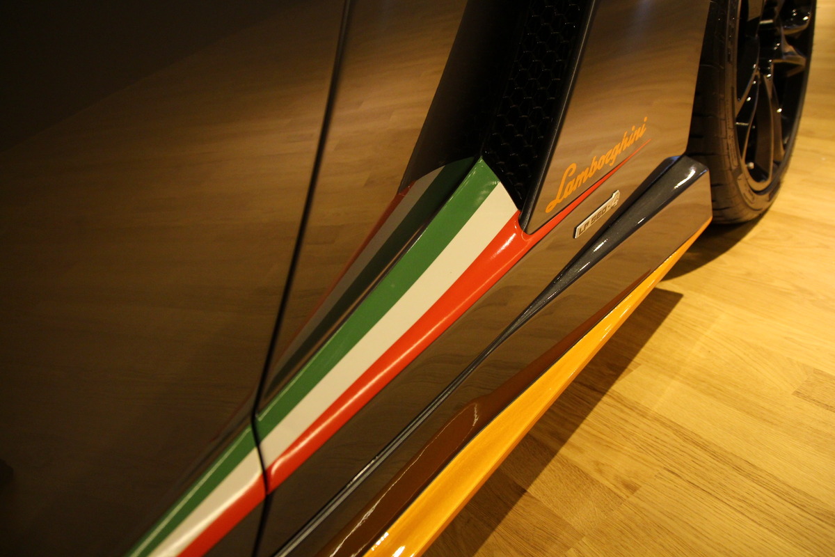 尤其,當你要在考慮的一部軟頂敞篷車,最大馬力560HP與570HP間的差距,有時不妨可以忽略一下。眼前這部鐵灰色塗裝的Lamborghini Gallardo Spyder敞篷車乃LP560-4版本,車主在交車時便已換裝相當稀有的Super Trofeo廠車空力套件,包含碳纖維前保桿、前定風翼、側裙組、後保桿、後下擾流板與後擾流尾翼等部品,更於局部施以橘色塗裝,呼應橘色煞車卡鉗與其黑橘雙色內裝,再於後視鏡蓋與車側貼上義大利國旗三色飾條,貌似Gallardo LP570-4 Squadra Corse的設計,而就筆者對此部車的了解,側邊貼上三色飾條的時間點遠早於Gallardo LP570-4 Squadra Corse的發表,可見車主的獨特超然品味。雖然它不是全球限量150部的Gallardo LP570-4 Super Trofeo Stradale或是售價稍貴的LP570-4 Spyder Performante,但光該組空力套件材料價便已近200萬元,總價值與稀有程度不可同日而語,而其碳纖維紋路配上鐵灰色車身,在鈑件交界處所散發出的質感相當迷人,搭配點綴性的橘色元素,吸睛度滿點卻又潛藏著內斂氛圍。