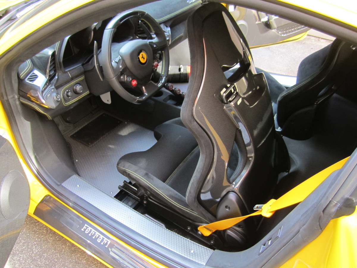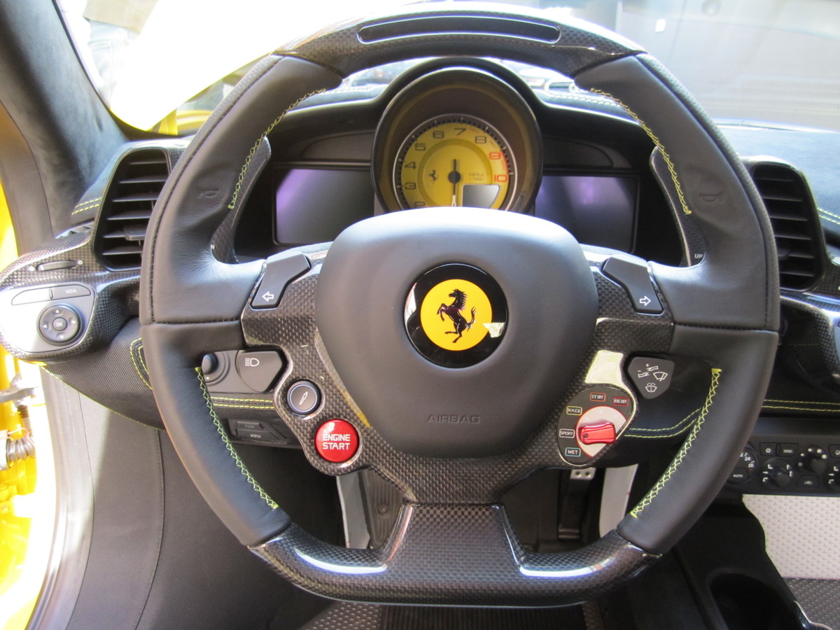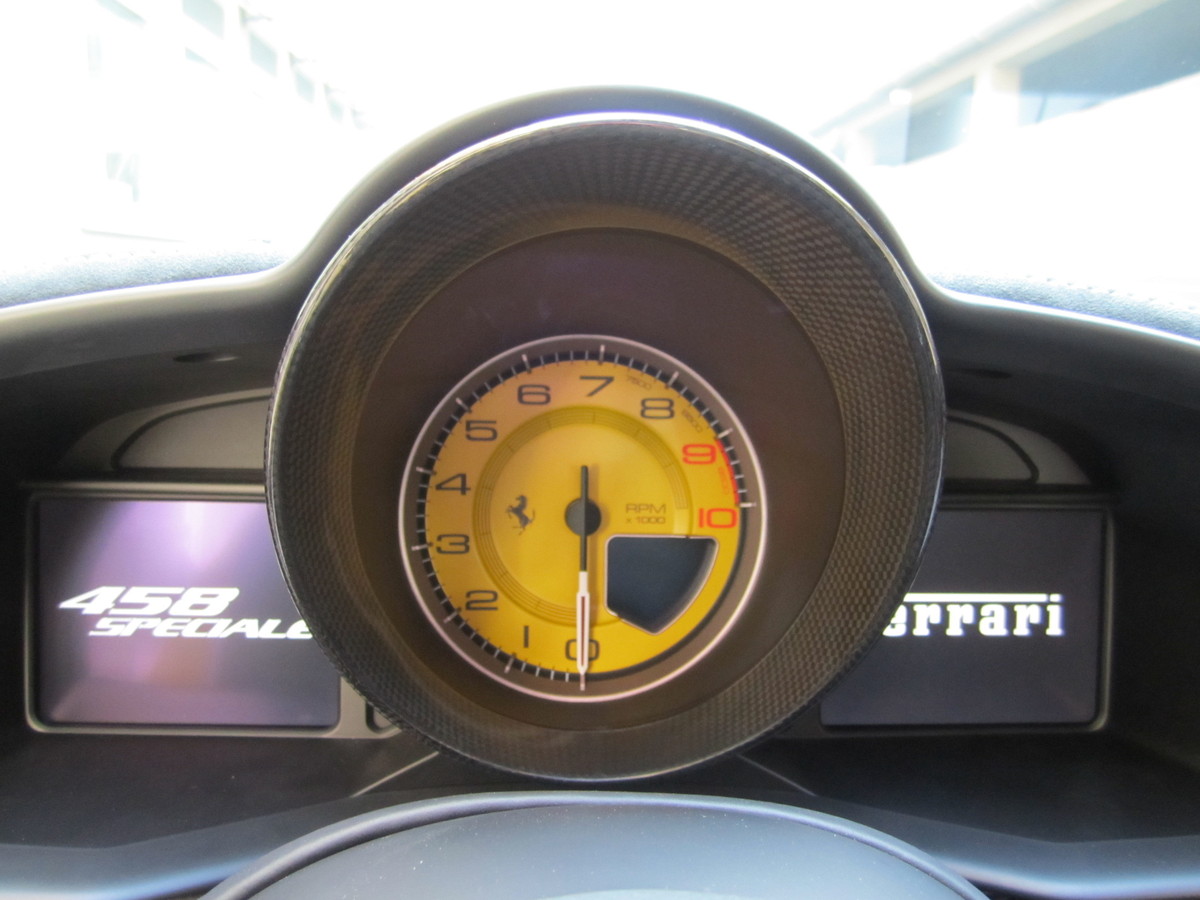 眼前這部Giallo Modena黃色塗裝、黃色煞車卡鉗的Ferrari 458 Speciale里程數僅12公里,於出廠時便選配了Hi-Fi頂級音響系統、前懸吊挺舉功能、消光黑色塗裝輪圈、Nero Stellato黑色銀邊NART車身飾條、黃色轉速表、iPod連接阜、倒車螢幕顯示系統與原廠滅火器等實用性配備,而車商Scuderia Motors開出23.5萬歐元的售價,相當值得擁有,不過也可以見得本地代理商的定價相當合理,但如果希望要比別人早點拿到,引進後加上關稅、驗車與領牌等相關費用後,成本可能會比向代理商購買新車還高,就端看個人覺得是否值得,有興趣的朋友不妨與本地車商討論研究。