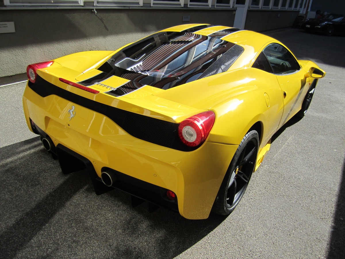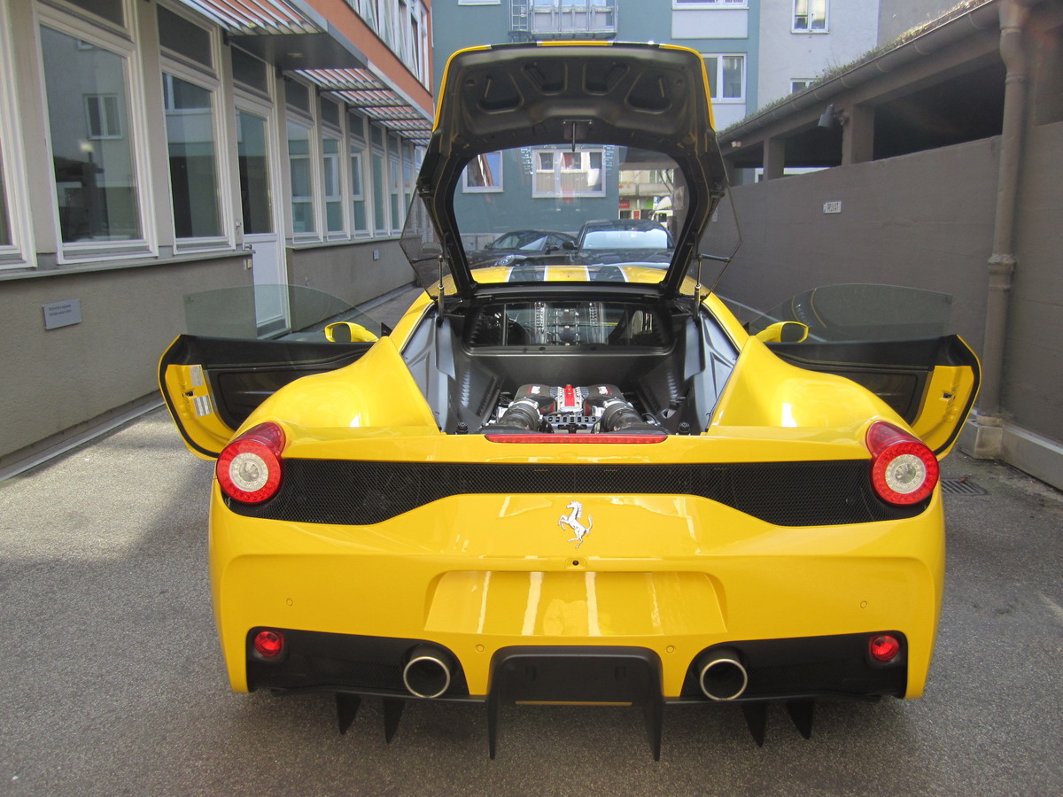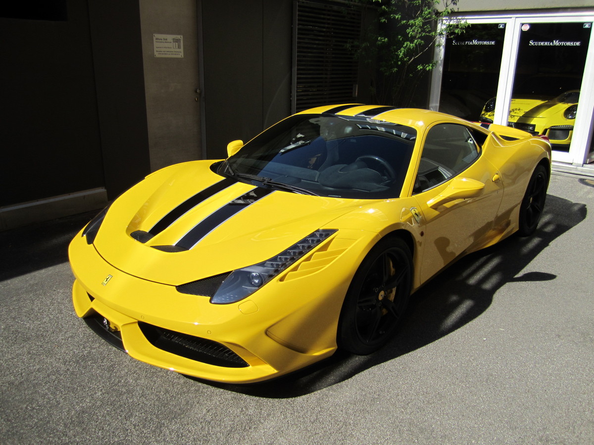 不過,如果你此時此刻想要訂購Ferrari 458 Speciale,可能需要抽取號碼牌,而交車日期可能會延後至2015年中,甚至更晚,先前已經在第一時間趕緊訂購的首批準車主們可說是當機立斷,而他們得以在路上還沒有太多Ferrari 458 Speciale時搶鮮交車。不只本地如此,面對全球急單湧入,某些經銷商即便是顧客主動支付訂金也無法保證一定能排到Ferrari 458 Speciale的配額,而在這種情況下,位於德國慕尼黑(Munich, Germany)的知名超級跑車商Scuderia Motors竟然出現一部458 Speciale現車,相當引人注目。
