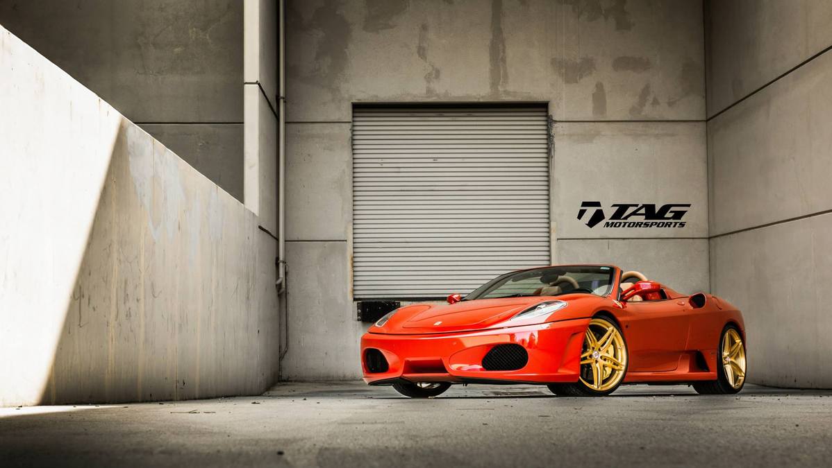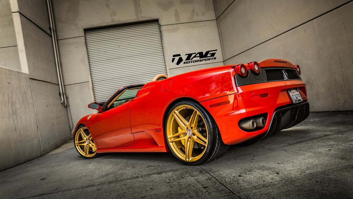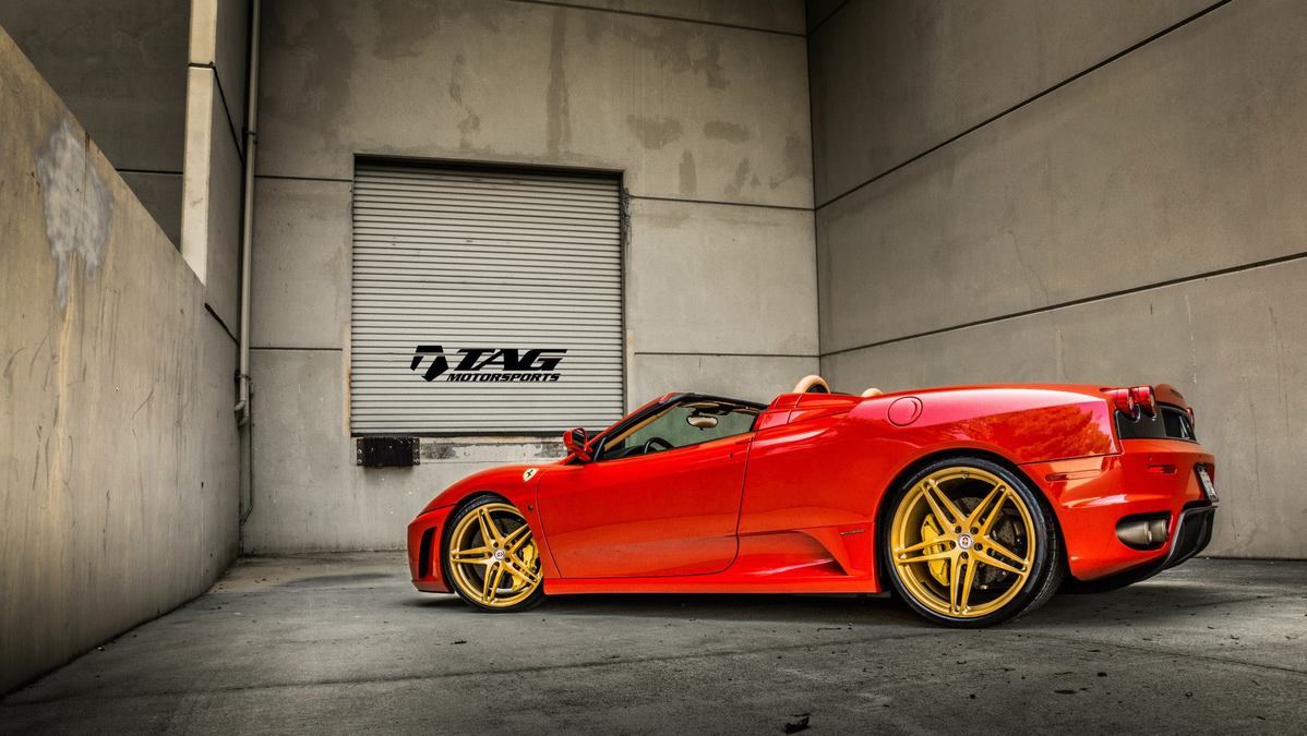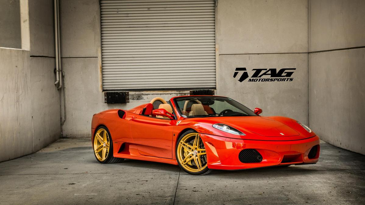 論性能,Ferrari F430車系的確紅極一時,但隨著時光飛逝,能夠留在人們腦中的便是視覺,而就外觀來說,至今依舊有不少人認為Ferrari F430車系比較具有義大利車該有之蠻橫風格,其中敞篷版本Ferrari F430 Spider更是常被喻為全球最美敞篷車之一。畢竟,它擁有採取硬頂敞篷配置之Ferrari 458 Spider所沒有的透明玻璃引擎蓋,開篷與關篷間展現出難以取代的萬種風情。今天帶給各位一部由改裝廠TAG Motorsports所操刀的紅色塗裝Ferrari F430 Scuderia,步出原廠時便選擇駝色真皮內裝的組合,隨後換裝Scuderia 16M版本車尾碳纖維飾板,再選用知名品牌HRE Performance Wheels出品、型號P1072的金色輪圈,雖然其五幅雙肋式樣的設計與原廠所配置的基本款式輪圈相似,然而HRE於線條與角度間的處理,造就更為強烈的視覺張力,讓這部膾炙人口的經典紅鬃烈馬散發出極具熱情之跑格。