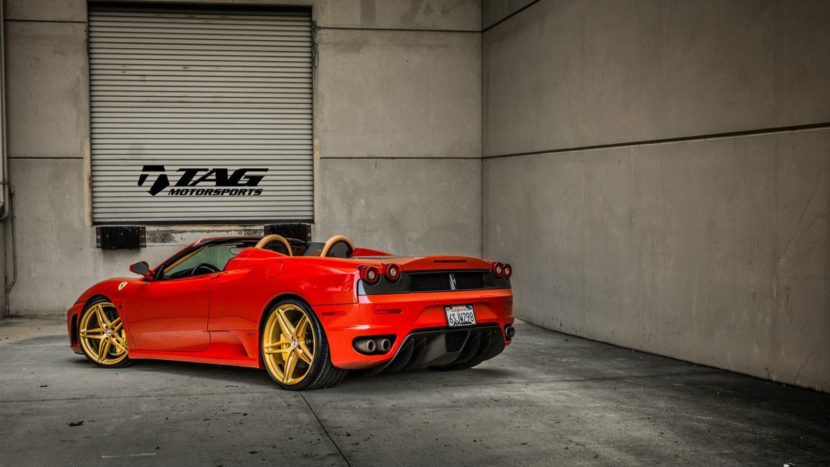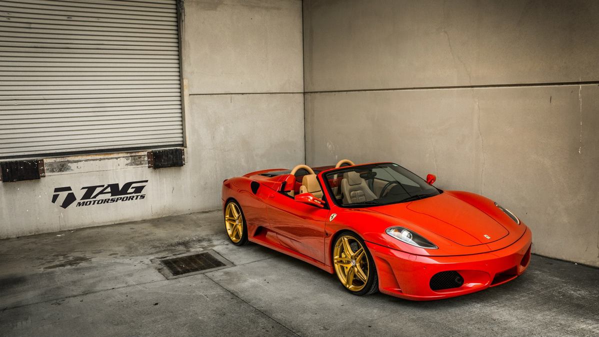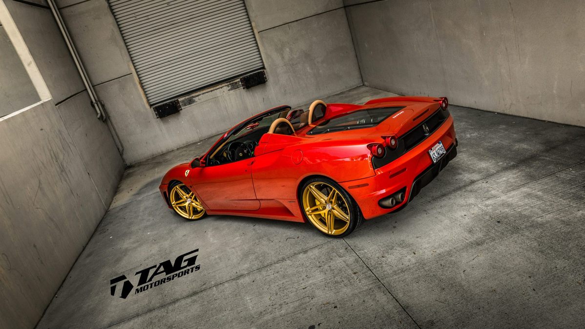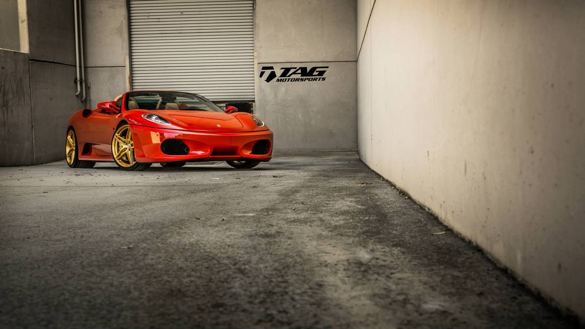 論性能,Ferrari F430車系的確紅極一時,但隨著時光飛逝,能夠留在人們腦中的便是視覺,而就外觀來說,至今依舊有不少人認為Ferrari F430車系比較具有義大利車該有之蠻橫風格,其中敞篷版本Ferrari F430 Spider更是常被喻為全球最美敞篷車之一。畢竟,它擁有採取硬頂敞篷配置之Ferrari 458 Spider所沒有的透明玻璃引擎蓋,開篷與關篷間展現出難以取代的萬種風情。今天帶給各位一部由改裝廠TAG Motorsports所操刀的紅色塗裝Ferrari F430 Scuderia,步出原廠時便選擇駝色真皮內裝的組合,隨後換裝Scuderia 16M版本車尾碳纖維飾板,再選用知名品牌HRE Performance Wheels出品、型號P1072的金色輪圈,雖然其五幅雙肋式樣的設計與原廠所配置的基本款式輪圈相似,然而HRE於線條與角度間的處理,造就更為強烈的視覺張力,讓這部膾炙人口的經典紅鬃烈馬散發出極具熱情之跑格。