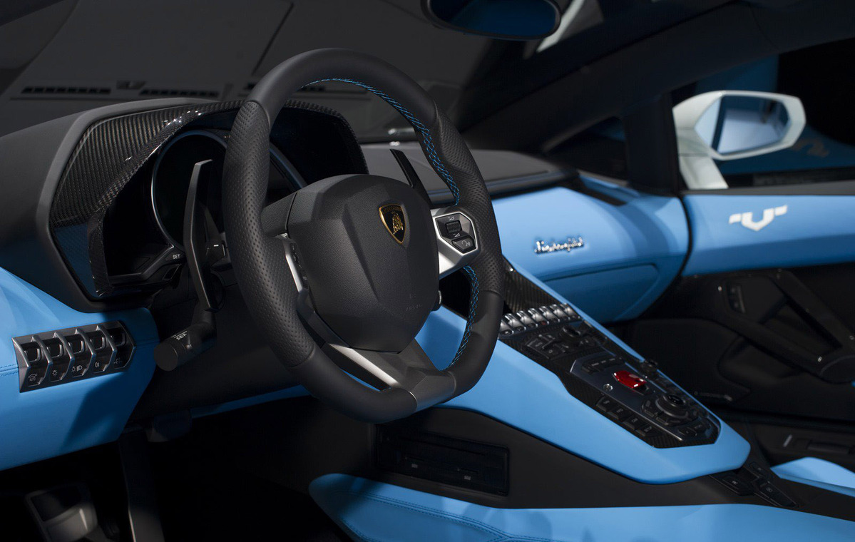 在其他部分,Aventador Nazionale採用大量的碳纖維空力套件,包括進氣系統及保險桿,毫無疑問她的外觀讓人們印象深刻,而其外觀與內裝有相當大的反差,而內裝部份也毫不遜色,事實上從車外向車室看就可以看到其內部泛著藍色的光芒,其座艙結合了Nero Ade及Blu Cepheus兩種顏色形式,由Nasser