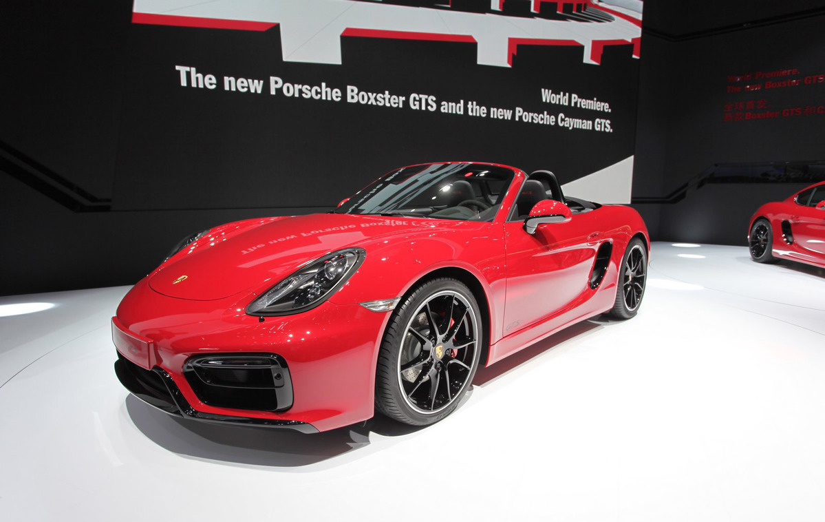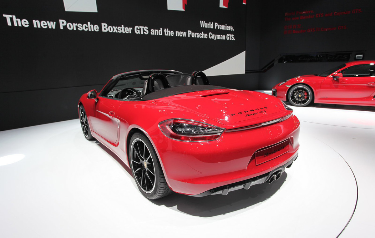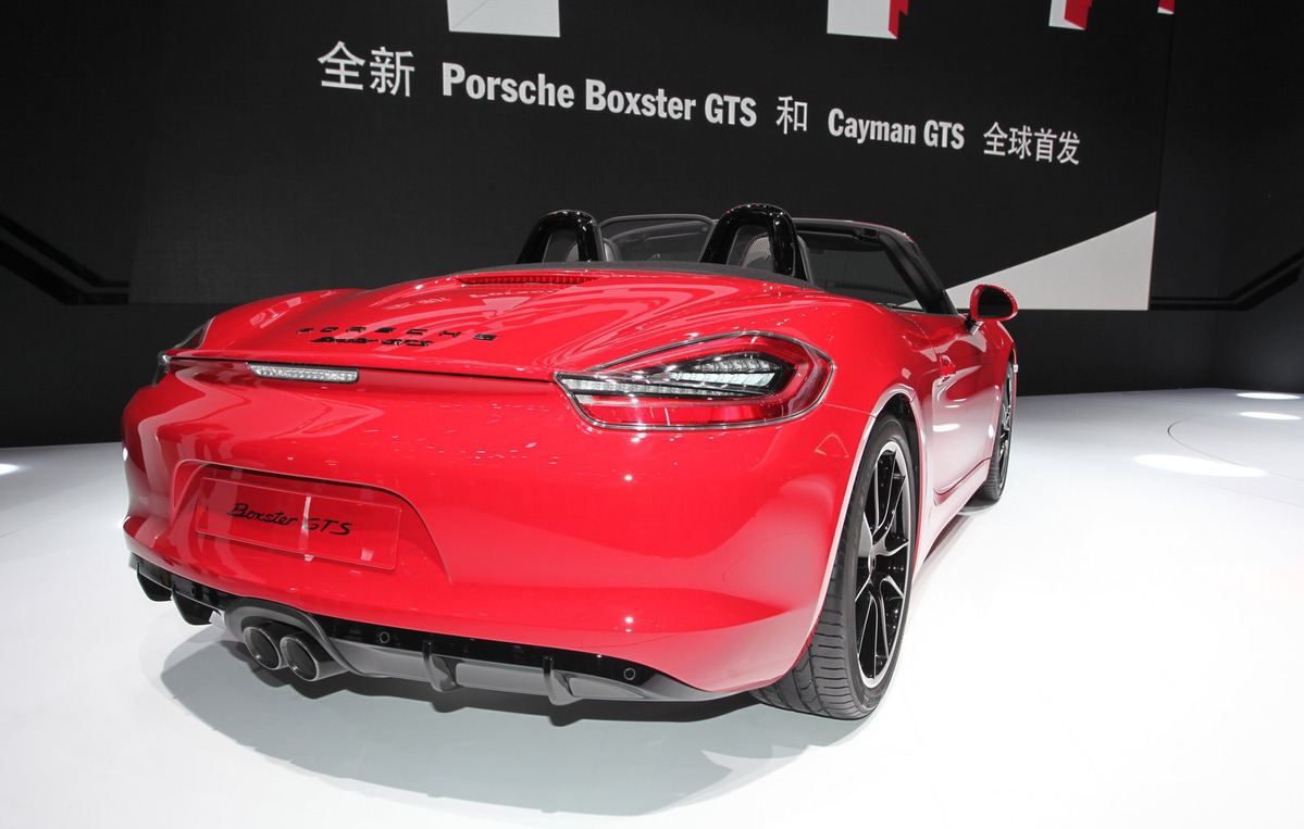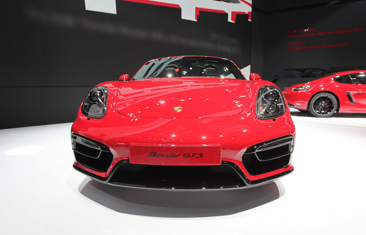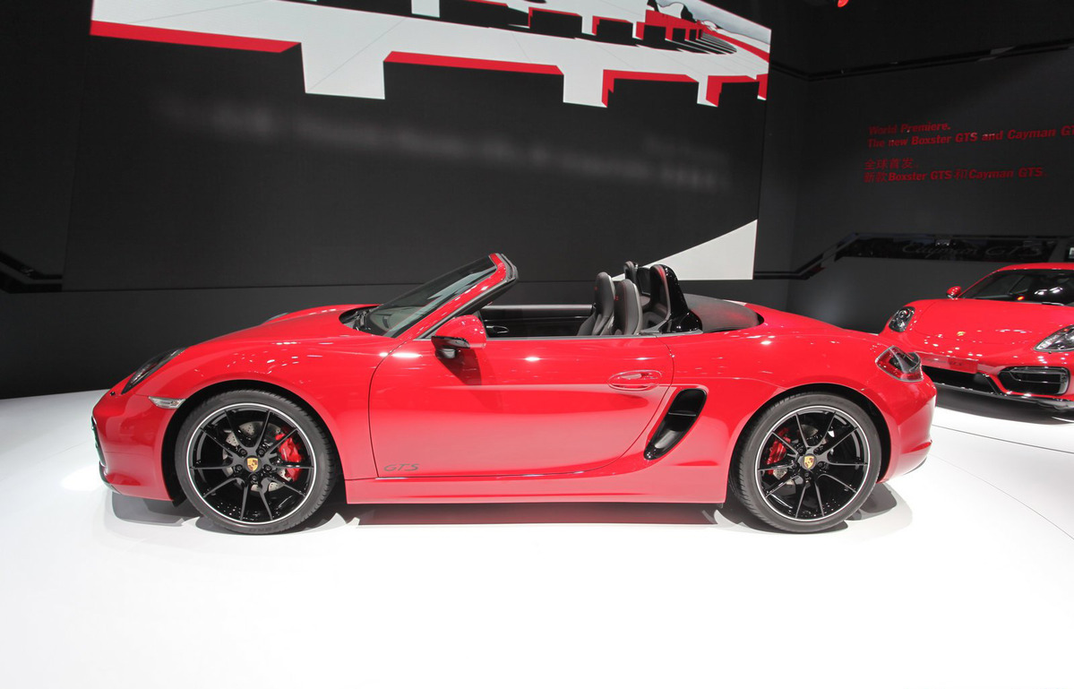 在雙人座跑車市場當中,來自德國車廠Porsche的雙門車款Cayman與敞篷版本Boxster雙兄弟向來頗受市場愛載,而在繼公布官方照片後,Porsche選擇在北京車展(Beijing Motor Show)當中發表預料將會較現行Boxster S更為勁爆、更有駕駛樂趣的Porsche Boxster GTS旗艦版本。車展當中,這部德國雙人敞篷跑車以亮眼的紅色塗裝現身,擁有更具侵略性的前保桿,使用黑色處理的新款式前氣壩飾蓋與前下巴,車門下方貼有GTS專屬貼飾,車尾部分則是有燻黑處理尾燈與專屬後下擾流板,讓整部車呈現出較為強烈的跑格。