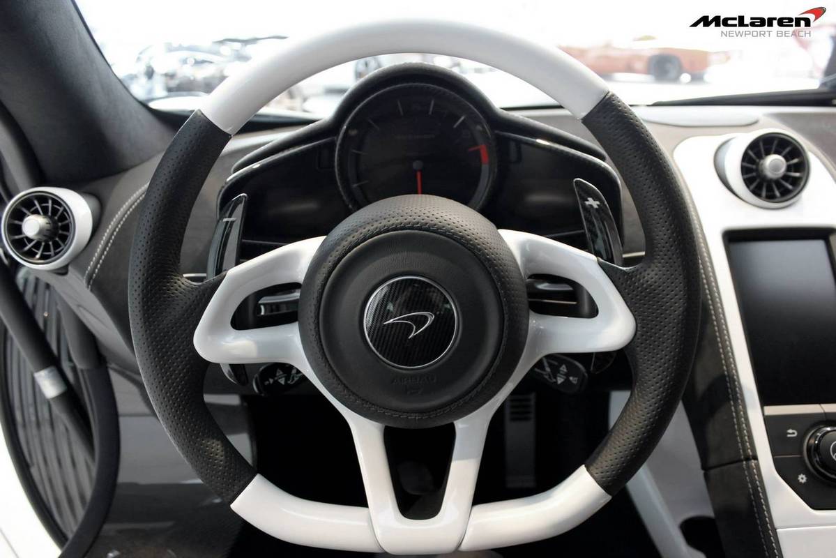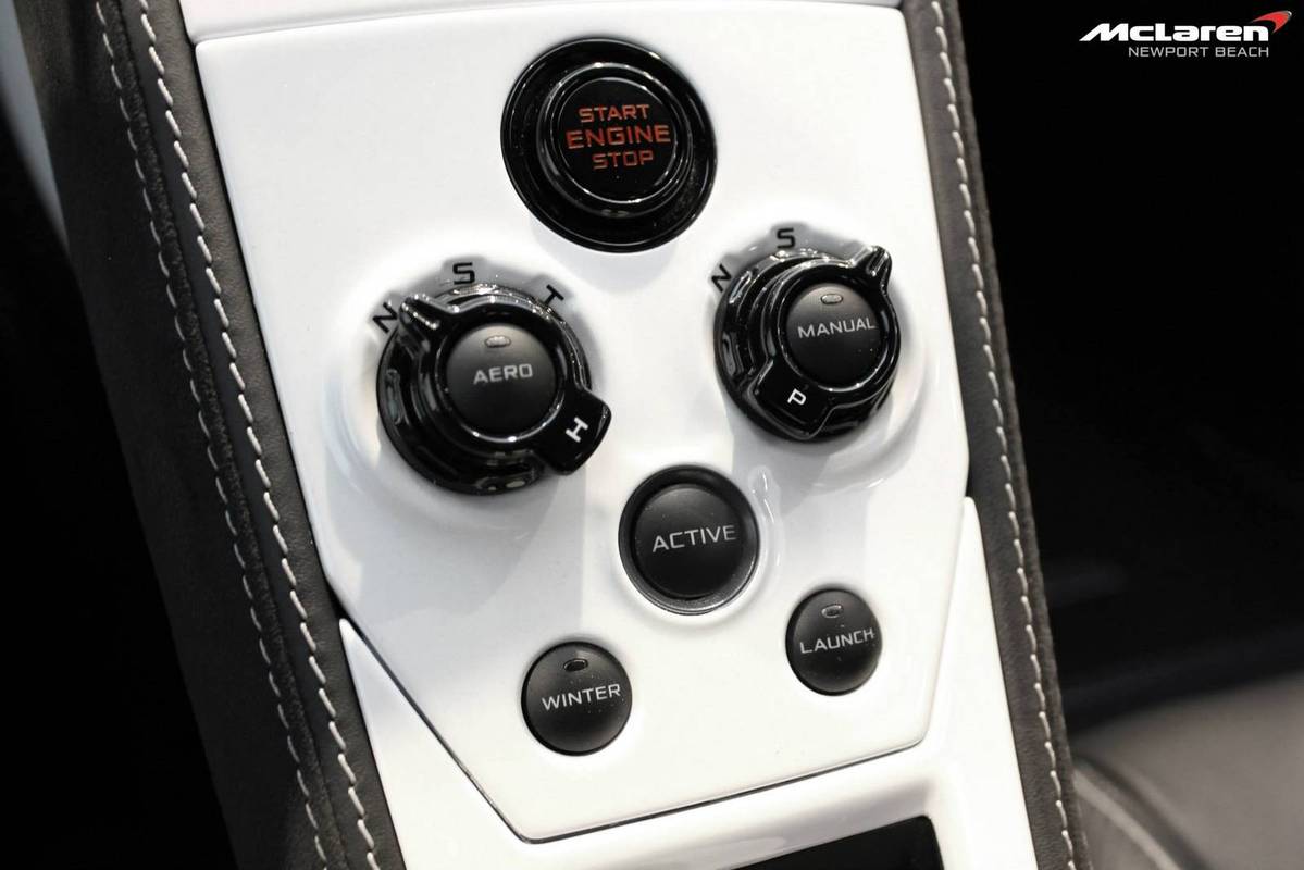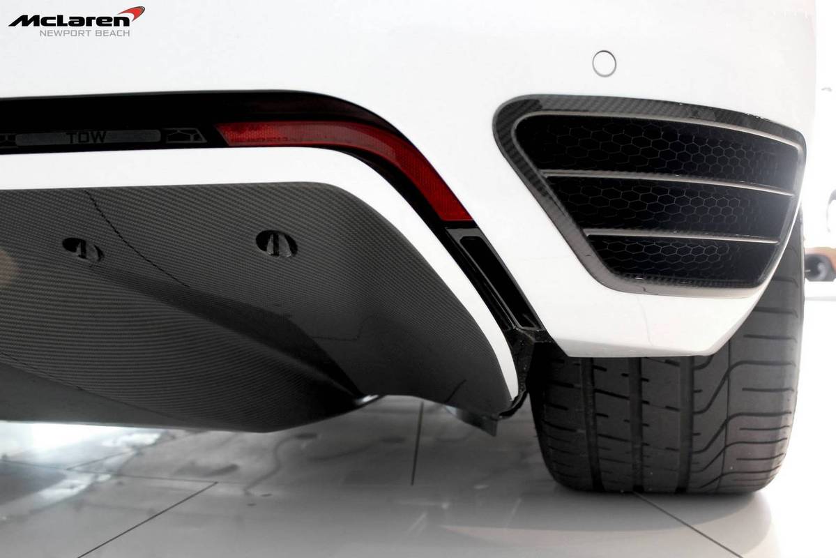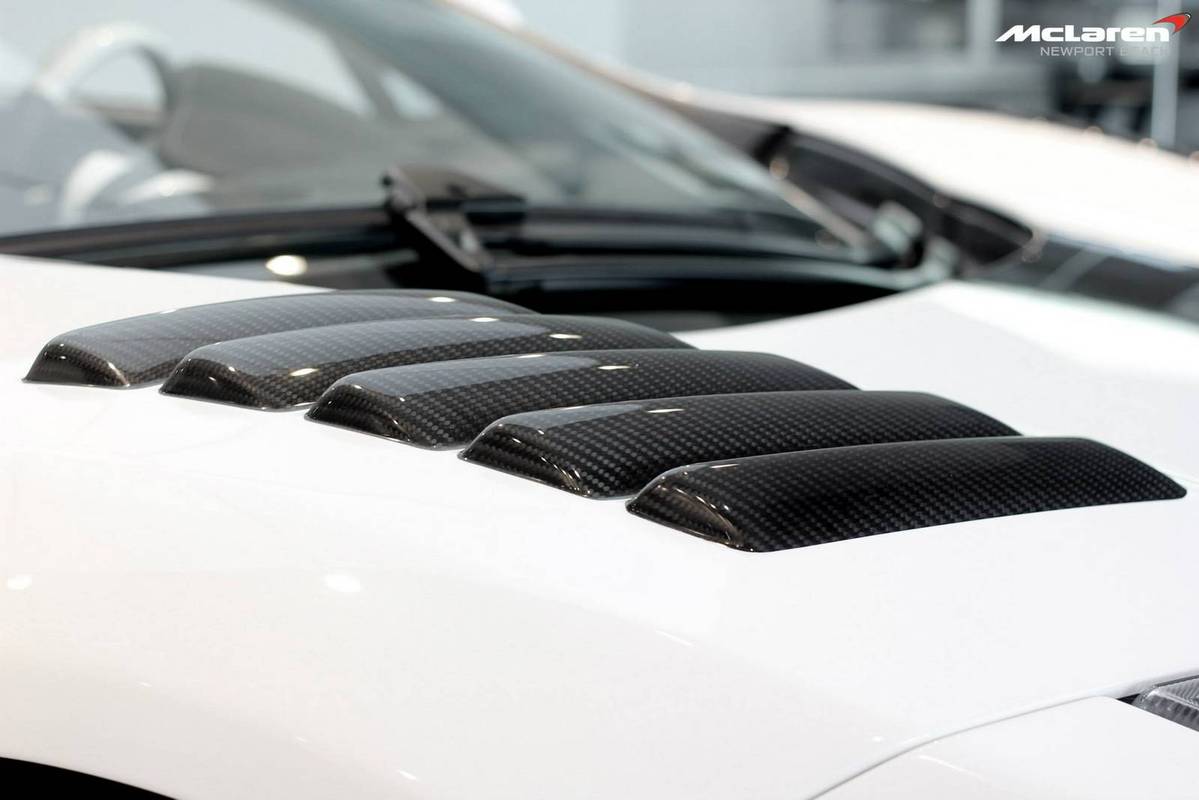 12C MSO概念車在很多地方都顯得與眾不同,諸如碳纖維前保險桿、後方空氣煞車、引擎蓋等等,在車頂的部分則有大型進氣口,提供引擎擁有足夠之空氣得以燃燒,這些氣口當然也提供了輪胎、剎車所需之冷卻效果,其白色塗裝可不是一般的白色,他們聲稱是”阿拉斯加鑽石白”,搭配大量碳纖維套件,與白色塗裝可說是絕配。內裝部分,碳纖維仍是遍布車室內,包括換檔撥片、車門飾板等等小細節,這組照片在McLaren Newport Beach的展示間裡,診所般乾淨的場地搭配這輛車,讓人震撼的久久 不能自己。