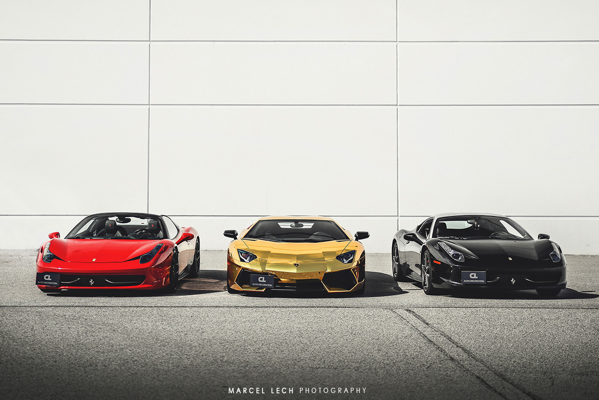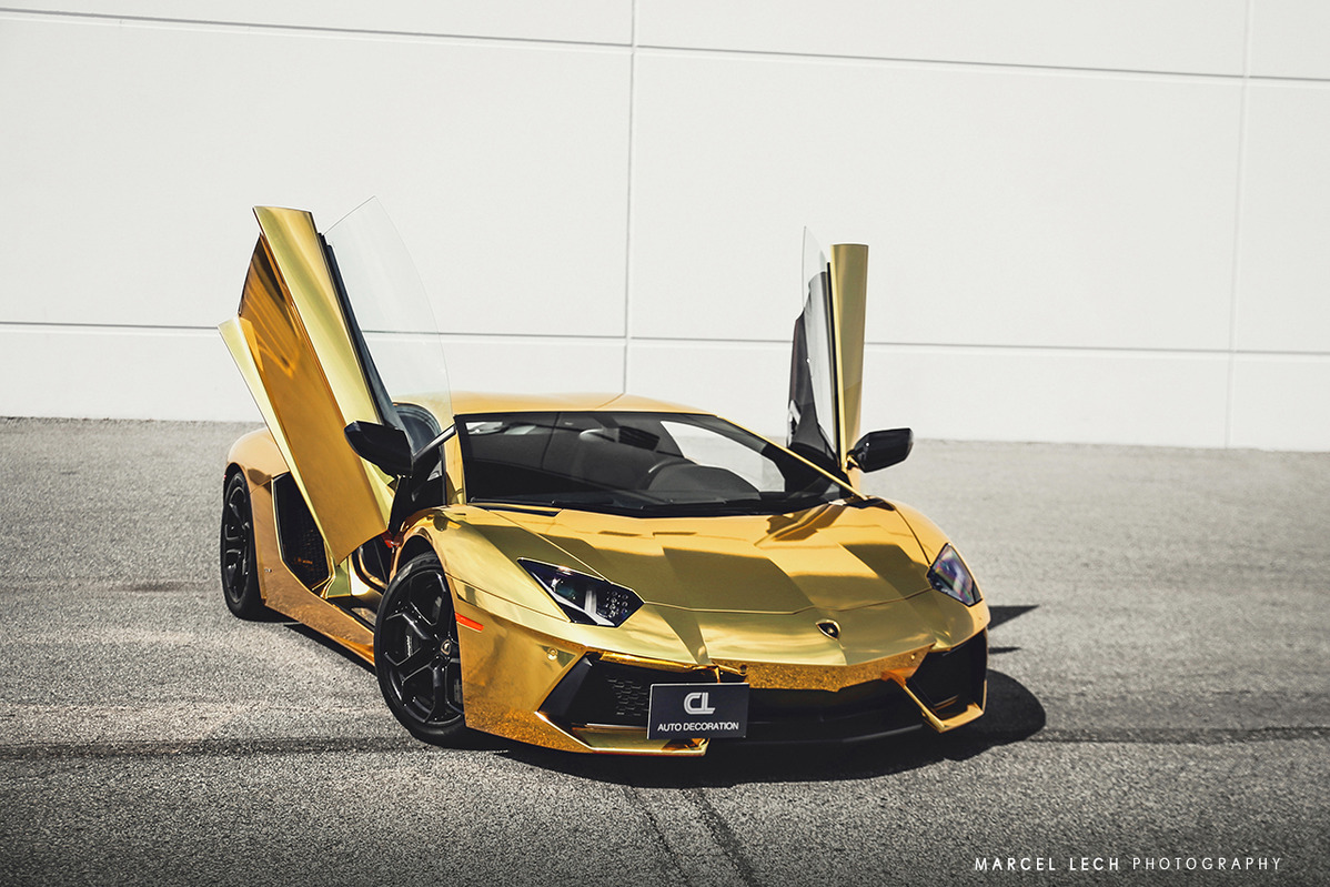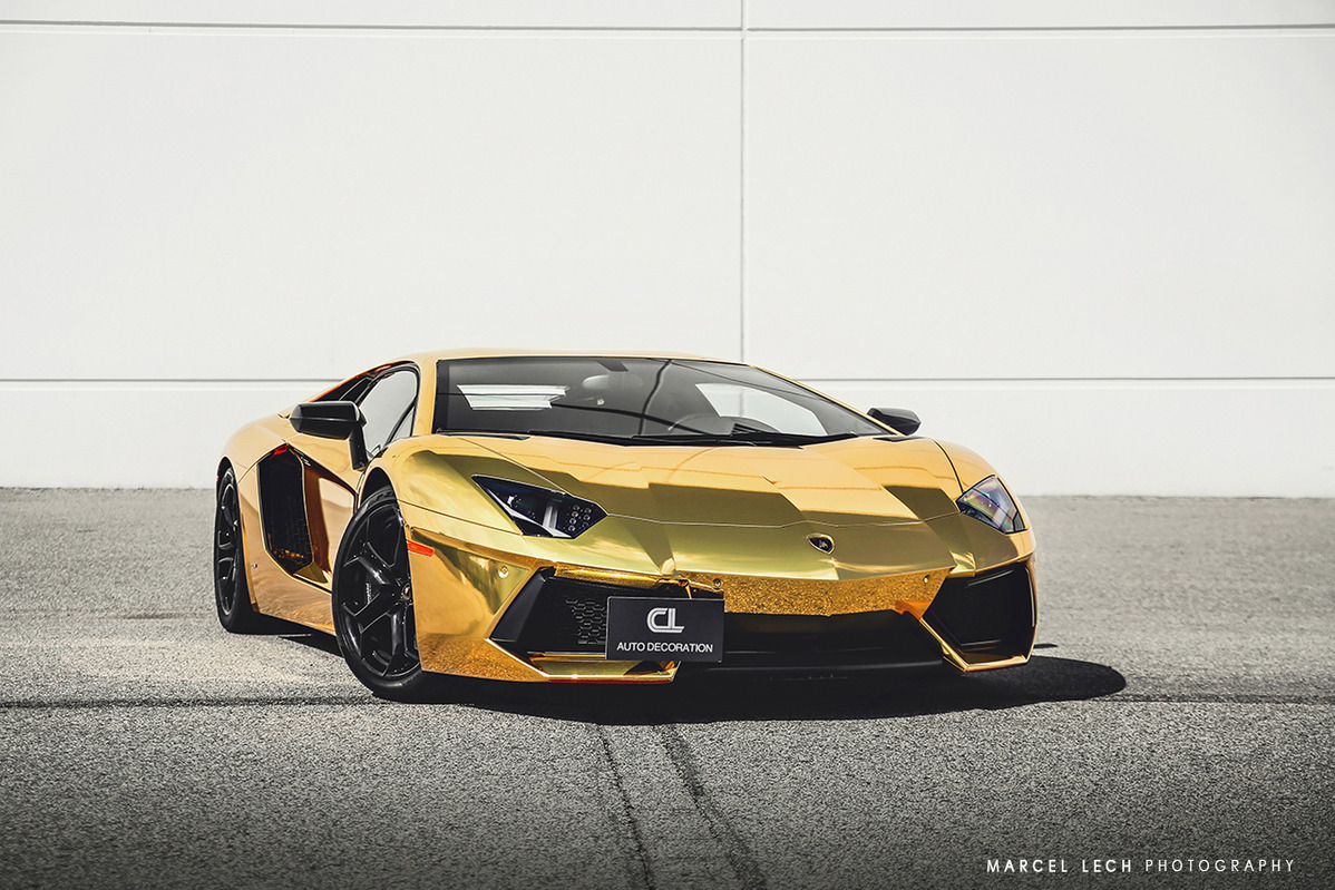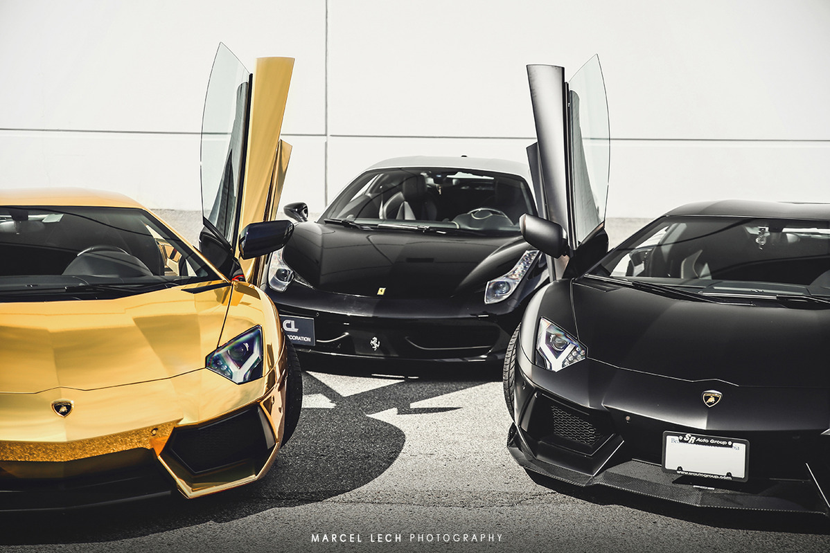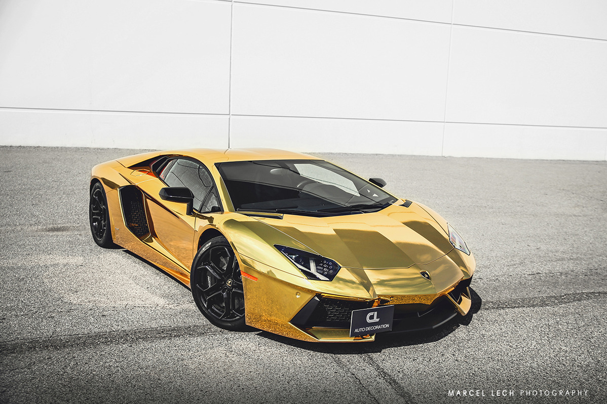 今天與各位分享知名攝影專家Marcel Lech於加拿大溫哥華(Vancouver, Canada)所進行的華麗拍攝圖集,現場找來黑色Ferrari 458 Italia、紅色Ferrari 458 Spider、東瀛戰神Nissan R35 GT-R與兩部義大利超級跑車旗艦Lamborghini Aventador LP700-4。眼前這部由貼膜專業廠CL Auto所操刀的Lamborghini Aventador LP700-4被施以全車電鍍金色貼膜,其餘大致上維持原廠配置。