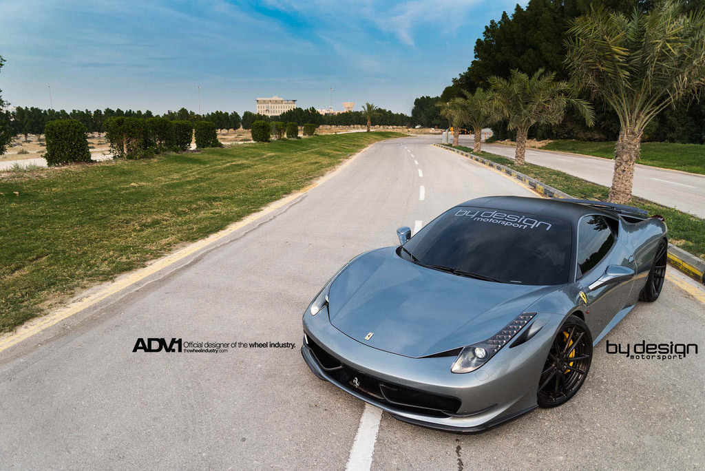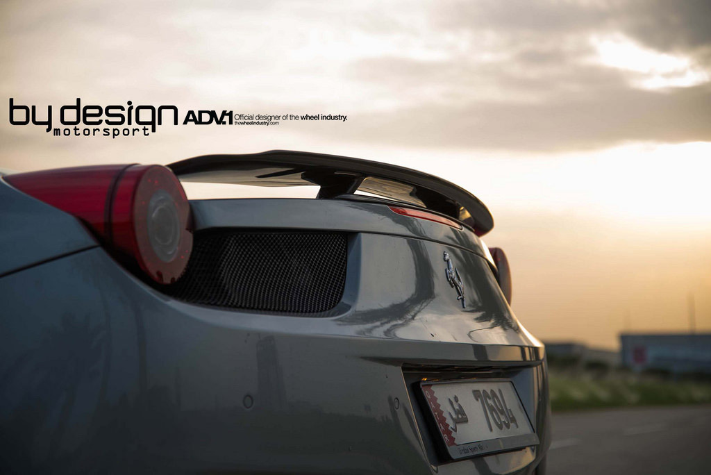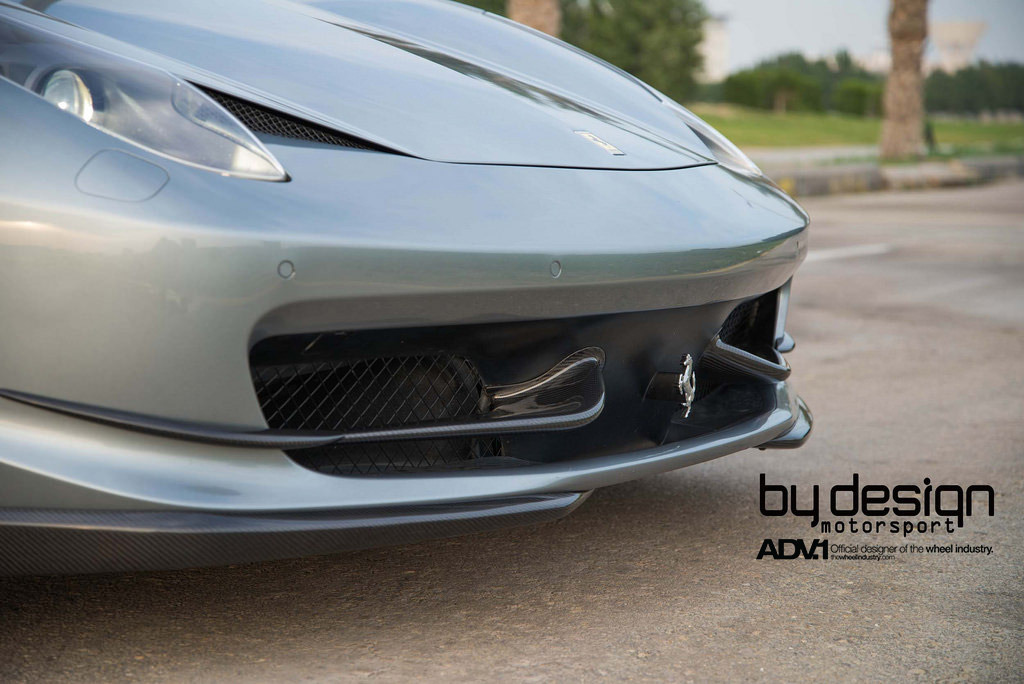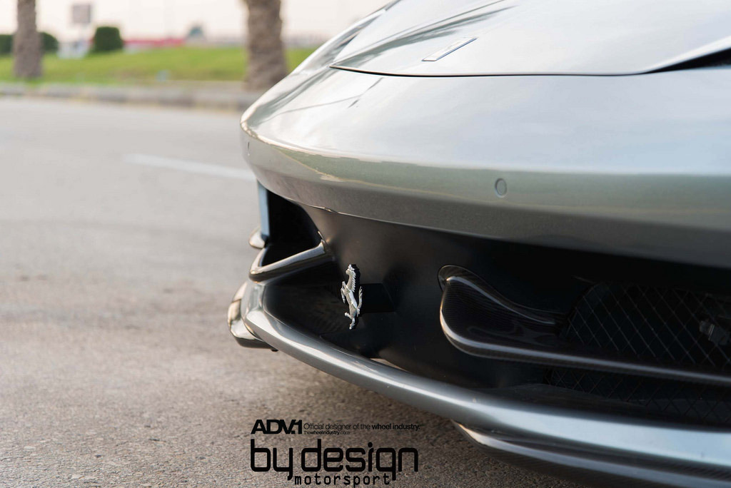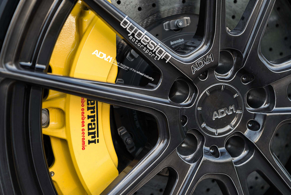 今天帶給各位的是一部由沙烏地阿拉伯(Saudi Arabia)改裝廠By Design Motorsport所操刀的Ferrari 458 Italia,除了換裝御用品牌Novitec Rosso的碳纖維空力套件外,還足登知名品牌ADV.1 Wheels、型號ADV5.2 MV2 SL的輕量化輪圈,圈面採用手工刷痕燻灰色塗裝,尺寸為前20x9J、後21x12.5J的前後配設定,搭配Pirelli P Zero Nero高性能跑胎,另外再換裝短彈簧將車身降低,展現這部義大利超級跑車高質感的熱情跑格。