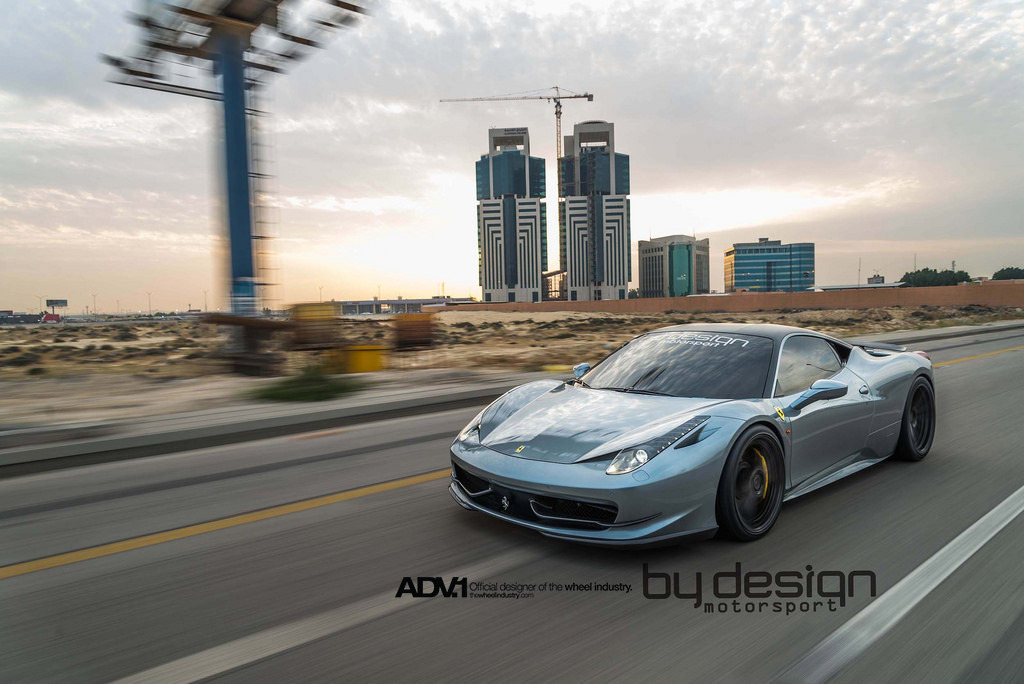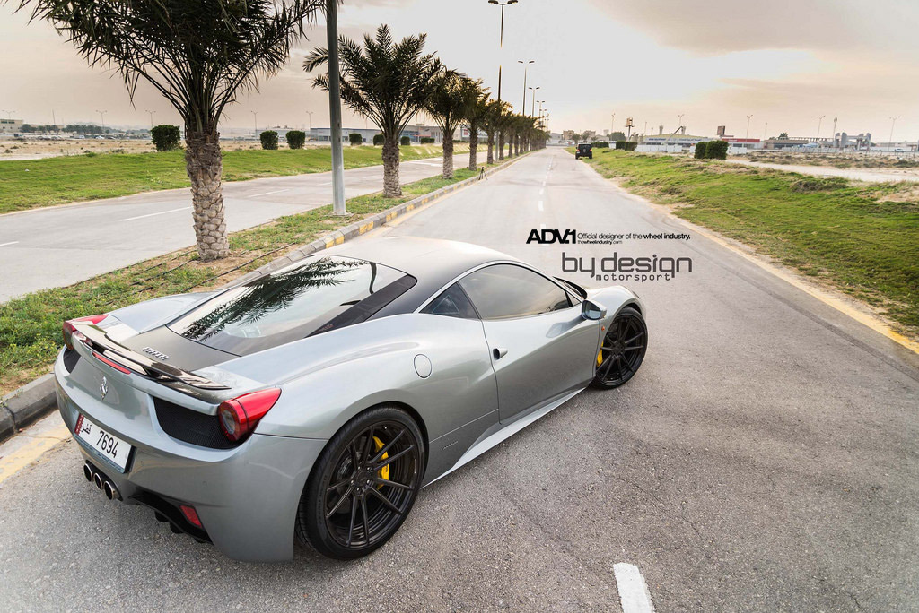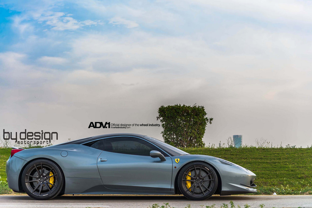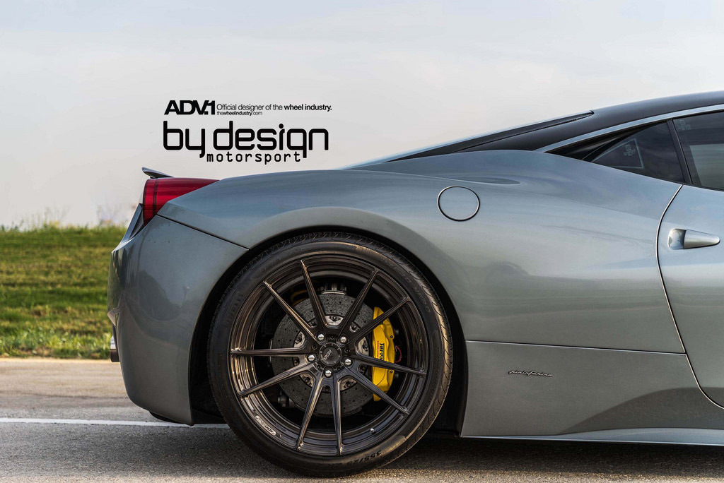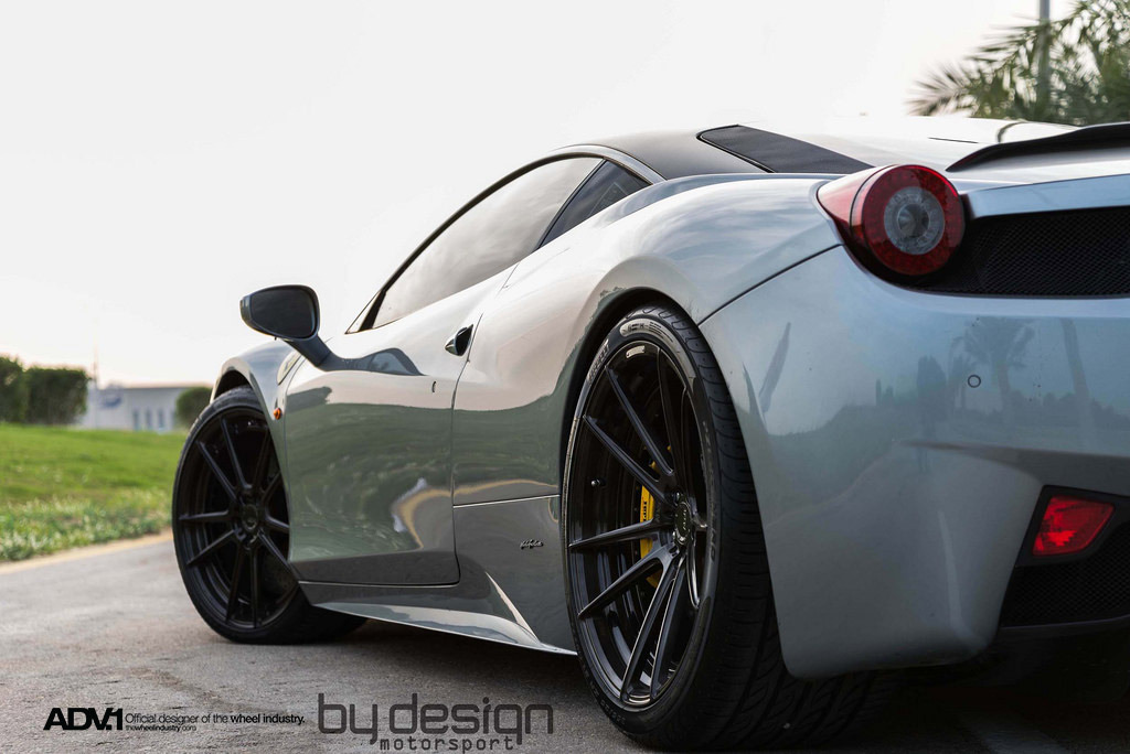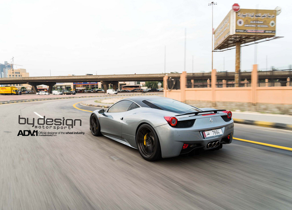 今天帶給各位的是一部由沙烏地阿拉伯(Saudi Arabia)改裝廠By Design Motorsport所操刀的Ferrari 458 Italia,除了換裝御用品牌Novitec Rosso的碳纖維空力套件外,還足登知名品牌ADV.1 Wheels、型號ADV5.2 MV2 SL的輕量化輪圈,圈面採用手工刷痕燻灰色塗裝,尺寸為前20x9J、後21x12.5J的前後配設定,搭配Pirelli P Zero Nero高性能跑胎,另外再換裝短彈簧將車身降低,展現這部義大利超級跑車高質感的熱情跑格。