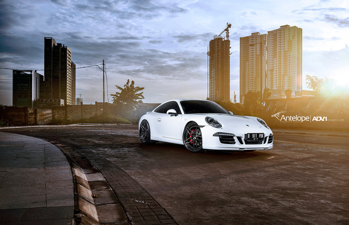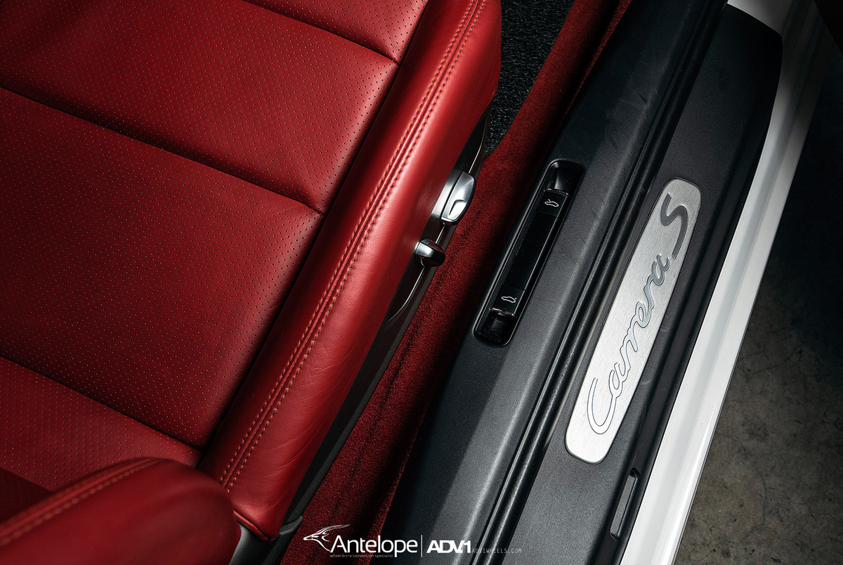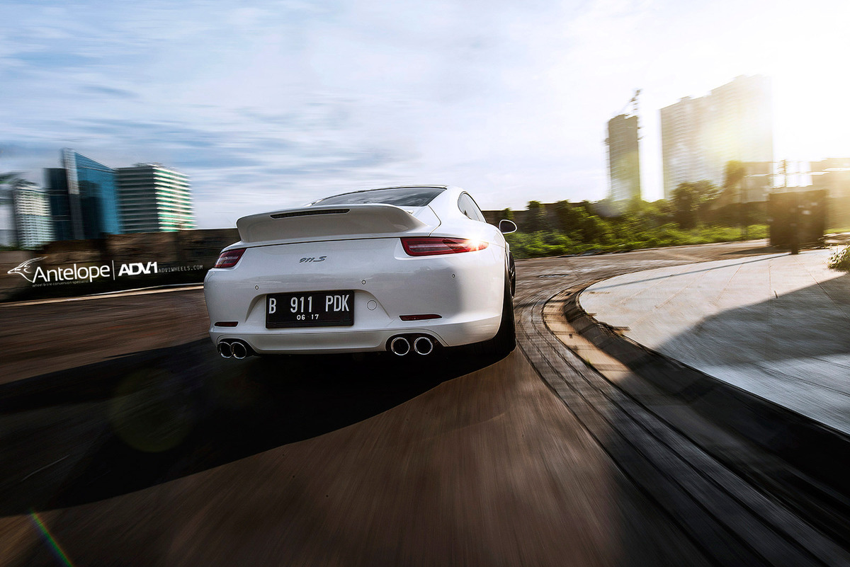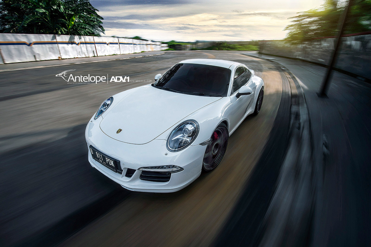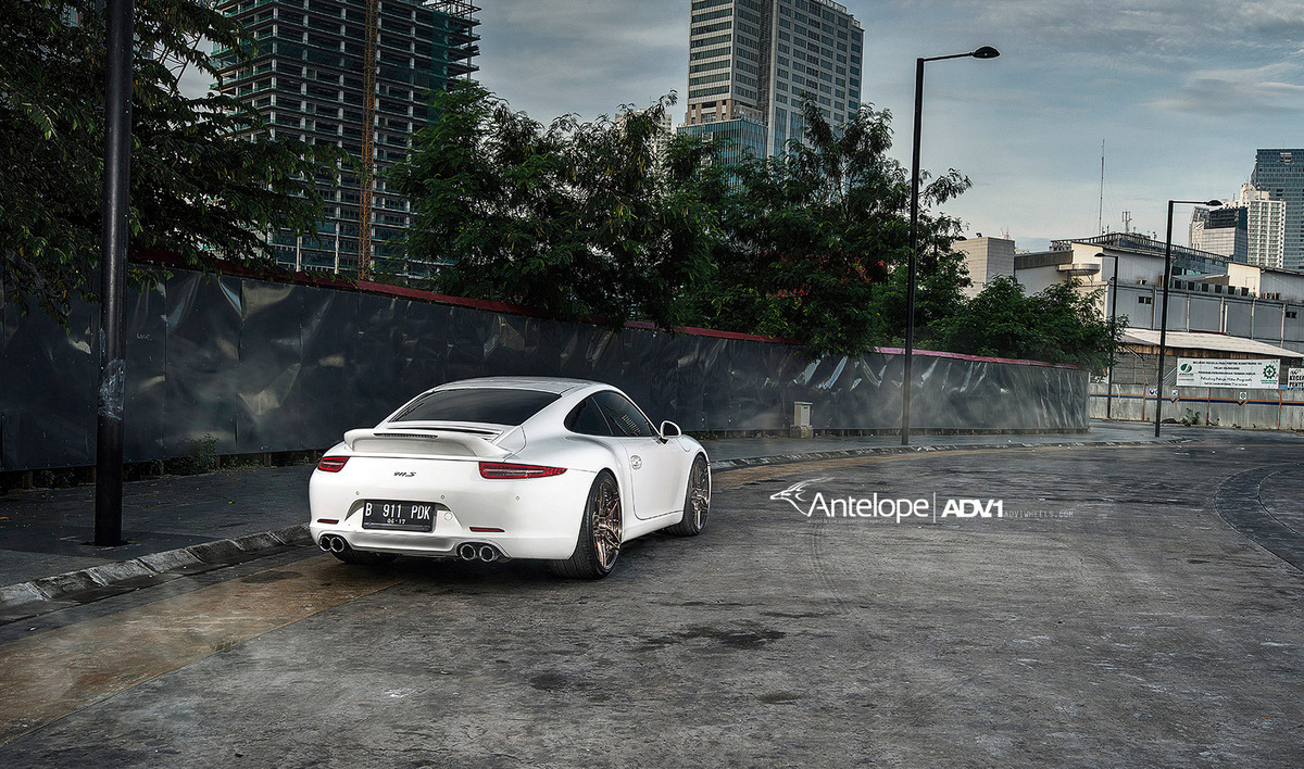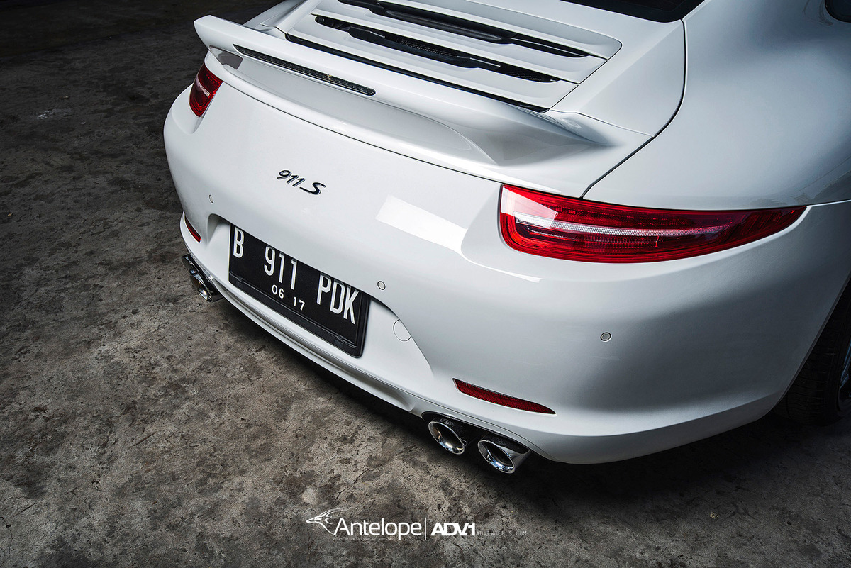 今天帶給各位的是由印尼(Indonesia)改裝廠Antelope Ban所操刀的白色塗裝Porsche 991 Carrera S,換裝知名品牌ADV.1 Wheels、型號ADV005 MV2的輪圈,尺寸為前21x9.5J、後21x12J的前後配設定,圈面採用特殊的手工刷痕煙燻色塗裝,搭配紅色塗裝的原廠Porsche煞車卡鉗、經典鴨尾翼與加裝之前下巴,再透過換裝之高低軟硬可調式避震器組使車身降低,將這部德國跑車的質感再向上提升。
