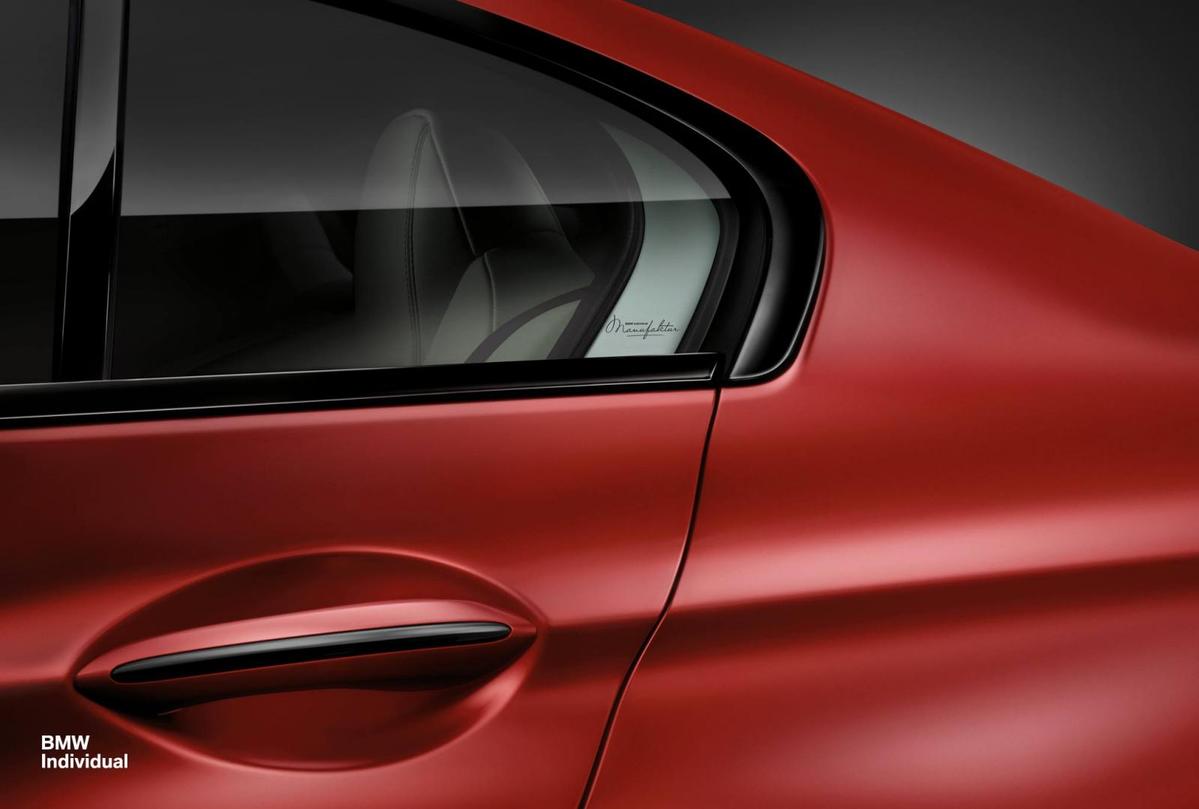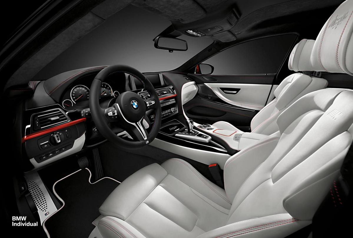 現在,BMW原廠針對BMW F06 M6 Gran Coupe推出由客製化部門BMW Individual所打造的特仕版本車款,車身採用消光紅色塗裝搭配電鍍黑色車身飾條,內裝部分用上諸多頂級材質,包含Opal White米白色Merino真皮包覆之座椅、Sakhir Orange橘色車縫線與鋼琴烤漆黑色飾板,並於菸灰缸蓋、門檻、腳踏墊與座椅頭枕等處施以專屬飾徽,別具風格。動力部分,如同其他版本M6一般,這部特仕版本的M6 Gran Coupe搭載4.4升V8渦輪增壓引擎,最大馬力為560HP,更在69.3kgm的強大扭力與M-DCT七速雙離合器變速箱的加持下,百里加速僅需4.2秒。