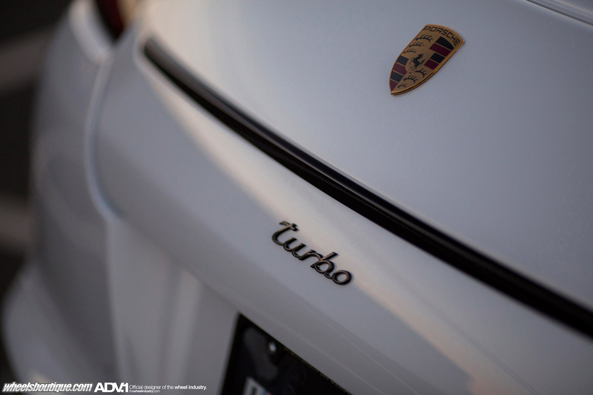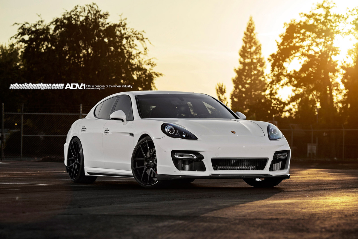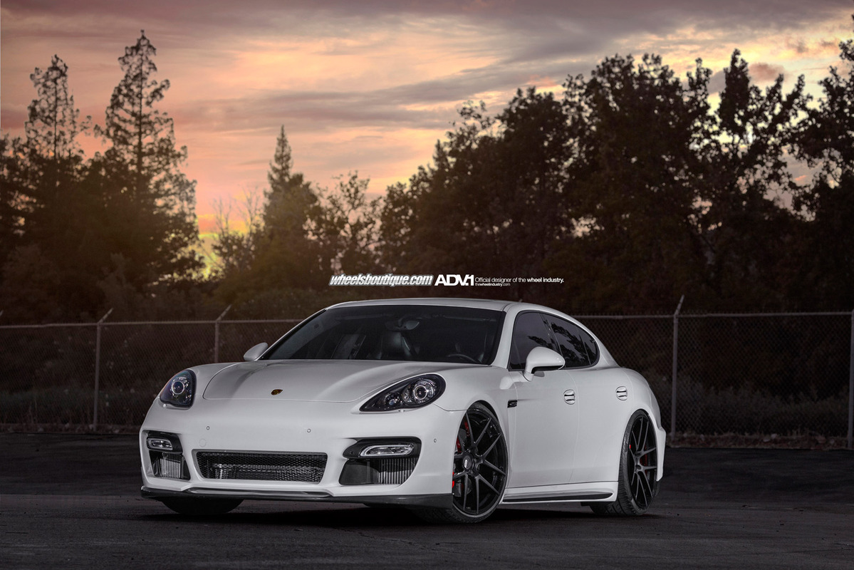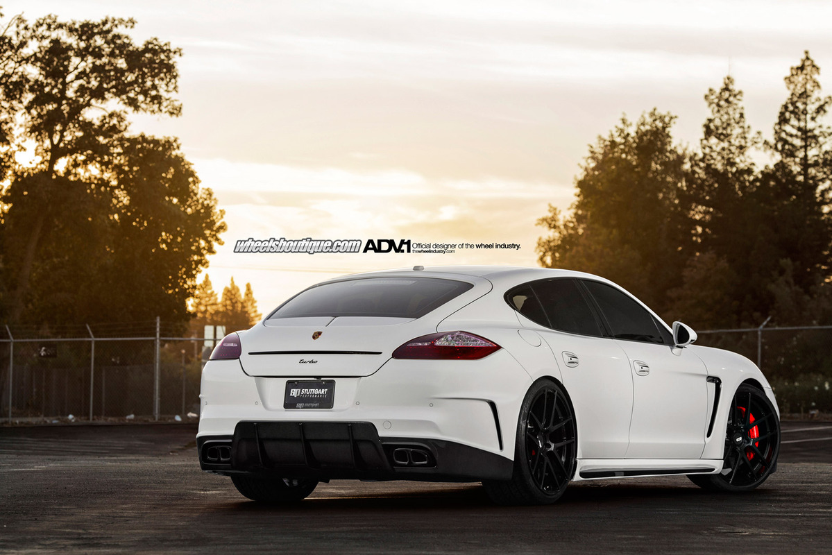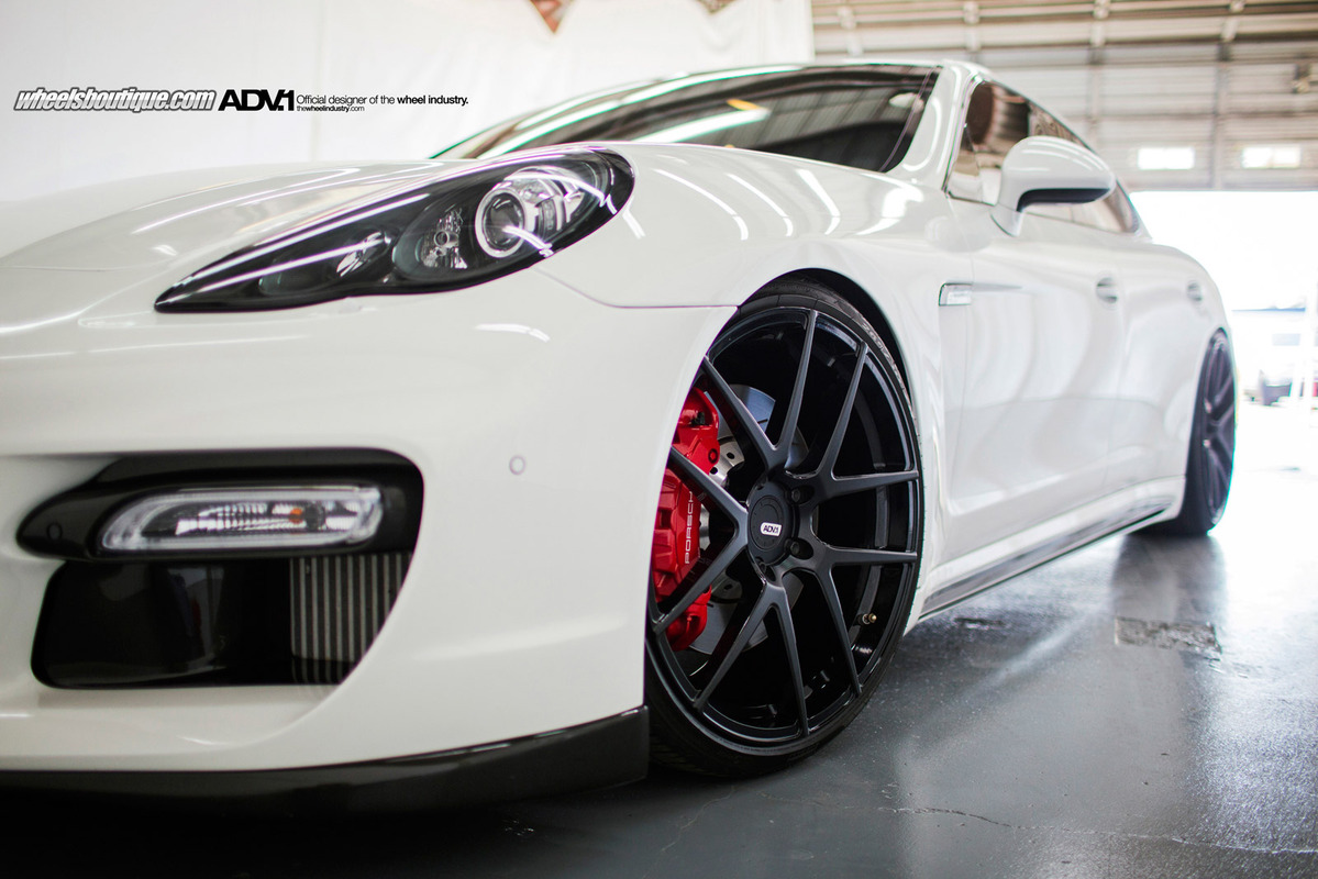 今天帶給各位一部由改裝品牌ADV.1 Wheels所推出的小改款前Porsche Panamera Turbo,選用型號ADV5.01 MV1的輪圈,尺寸為前22x10.5J、後22x12J的前後配設定,圈面採用消光黑色與亮光黑色的混合搭配,點綴出白色車身擅長的對比黑白視覺效果。動力方面,Porsche Panamera Turbo搭載4.8升渦輪增壓八缸引擎,最大馬力為500HP,扭力則有71.4kgm的峰值,輔以Porsche Doppel Kupplung (PDK)雙離合器變速箱的加持,使得重量將近2噸的它能繳出百里加速4.1秒的優異成績,一般道路足敷使用。