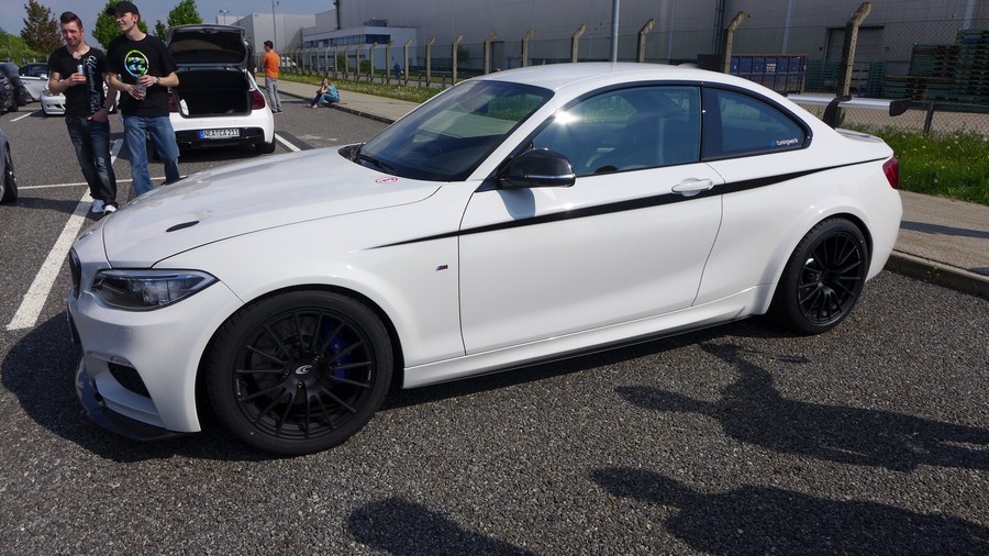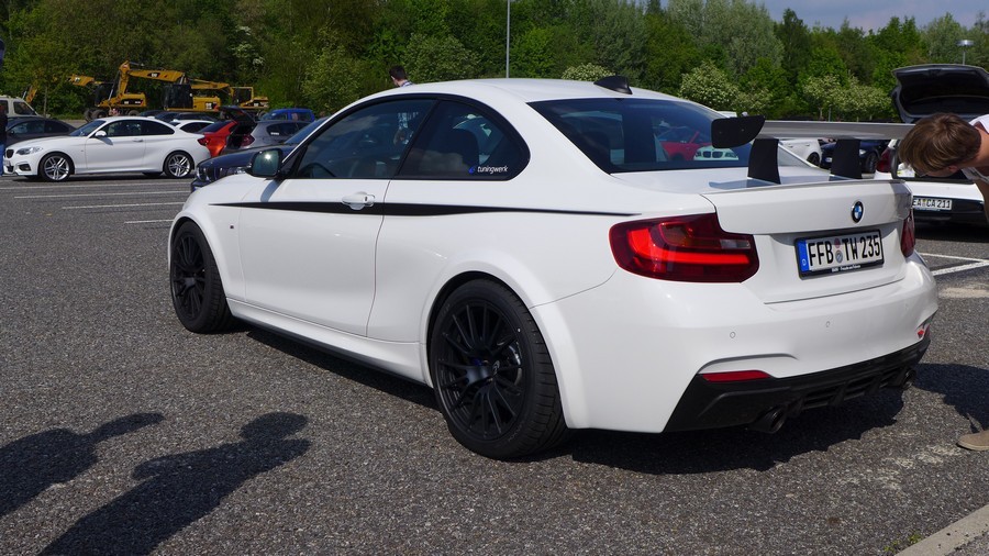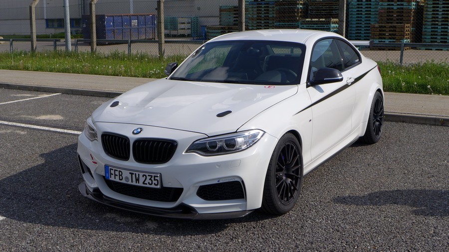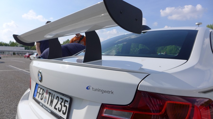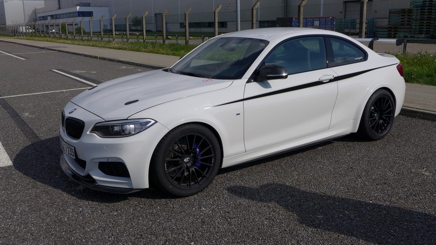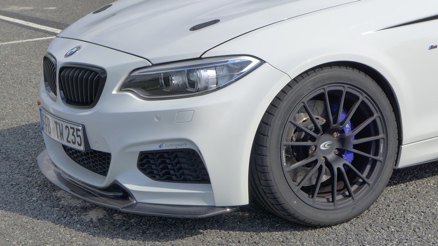 今天帶給各位由改裝廠Tuningwerk所操刀的BMW F22 M235i 6MT,透過電腦程式改寫、進氣、冷卻系統強化與高性能排氣管換裝等步驟,再換上鍛造活塞、連桿、凸輪軸與效率更好的渦輪機,將原廠N55引擎提升至450HP,扭力峰值增強至61.2kgm。另外,Tuningwerk為這部新世代小跑車換裝輕量化輪圈、強化型煞車系統、限滑差速器與競技型避震器組等操控利器,外觀方面則有碳纖維前下巴與後擾流尾翼等部品點綴。內裝部分,Tuningwerk換上兩張Recaro桶型賽車座椅、拆除後座,加上手排變速箱比起ZF八速變速箱輕上45公斤的優勢,將全車重量控制在1,500公斤內,這種情況下,絕對能讓這部馬力等同新款M3與M4、扭力與大肺活量Mercedes Benz W204 C63 AMG相同的BMW M235i擁有絕佳動態表現,數據就待稍後公布的測試結果。