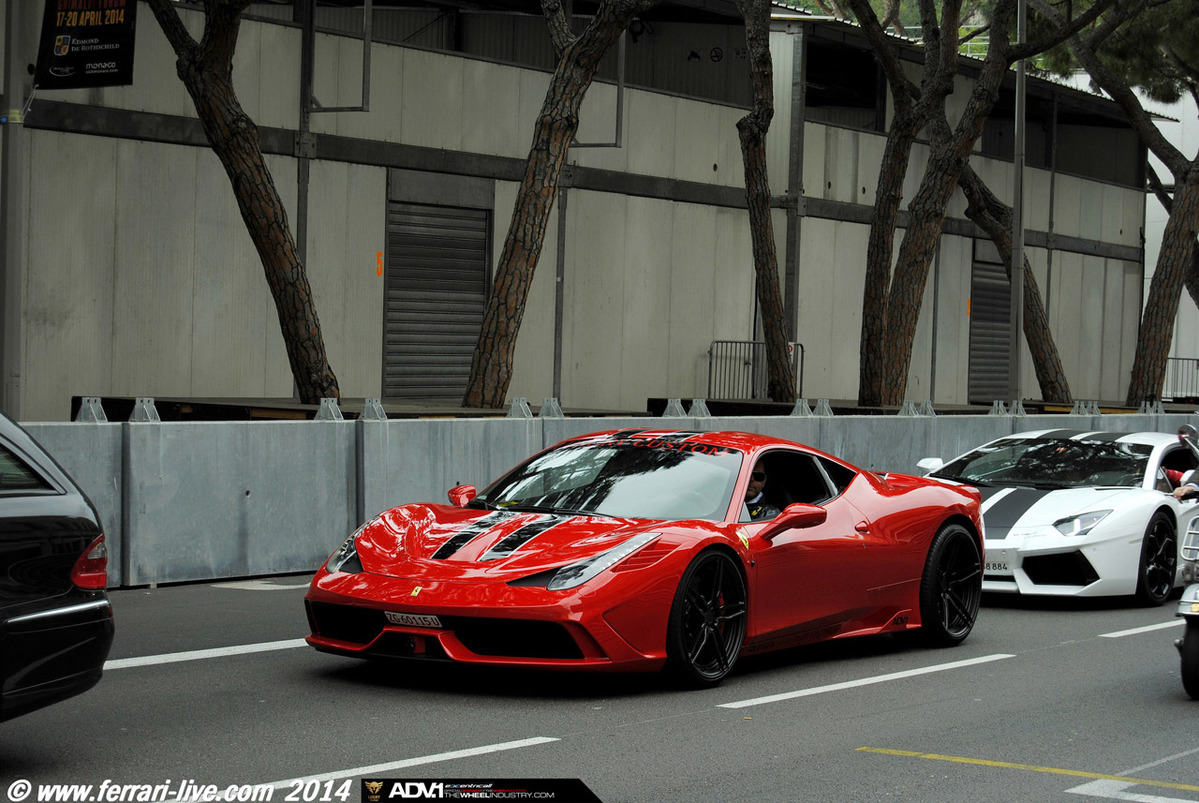 身為Ferrari 458 Italia的輕量化版本車型,458 Speciale擁有高達605HP的最大馬力,使得僅種1,290公斤的它能繳出百里加速3秒整的優異成績、由靜止加速至時速200km/hr也僅需9.1秒,相當強悍。底盤方面,Ferrari 458 Speciale導入SSC(Side Slip angle Control system)側滑角度控制系統,能夠依照不同方向盤轉動幅度、側滑角度與行車速度調整電子循跡系統或防滑差速器介入時機,配上輪胎大廠Michelin最新款式Pilot Sport Cup 2高性能跑胎,於自家Pista di Fiorano測試賽道繳出1分23秒5的絕佳成績,穩坐Ferrari史上最速量產V8跑車的頭銜。