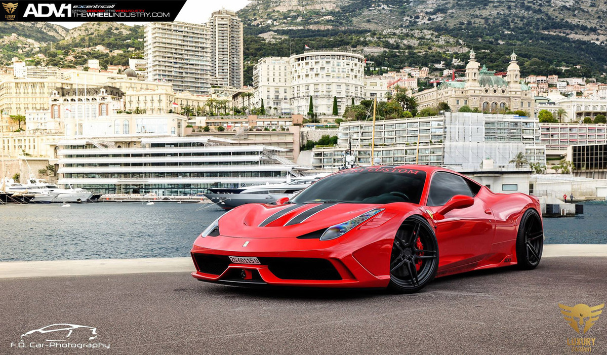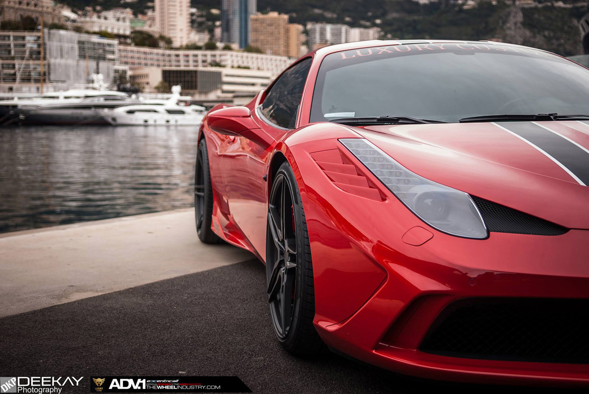 所以,今天先帶給各位一部在國外已經領牌上路的Ferrari 458 Speciale,且該車由改裝廠Luxury Custom操刀,捨棄Speciale原廠輪圈,選用知名品牌ADV.1 Wheels出品、型號ADV05 MV2 CS的消光黑色輪圈,尺寸為前21x9.5J、後21x12.5J的前後配設定,比原廠所配置的20吋大上1吋,視覺效果提升不少。