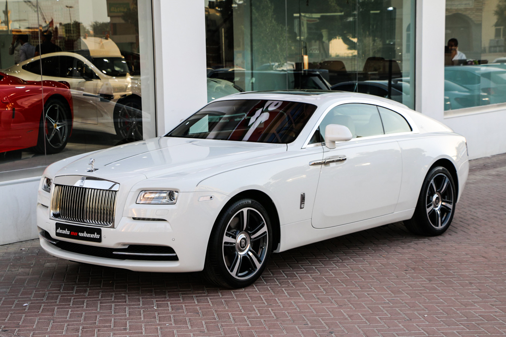 今天帶給各位一部由杜拜(Dubai)知名車商Deals on Wheels所持有的白色塗裝Rolls-Royce Wraith現車,採用米色內裝的它為2014年款式的全新車,配有全景式天窗、倒車顯影系統、免持鑰匙啟動系統、藍芽系統、多媒體影音系統與衛星導航等便利性高科技配備,目前開出1,525,000 AED(阿聯酋迪拉姆)的售價,折合台幣約1,250萬....說到此,可能有人會說比本地總代理所標出的1,888萬便宜許多,但是說實在的,如果加上稅金、驗車與運費等相關費用後,自行引進國內不見得會比較划算,而若要出手購買這部Rolls-Royce Wraith,理當要以搶先拿到現車為出發點、且該車配備能夠接受為前提,較為妥當,否則還是找本地代理商、仔細選擇配備、附上訂金後,耐心候車吧!