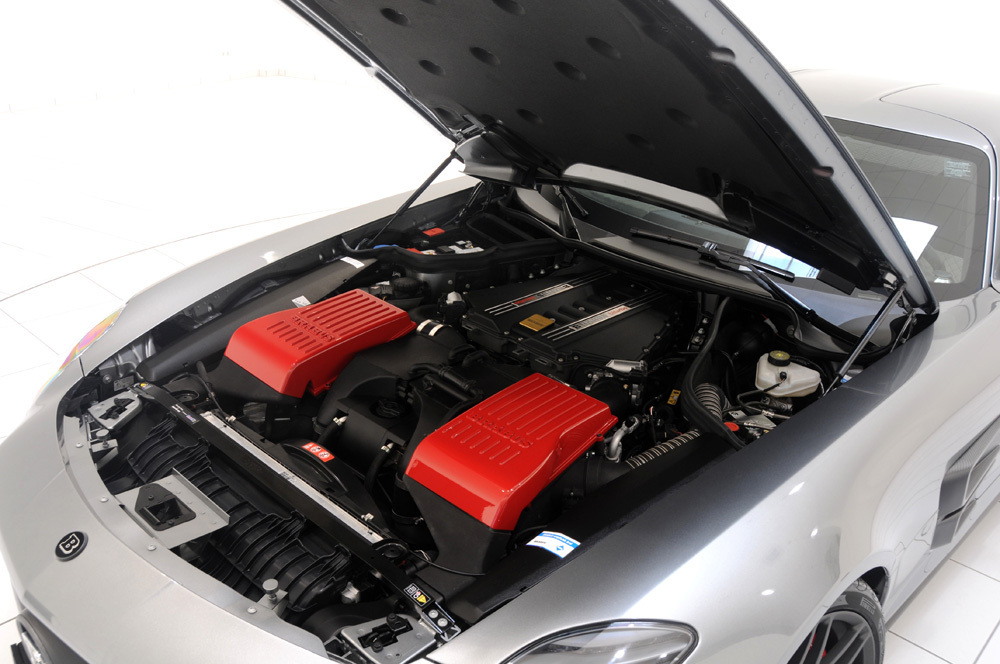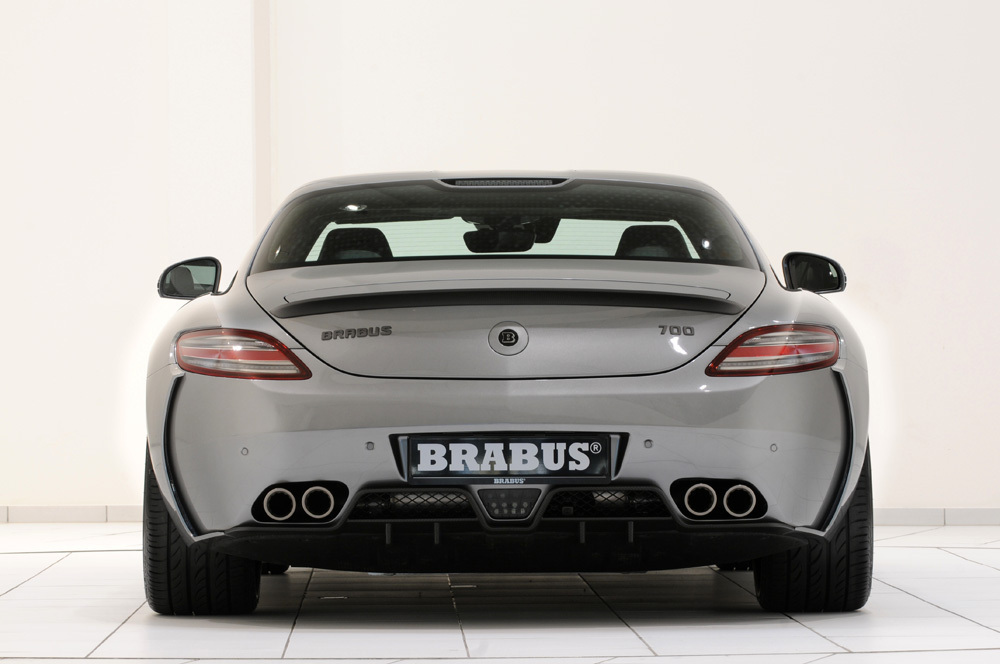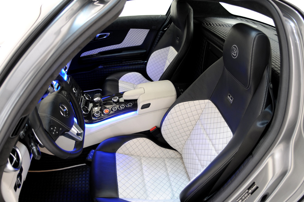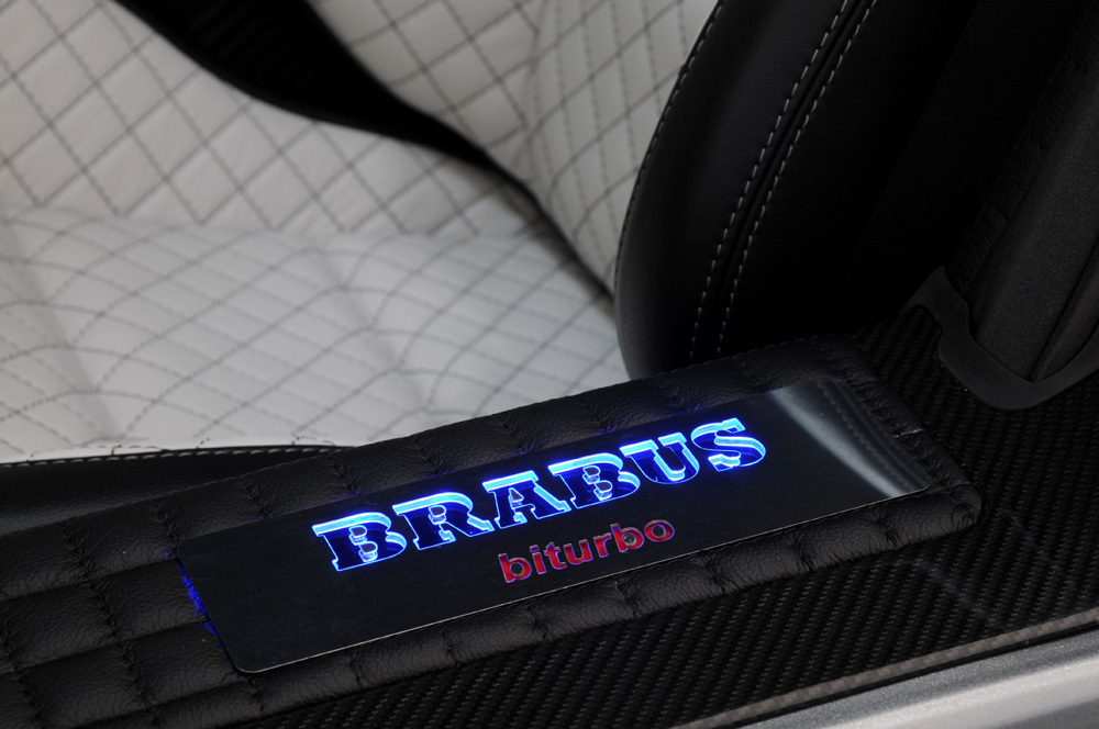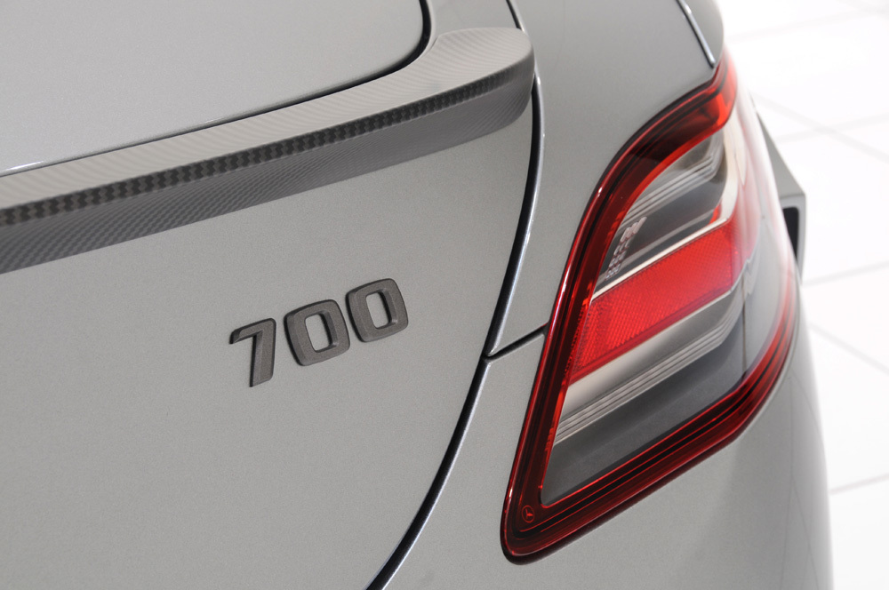 動力部分,針對代號M159的原廠自然進氣引擎,Brabus選擇植入專用的雙渦輪增壓系統,搭配Brabus鈦合金可變閥門排氣管與進氣系統等部品,將最大馬力提升至700HP,扭力增強到86.7kgm,而其口管徑達84mm的鈦合金排氣管除了讓車尾氣勢增強外,與原廠排氣管相比,更能減輕約百分之40的重量。內裝部分也是成為Brabus完整改裝版本所必經之路,除了將座艙連同後行李廂施以菱格紋路雙色真皮包覆外,還換上Brabus氣氛燈、鋁合金腳踏板、門栓與腳踏墊等精品,同時將原廠儀表板改成錶底達400km/hr的Brabus儀錶板,以利隨時驗證700HP動力的發揮。