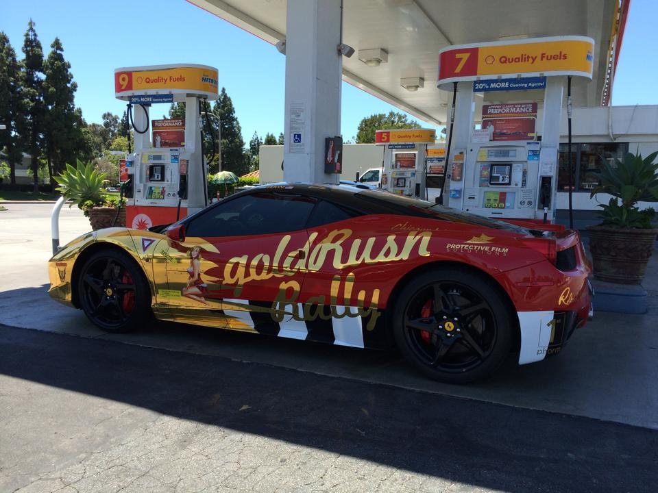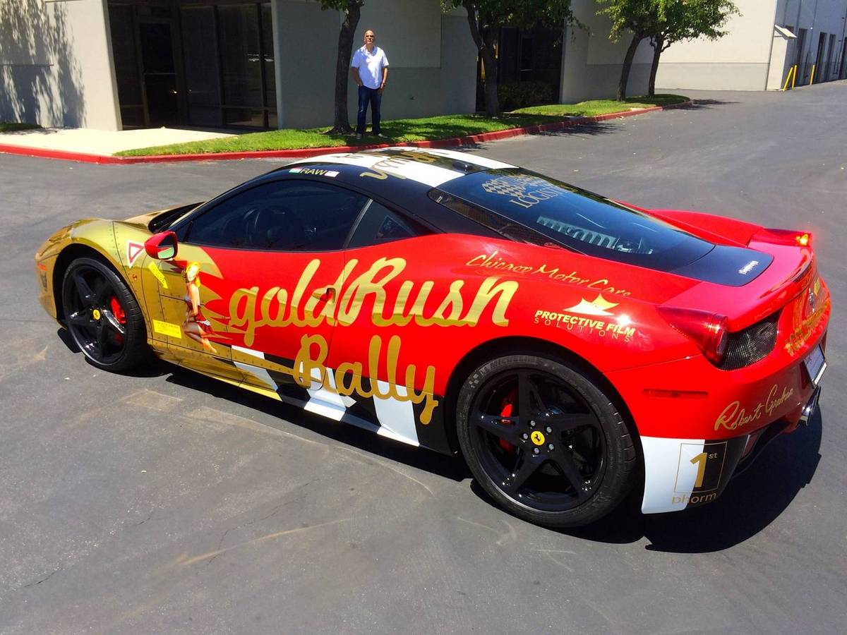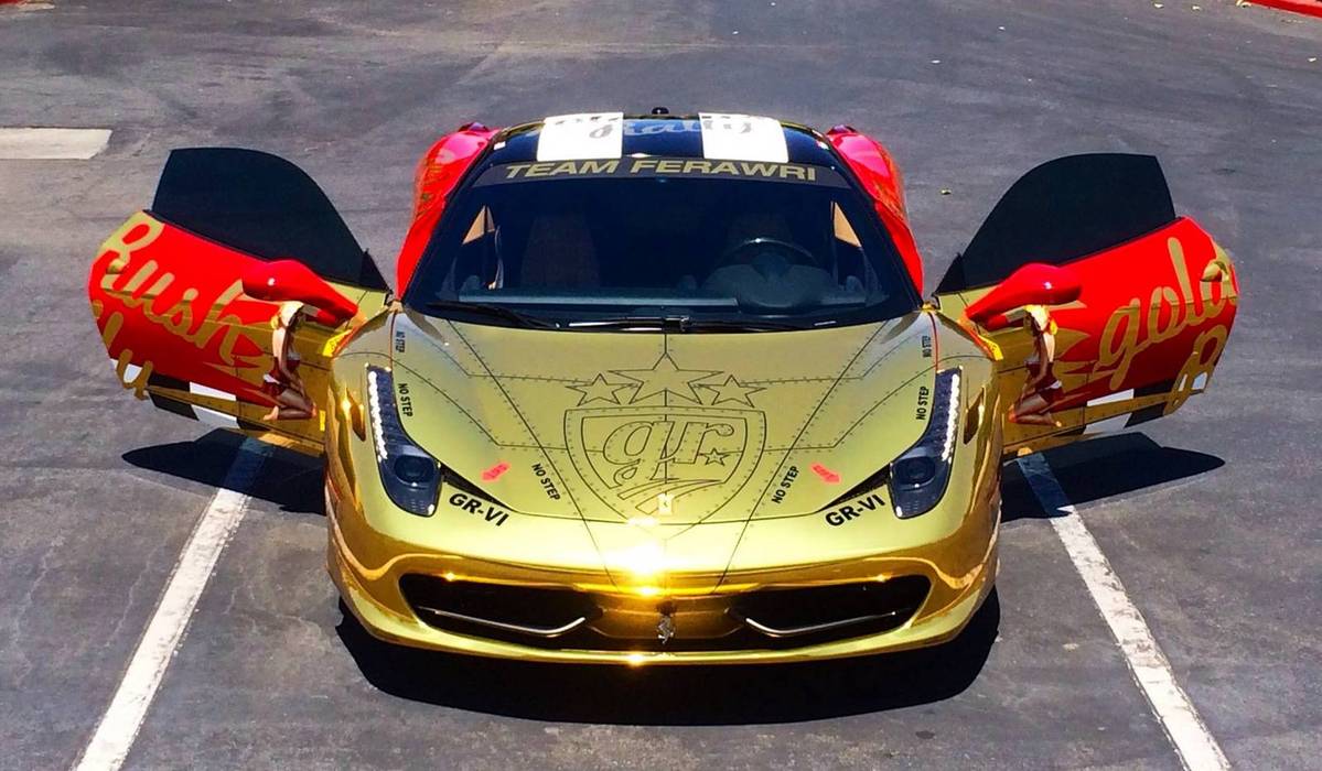 外觀部分,這部Ferrari 458 Italia找上知名貼膜專業廠Protective Film Solutions,將車身局部貼成電鍍金色,用上戰鬥機身彩繪搭配諸多圖騰,並在前擋風玻璃上方貼著「Team FeRAWri」字樣,樣貌相當吸睛。由於活動取名Gold Rush Rally,所以將愛車貼上金色元素是常見的作法,去年「Rawserati」也是以大量電鍍金色亮眼登場,這回輪到Ferrari 458 Italia展現金光閃閃的一面。根據主辦單位的說法,今年的Gold Rush Rally將會在5月31日,從美國賭城拉斯維加斯(Las Vegas)出發,參加車輛數目高於去年,相信屆時現場勢必熱鬧非凡。