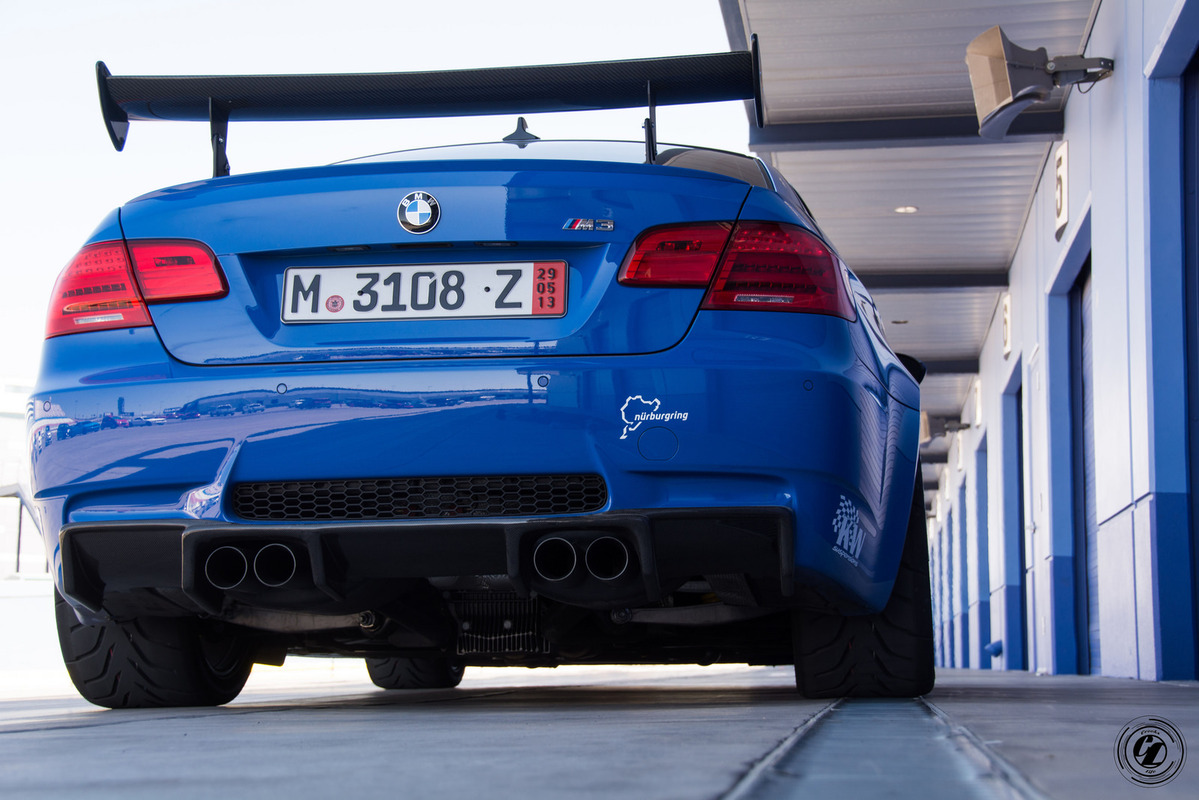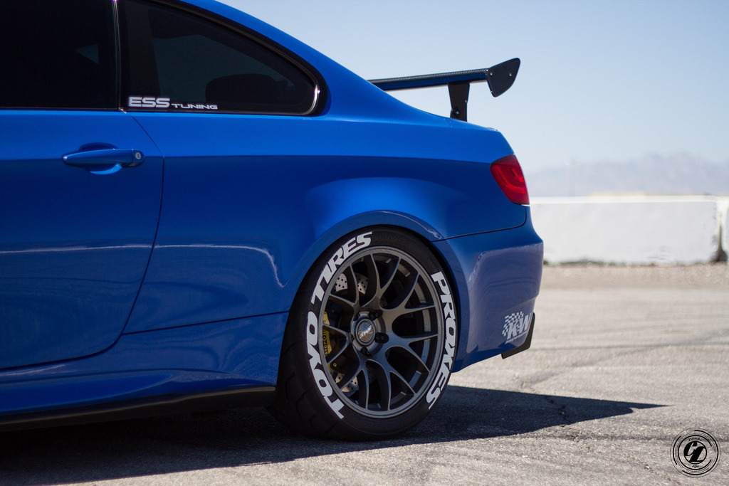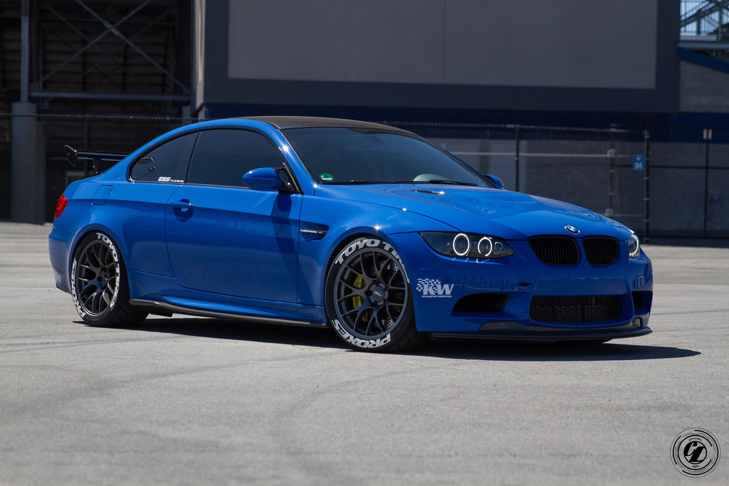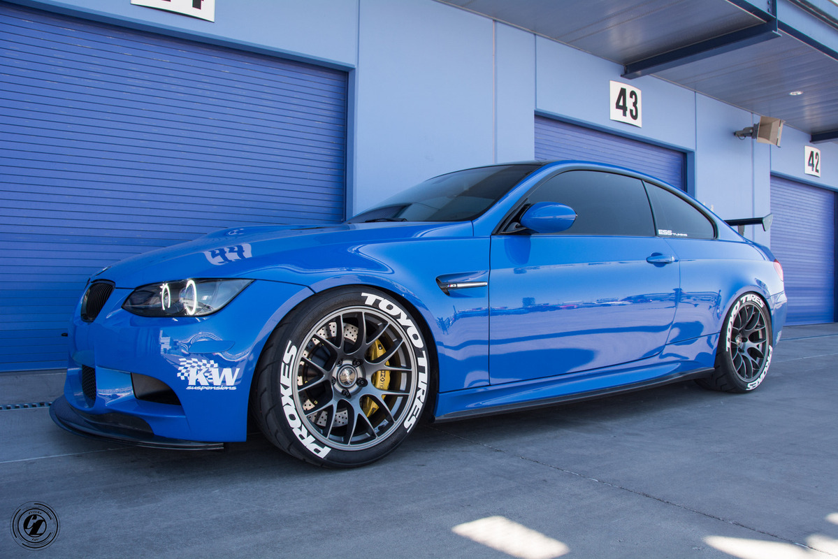 即使最新款式BMW M3與M4已經登場,人們依舊對E92 M3充滿熱情與好奇,改裝熱潮尚未見褪色之跡象,今天帶給各位這部Santorini Blue藍色塗裝BMW E92 M3,在眾多白色、黑色的E92 M3當中顯得極具特色。外觀方面,車主選擇Mode Carbon出品、型號Variant 2 GTS的碳纖維前下巴、側裙組與LM系列後下擾流板,搭配GTS後擾流尾翼,讓整部車更具動感。底盤方面,選擇APEX Racing EC-7、尺寸18x10J的特殊規格輪圈搭配日本Toyo R888、規格275/35R18的全熱熔胎,再透過換裝KW Clubsport頂級避震器組將車身降低,另外使用StopTech煞車系統提升制動性能。