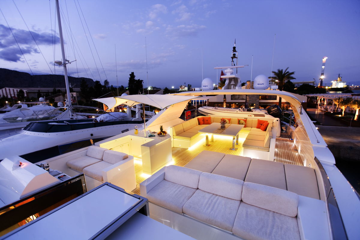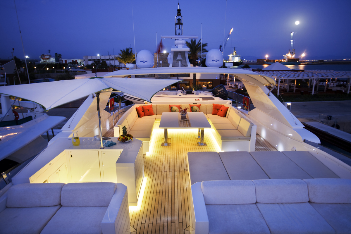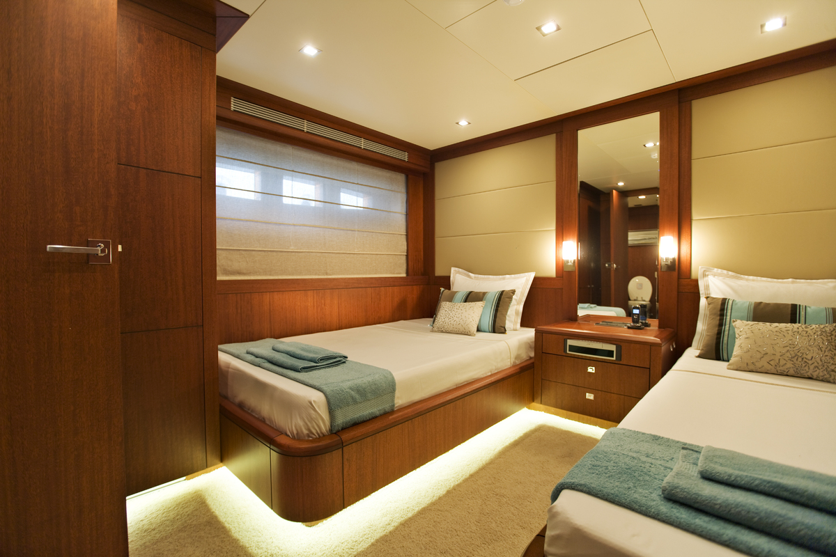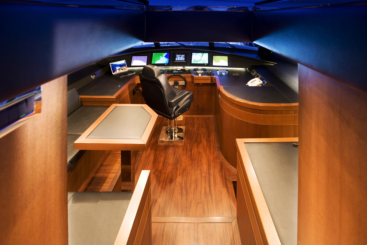 雖然這部遊艇於2004年出廠,但是配備方面絲毫不含糊,在船艙內配有精緻客房、衛浴設備、主臥室與VIP大套房,同時納入液晶電視、頂級音響系統、i-Pod連接裝置與無線網路等3C配備,豪華卻不雜亂,簡約中帶有高品味質感。由於訂製遊艇的過程較為繁雜,因此全球各地中古遊艇的交易量不小,而這種看得到、摸得到,甚至會提供試乘或試駕的中古良品,對於初次接觸海上活動的顧客們來說,方便性大增。