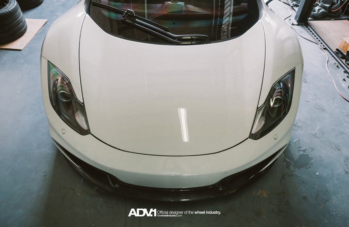 雖然McLaren 650S車系已經登場、12C已經停產,但目前McLaren 12C的改裝熱潮持續攀升,今天要與各位分享的是一部由ADV.1 Wheels提供的白色塗裝McLaren 12C。外觀部分,車主近日剛將略為斯文的標準型前保桿拆除、裝上同樣來自原廠的MSO (McLaren Special Operation)版本前保桿並將車頂施以黑色貼飾,讓車頭氣勢銳變,另外選用ADV.1 Wheels出品、型號ADV5.01 MV1 CS的消光銅色輪圈,尺寸採用前19x9.5J、後20x12J的前後配設定,搭配Pirelli P Zero高性能跑胎。簡單的改裝,便已讓McLaren 12C俐落有型,與其將12C賣掉去訂購650S,留著它、讓它變得更美,何嘗不是一種品味?
