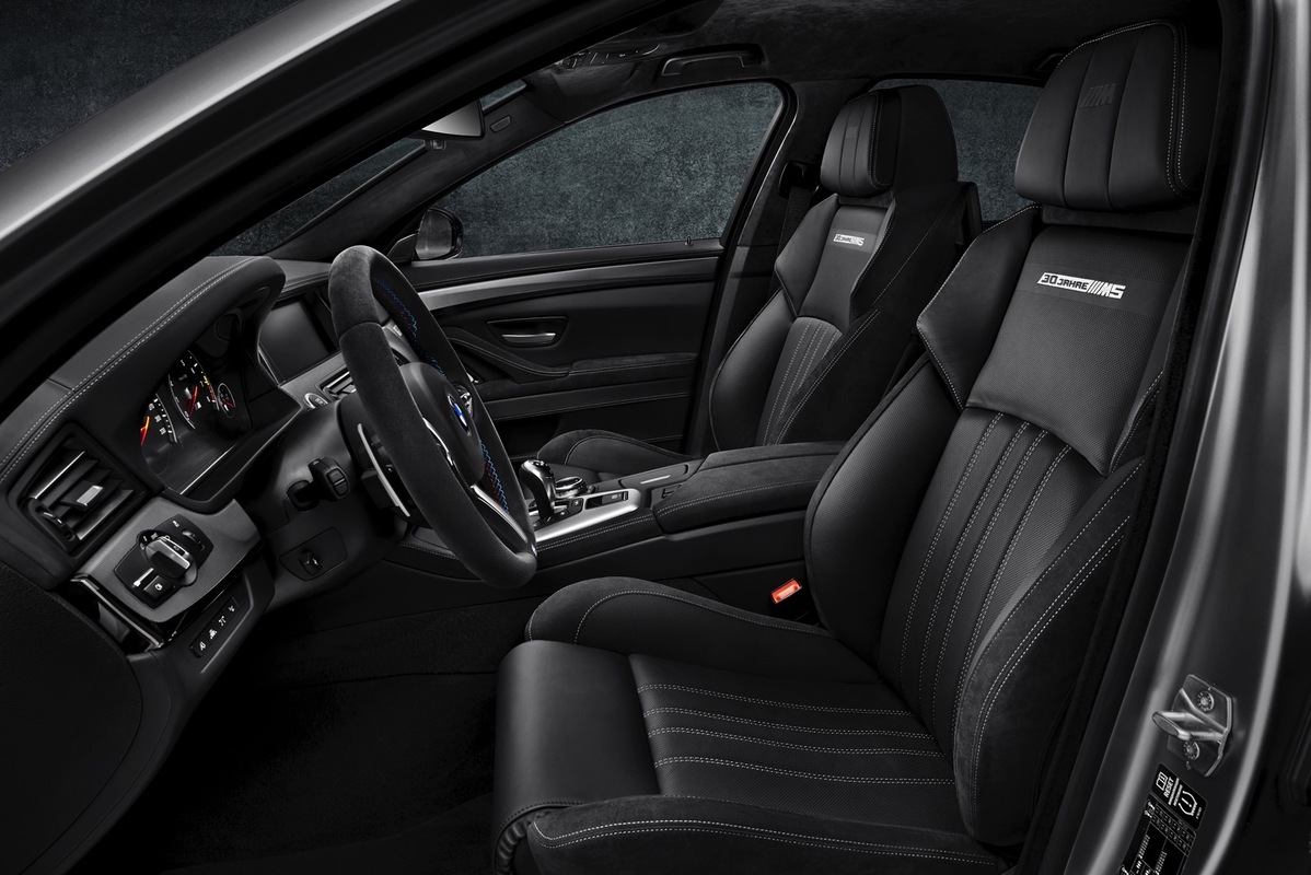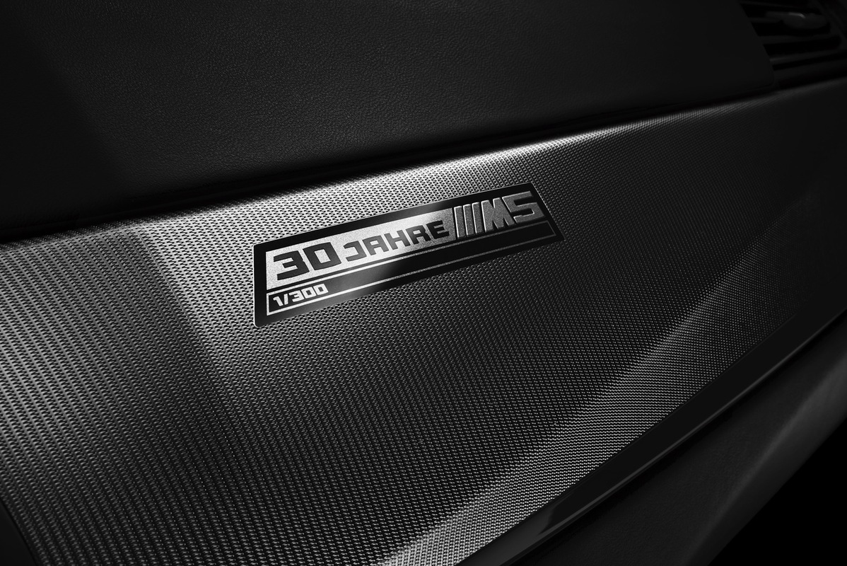 內裝部分,BMW給予這部紀念車款最頂級的麂皮與真皮材質,同時配有頂級環繞音響與16支喇叭,更進階的600瓦Harman Kardon或1,200瓦Bang & Olufsen音響則列為選配。至於先前各界最關注的動力部分,如同所料,與普通版本BMW F10 M5同樣搭載4.4升渦輪增壓V8引擎的BMW 30 Jahre M5成功進化至600HP大關,扭力也提升至71.4kgm,比起現行M5選配Competition Package所達到的575HP還要多出25HP,使得百里加速成績挺進至3.9秒,別忘了這是一部車重約2噸且採用後輪驅動配置的中型房車。再者,這樣的表現已經讓30 Jahre M5成為BMW史上最速量產車!