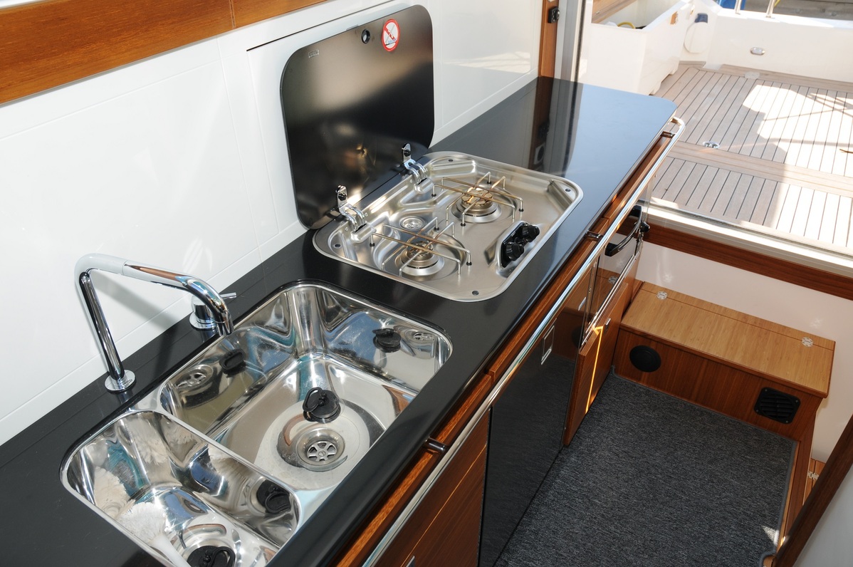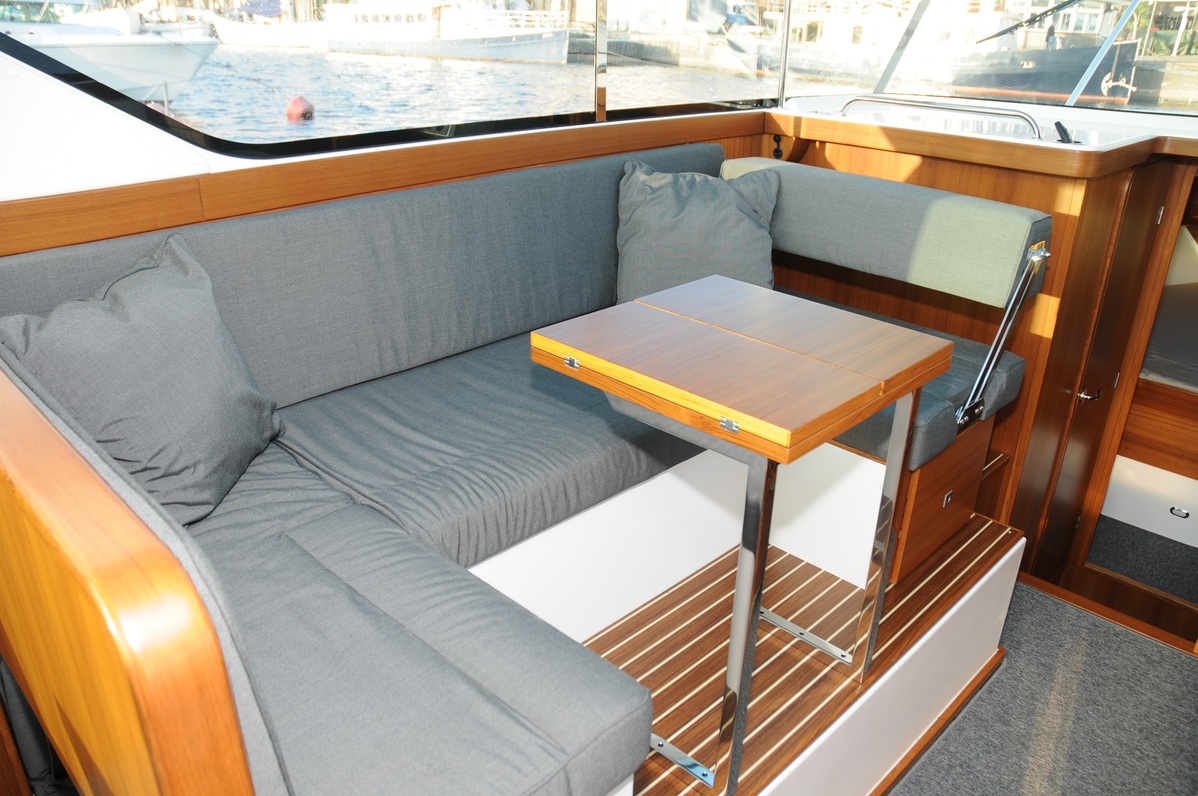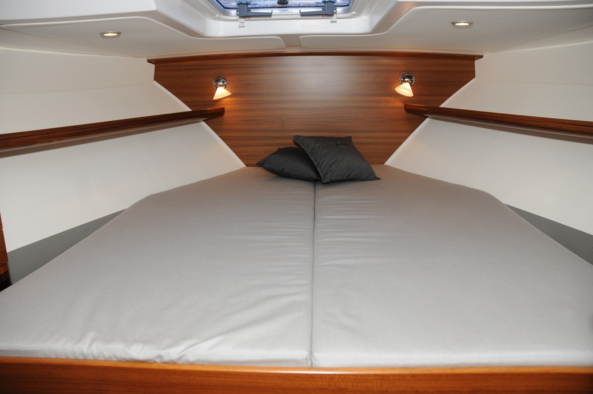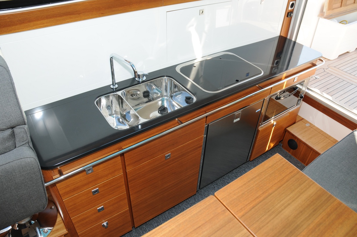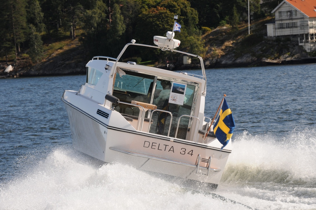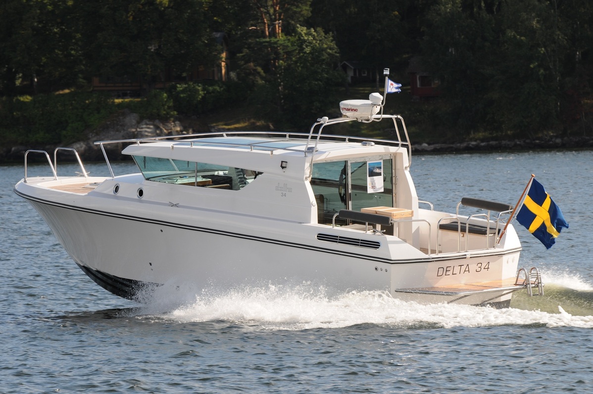 Delta 34 SW全長11公尺,承襲北歐風格一貫的優雅,船身流線型設計,船底是採深V型雙層氣滑船體及採用碳纖維結構,不僅提升航行速度,在穩定度和舒適節能上亦有優異表現。從甲板到桌椅,全船木材皆採用高級柚木,搭配白色的鋼琴烤漆,簡潔卻極有質感;而在天氣最美的日子裡,近五平方米的電動天窗就派上用場了,在內室一抬頭就可仰望藍天、灑落的陽光也成為艙內最美的顏色。此外還有完整的廚房及沙發沙龍,下層船艙則有二間雙人艙房使得在船上的航行備極舒適。