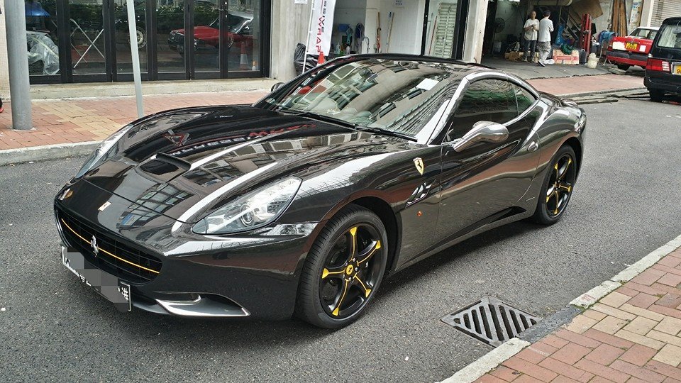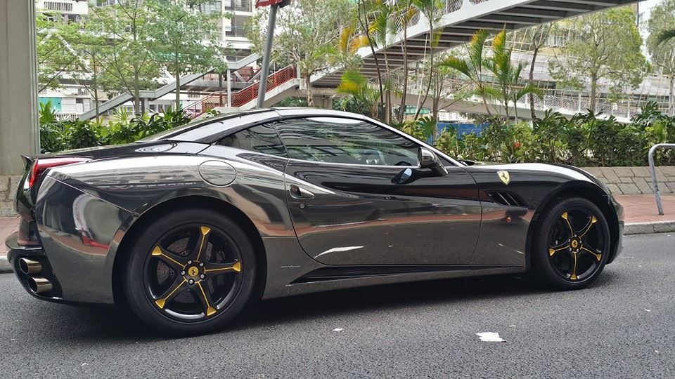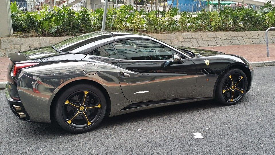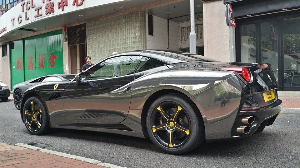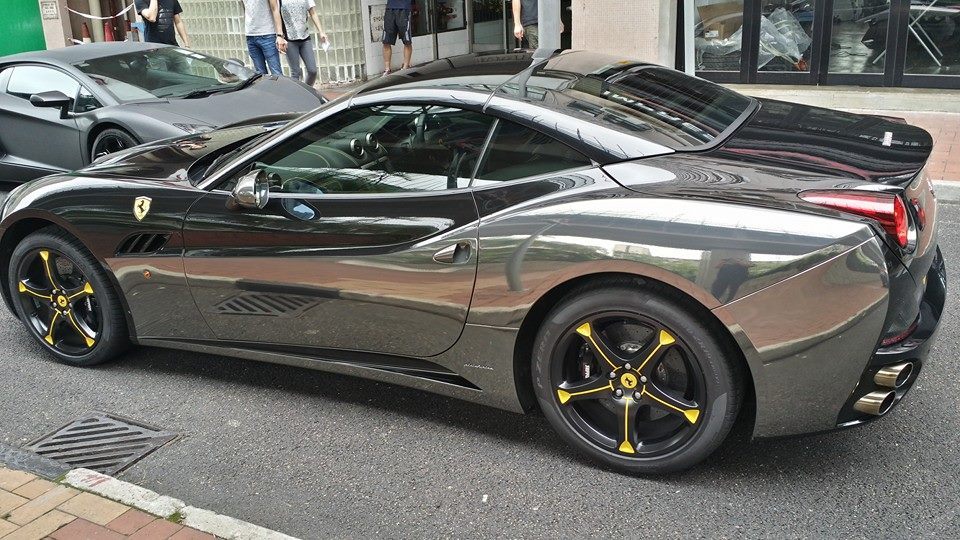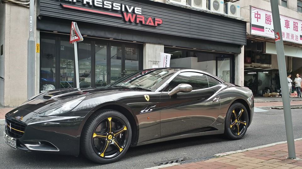 眼前這部Ferrari California乃由香港(Hong Kong)車身貼膜專業廠Impressive Wrap所提供,採用消光黑與透明電鍍膜的搭配,同時在原廠標準型五幅式輪圈與後下擾流板等處施以局部黃色塗裝,讓這部上空烈馬能夠在不同角度下展現出優雅的車身線條,卻又不會過度放閃,別具巧思。