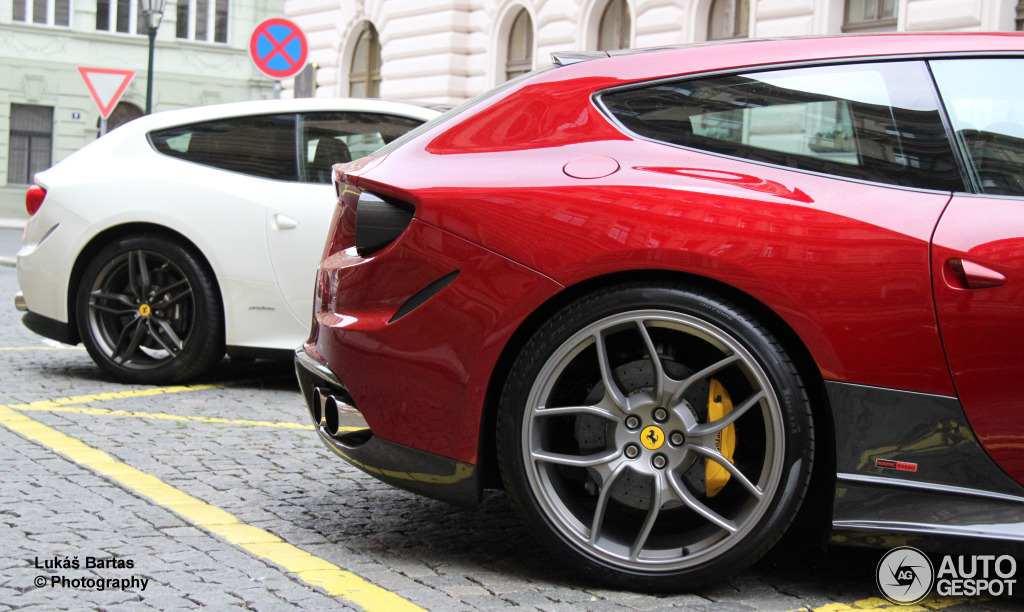 今天要帶給各為一部由攝影專家Lukáš Bartas Photography於捷克共和國布拉格(Prague, Czech Republic)街頭所擄獲的兩部Ferrari FF,其中採用Rosso Maranello紅色塗裝的Ferrari FF裝有御用改裝廠Novitec Rosso的空力套件,包含碳纖維前下巴、後視鏡蓋、側裙組與後下擾流板等部品,另外換上Novitec Rosso、型號NF4的輕量化輪圈與短彈簧,讓這部prancing shooting brake展現出濃厚跑格。