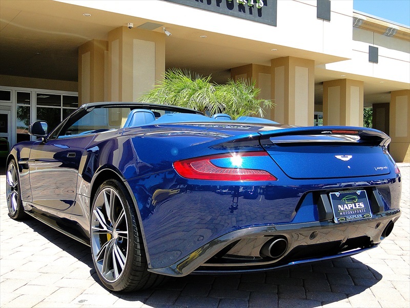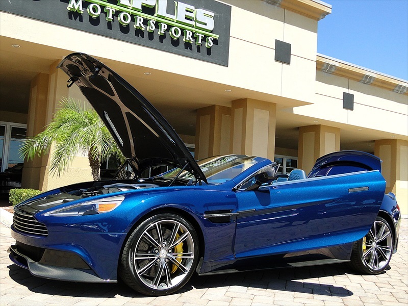 較晚登場的Aston Martin Vanquish Volante敞篷車於2013年底時首度於英國(England)開始交車,美國市場則是在2014年第一季才拿到首批為數不多的車輛,而才不過幾個月的時間,便已有中古的Aston Martin Vanquish Volante釋出。這是由美國佛羅里達州(Florida, USA)知名車商Naples Motorsports所持有的2014年款式Aston Martin Vanquish Volante,採用Ocellus Teal寶藍色塗裝與All True Teal藍色真皮包覆內裝,搭配碳纖維前下巴、側裙組、後下擾流板、門把與後視鏡蓋等原裝部品,再配上黃色塗裝煞車卡鉗與20吋雙色多幅式輪圈,營造出難以言喻的高規格英式質感。該車目前行駛約4,800公里,由車商開出$279,995美元的網路售價,有興趣的當地讀者不妨參考。