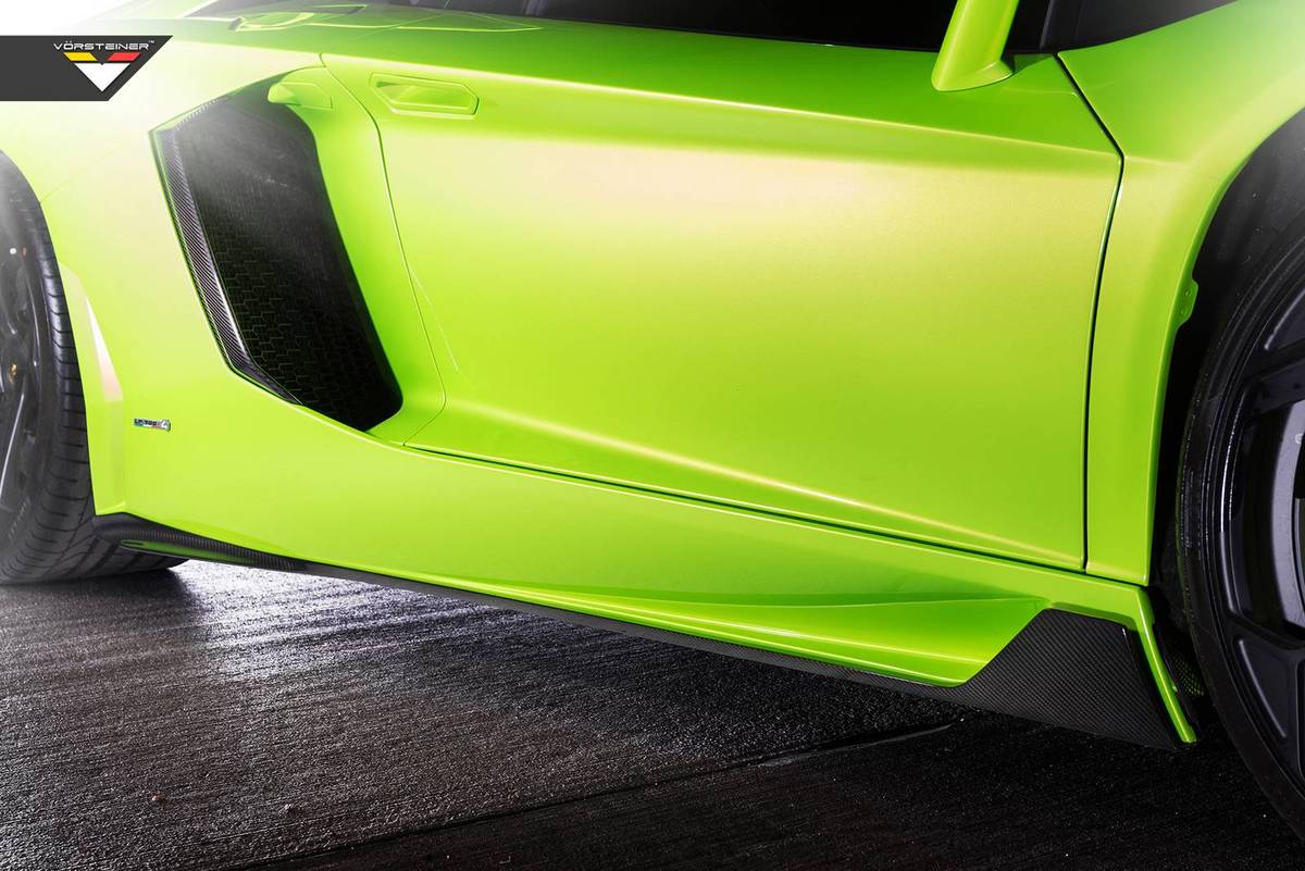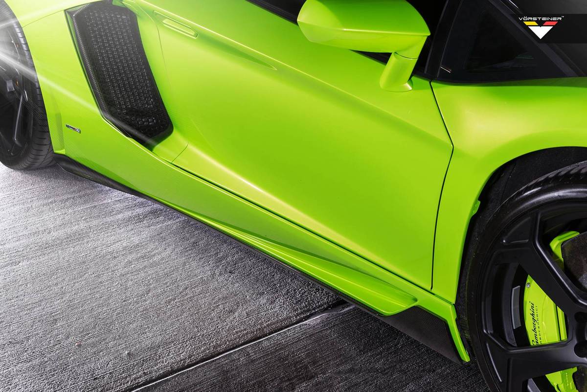 知名改裝品牌Vorsteiner發表了一部以Lamborghini Aventador LP700-4 Roadster為基礎、取名Lamborghini Aventador-V的改裝版本,該車原先由美國邁阿密(Miami, USA)超級跑車商Prestige Imports所持有,再前陣子賣給佛羅里達州(Florida)的新車主,隨後在改裝廠Wheels Boutique的協助下,換上一系列精裝部品。另外,由於這部Lamborghini Aventador LP700-4 Roadster在出廠時便採用亮眼的Verde Ithaca綠色塗裝,故在裝配有全套Vorsteiner套件後,被當地媒體稱為「綠巨人浩克 (The Hulk)」。