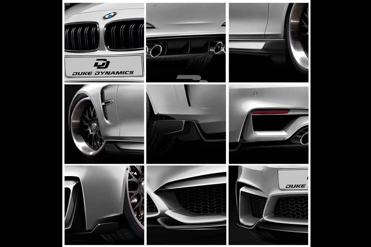 來到側面,BMW MD4 by Duke Dynamics的後輪拱狂暴的像外擴張,使得這顆黑色大尺碼輪框得以塞進車體內,此外黑色側裙也相當搶眼。最後看到車尾,全新設計的碳纖維後保險桿與行李箱上的小鴨尾相互呼應,短距離的雙邊雙出尾管讓她的車屁股看來更加緊實,目前還不知道Duke Dynamics會不會於正式上市前進行修改,但是就今天這些影像看來,她的確很誘人。