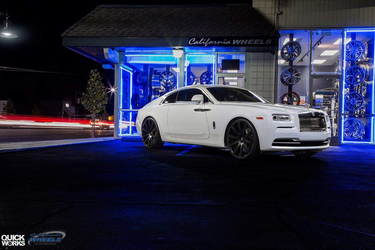 今天帶給各位一部由美國加州(California, USA)、專精於輪圈改裝之店家California Wheels所提供的白色塗裝Rolls-Royce Wraith,選用來自Forgiato Wheels的多幅式樣24吋輪圈,中心採用消光黑色塗裝,外圈則以亮面黑色處理,與白色塗裝之車身搭配,讓這部高性能Rolls-Royce散發出氣質高貴的霸氣,相當與眾不同。