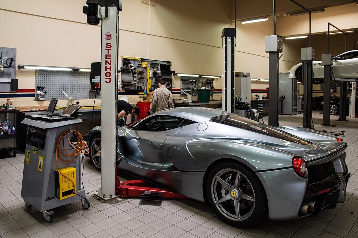 來自德國的Porsche 918 Spyder、英國的McLaren P1與義大利的Ferrari LaFerrari都是當今最具話題性、使用油電混合科技的超級跑車,不僅將動力層級再度向上提升,也替未來汽車科技之發展寫下全新標竿。雖然這三部高人氣超款的發表時間有微幅差距,然而目前被全球各地鏡頭捕捉到的似乎以限量375部的McLaren P1為大宗,配額較多、限量499部的Ferrari LaFerrari則較少出現,推斷可能與原廠生產線之策略有關,這點比照到McLaren 650S與Ferrari 458 Speciale間的較勁上,也是異曲同工。當然,也有可能是因為首批Ferrari LaFerrari的車主較為低調,不願意讓愛車過度曝光。無論如何,還是有至少20部以上的Ferrari LaFerrari出現在各地街頭,其中以Rosso Corsa紅色為主,也包含幾部Giallo Modena黃色與Nero Pastello黑色,但是眼前這種銀色塗裝倒是第一次出現,而根據目測,這應該是取名Argento Nurburgring的銀色金屬漆,配在Ferrari LaFerrari身上也別具風味,感謝攝影師Guillaume Siegel於瑞士(Switzerland)原廠整備區內所拍攝到的珍貴畫面。姑且不論各位喜不喜歡銀色,甚至可能覺得Ferrari LaFerrari就該是Rosso Corsa紅色,但是這絕對是車主極致品味的象徵,畢竟這是他的車,人家想要選什麼顏色是他自由意志的展現,而且說實話,銀色激發出LaFerrari於車身線條方面不同的視覺效果,依然頗具魅力。