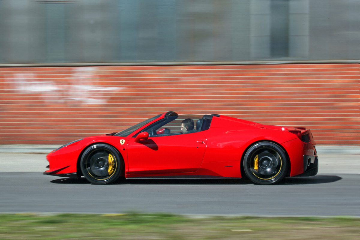 附帶一提,Ferrari 458 Spider配有與458 Italia相同、效率極佳的4.5升V8自然進氣引擎,採用12.5:1高壓縮比、高轉速的賽車引擎特性,擁有570HP最大馬力與55.1kgm最大扭力,輔以7速雙離合器自手排變速箱,百里加速僅需3.4秒、極速上看319km/hr。
