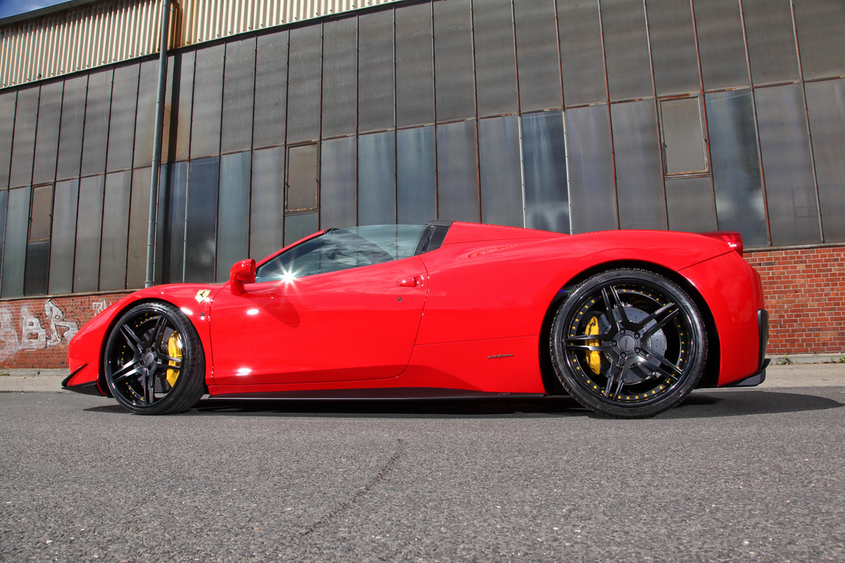 最近Ferrari 458車系的新聞大都以輕量化版本Speciale居多,連我們要打458 Spider之際,有時系統還會直接建議輸入Speciale。那麼,今天就讓我們來一起觀賞眼前這部由改裝廠MEC Design所操刀的Ferrari 458 Spider。在過去習慣於改裝Mercedes Benz車系的MEC Design這次針對Ferrari 458 Spider推出取名Scossa Rossa的空力套件,包含三片式前下巴、側裙組與後下擾流板等部品,造型與Novitec Rosso、Vorsteiner等知名大廠所開發的有所不同,而其涵蓋範圍延伸至後保桿的後下擾流板之設計也別具巧思,提供視覺系改裝愛好者另一項選擇。