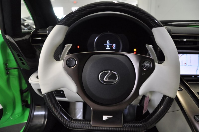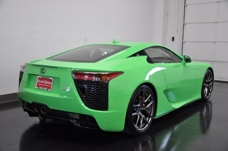 這是由美國俄亥俄州克里夫蘭(Cleveland, Ohio)的一間超跑車商所持有的Lexus LFA庫存車,除了身披獨一無二的螢光綠色塗裝外,內裝採用對比的黑白雙色真皮包覆,質感獨具。值得一提的是,這部「大和戰神」擁有745英里的極低里程數,同時車身編號為250,剛好是數字0到500的中間值,是愛車人士不可多得的收藏好標的。