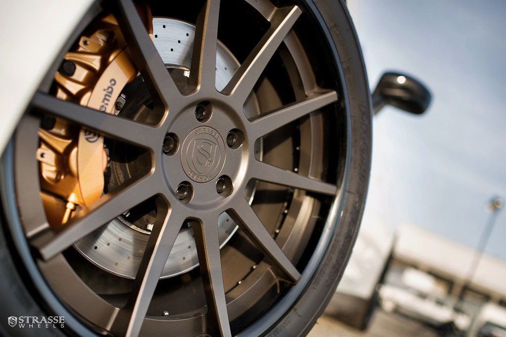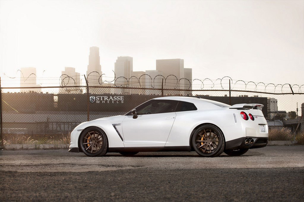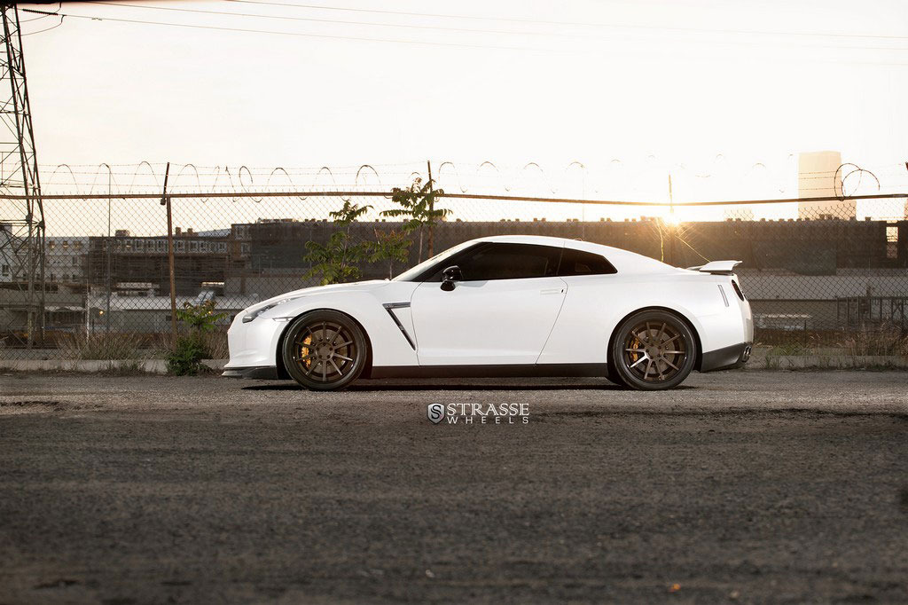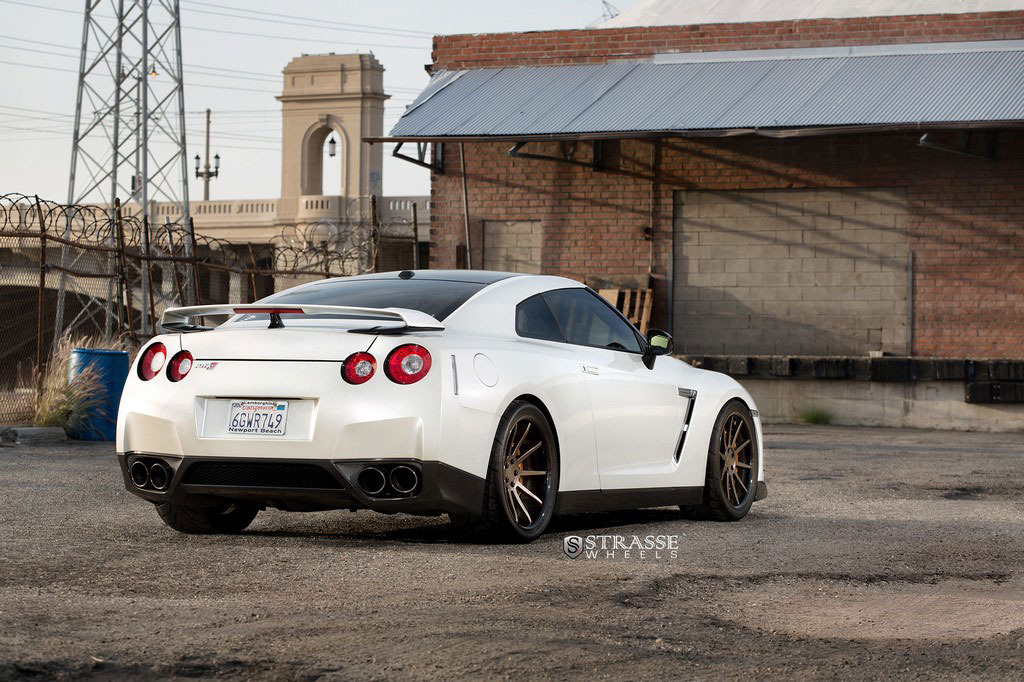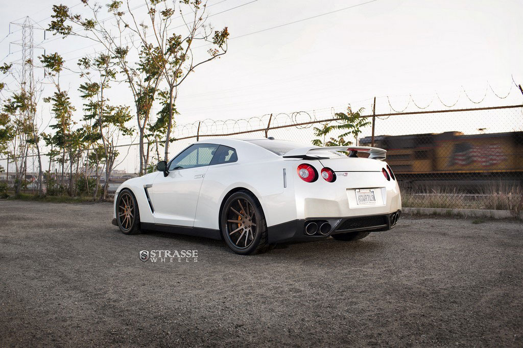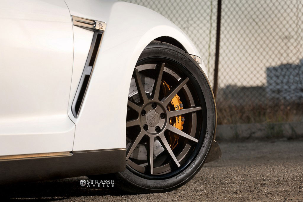 今天帶給各位一部由輪圈品牌Strasse Wheels所推出的Nissan R35 GT-R,選用來自Strasse Wheels、型號R10的內凹款式輪圈,中心採用消光銅色塗裝,外圈則以亮面黑色處理,搭配Toyo R888全熱熔跑胎,再換裝高低軟硬可調式避震器組將車身降低,提升高速穩定性與彎道操控性。