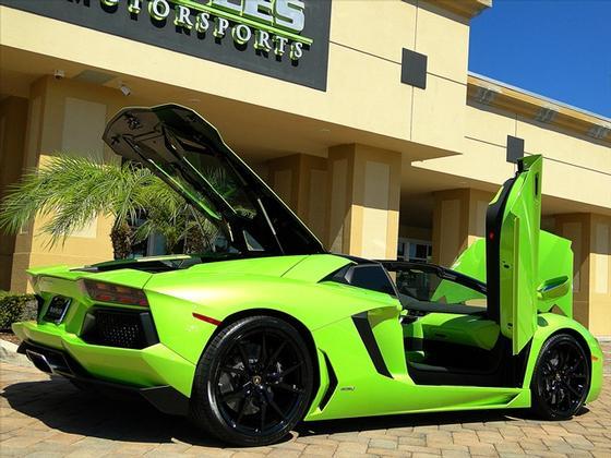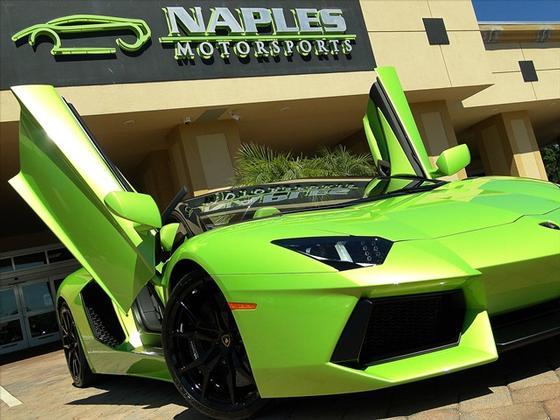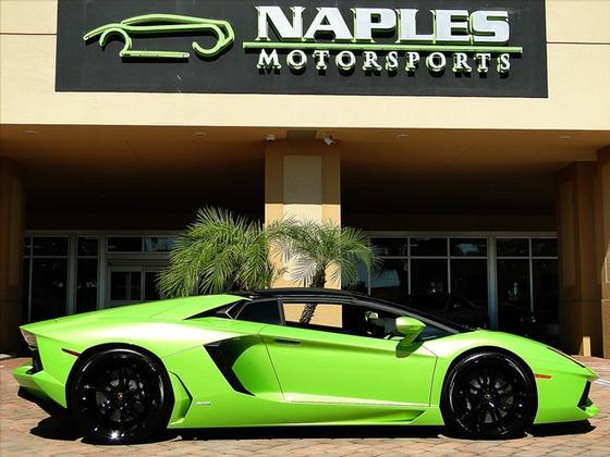 美國佛羅里達州(Florida, USA)知名車商Naples Motorsports乃當地最具指標性的複合式店家,配有專業維修廠、汽車美容部門、名錶展示區與估車專區,再加上不時陳列的各大品牌高階車種,讓貴客們可以在一間店同時購得各種心目中理想車種。最近,Naples Motorsports再度釋出一部採用Verde Ithaca螢光綠色塗裝的Lamborghini Aventador LP700-4 Roadster,與他們展示間門口招牌的顏色相近。配備方面,這部2014年款式的Lamborghini Aventador LP700-4 Roadster擁有7吋彩色螢幕、衛星導航系統、免持鑰匙啟動系統與Dione黑色鍛造輪圈,內裝採用特殊訂製、同為Verde Ithaca綠色與黑色的真皮內裝,展現出內外的高水準完整度。