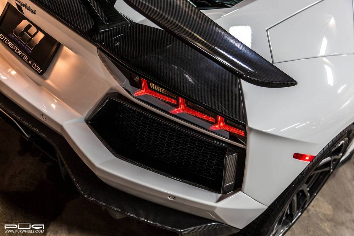 今天與各位分享由輪圈品牌PUR Wheels所提供的白色塗裝Lamborghini Aventador LP700-4 Roadster,外觀方面配有PUR Wheels進軍空力套件市場所開發的碳纖維套件,包含前下巴、側裙組、後下擾流板與神似Lamborghini Murcielago SV的碳纖維後擾流尾翼等部品。