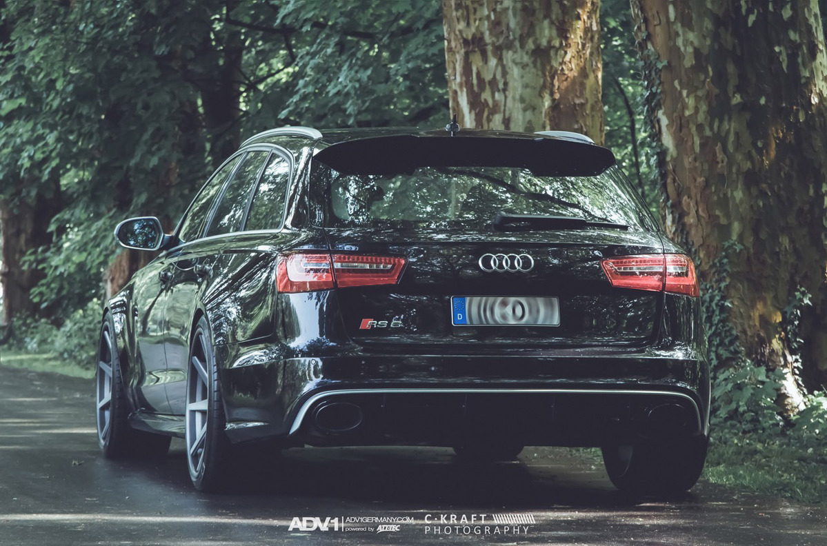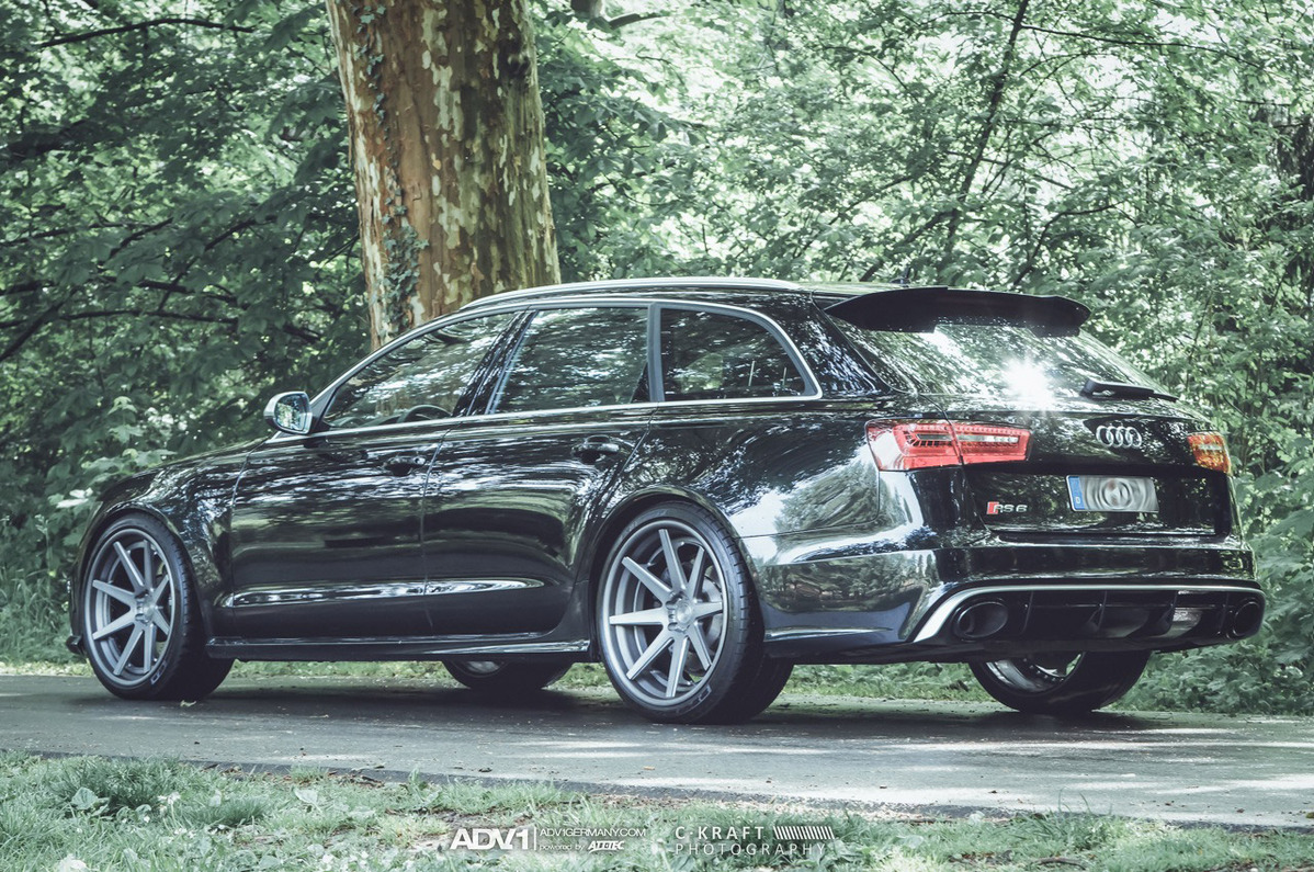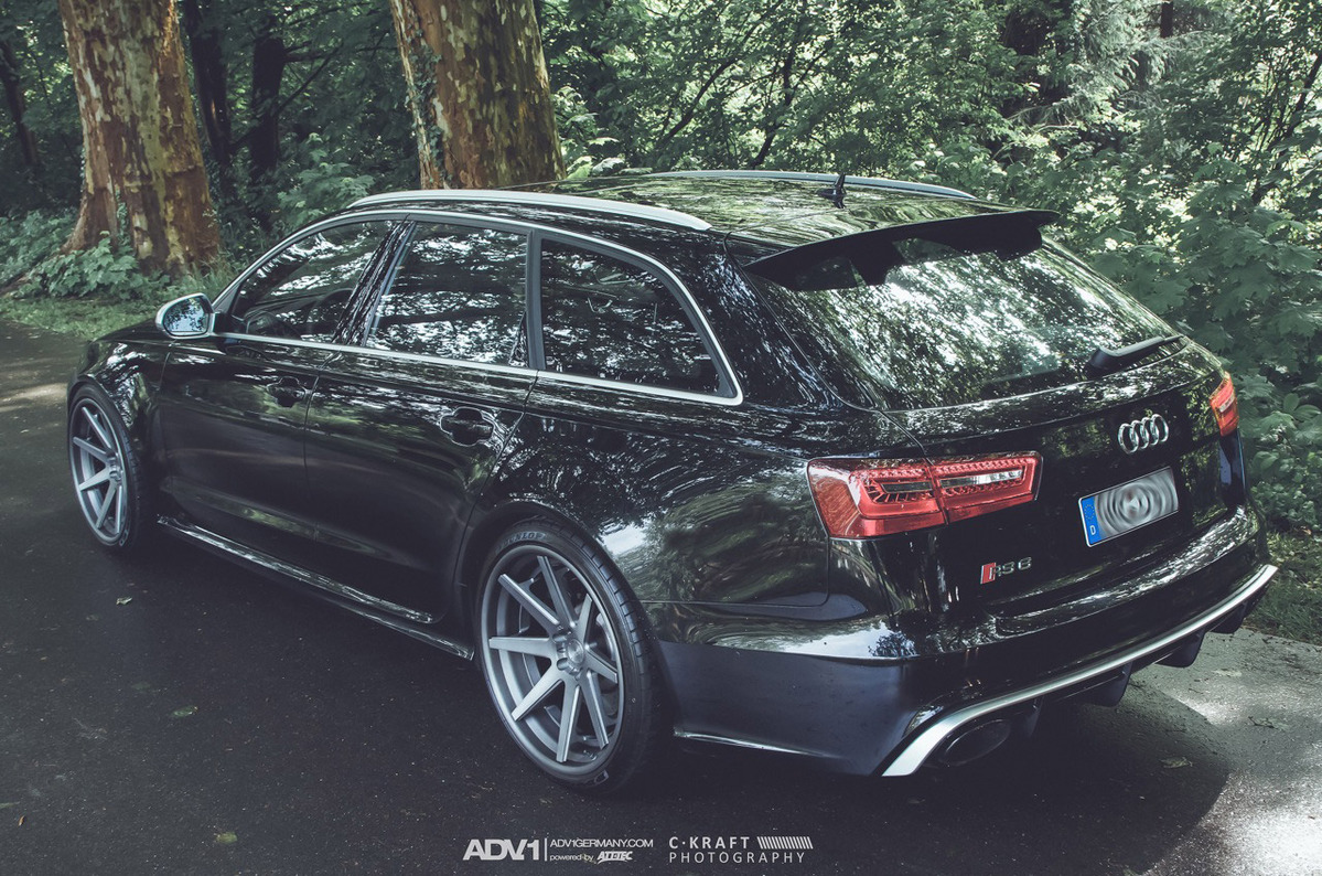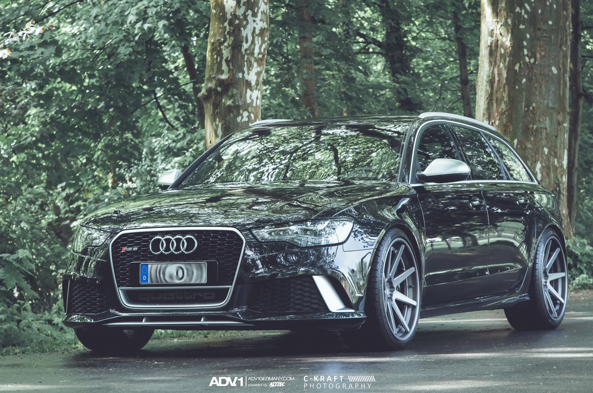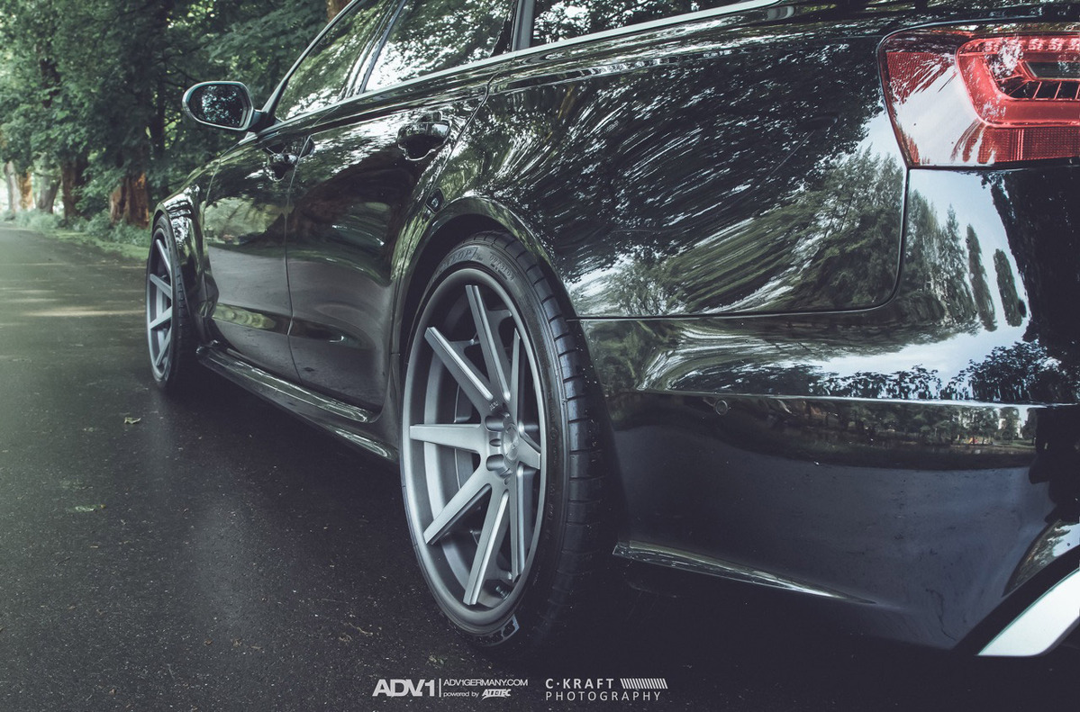 除了性能強悍成為舉世焦點外,Audi RS6 Avant同時配有多項最新科技便利性配備,舉凡MMI多媒體影音系統、行車模式切換裝置與衛星導航系統,再加上實用性強大的車艙空間,提供優異的舒適性。外型方面,新款Audi RS6 Avant擁有專屬的空力套件、碳纖維配件與鋁合金飾板,前保桿下方進氣壩的Quattro也是新世代的設計,低調中的高調,品味感獨特。眼前這部Audi RS6 Avant選用知名品牌ADV.1 Wheels出品、型號ADV08 Track Spec DS的輕量化版本輪圈,圈面採用獨特的消光槍灰色烤漆覆蓋,而為了維護Quattro四輪驅動系統的平衡性,採用前後同為21x10.5J的規格,另外換裝高低軟硬可調式避震器組將車身降低,讓這部德國高性能旅行車更具動感。