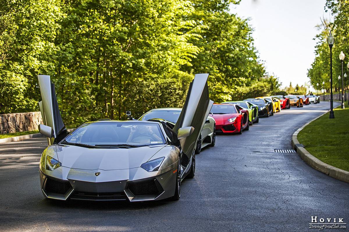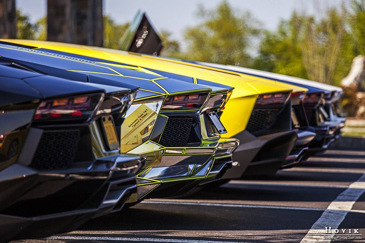 車隊當中,我們看到各種特殊顏色的Lamborghini車款,其中不乏Lamborghini Miura、Lamborghini Countach、Lamborghini Diablo與Lamborghini Murcielago等平日幾乎不會開上路的經典車款,而數量最多的便是好開、易上手的Lamborghini Gallardo車系,其中包含後輪驅動的Lamborghini Gallardo LP550-2、四輪驅動的Lamborghini Gallardo LP560-4與數部Lamborghini Gallardo LP570-4系列的雙門版本Superleggera與敞篷版本Spyder Performante。