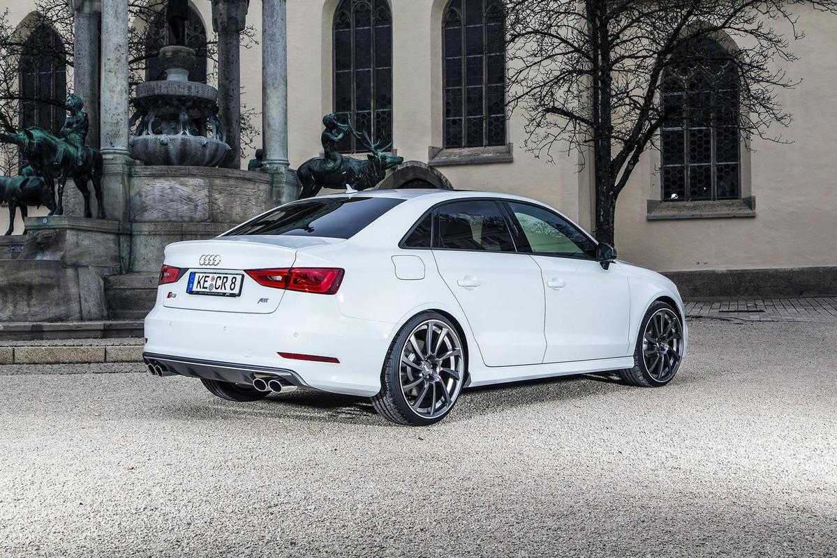 專精於Audi車系的改裝名廠ABT Sportsline日前推出Audi 8V S3 Sedan的改裝版本,透過電腦程式修改、進氣系統強化與高性能排氣管換裝,將其最大馬力由原廠的300HP提升至370HP,扭力峰值增強至46.9kgm,百里加速成績則是挺進至4.5秒,比擁有360HP最大馬力的同級對手Mercedes Benz A45 AMG所繳出的4.6秒要快,極速則可達到265km/hr,進步幅度相當明顯。